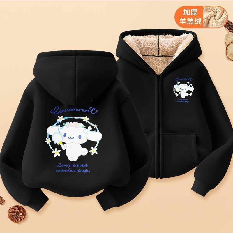 멜로디 쿨로 미 가을과 겨울 소녀 지퍼 코트 기모 두꺼운 외국 스타일 어린이 후드 카디건 얇은 스웨터