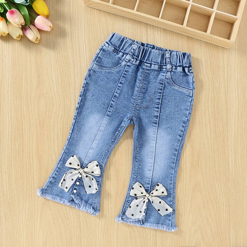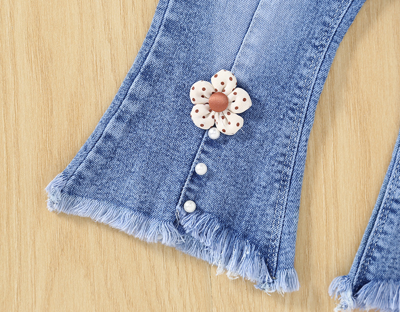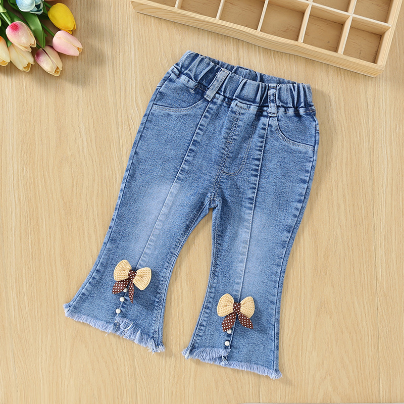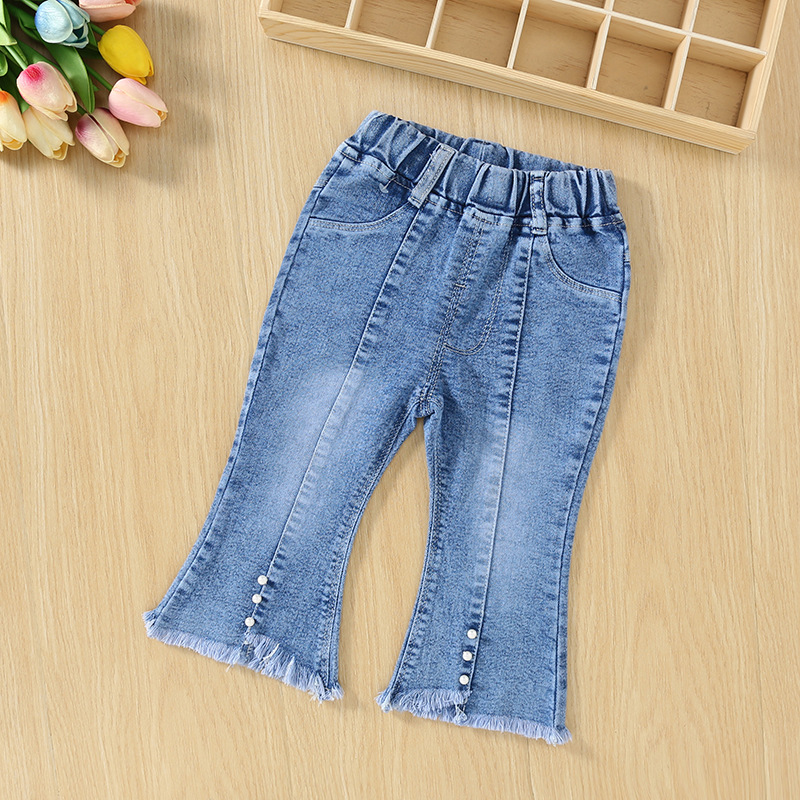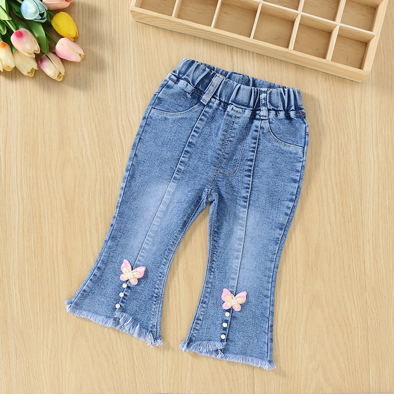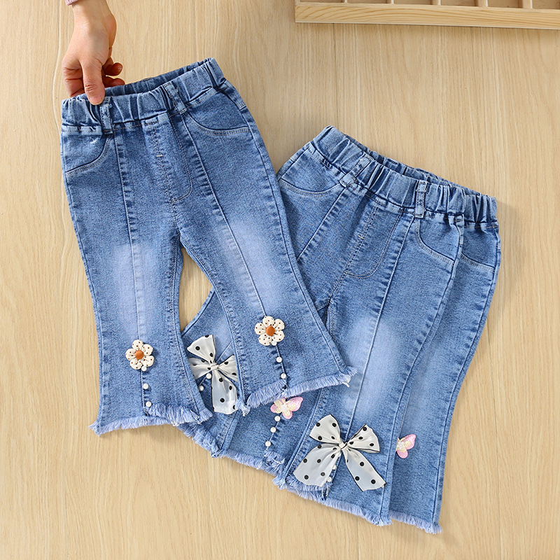 저렴한 소녀 청바지 봄과 가을 새로운 세련된 유행 아기 소녀 꽃 바지 어린이 가을 캐주얼 바지스토어 가기