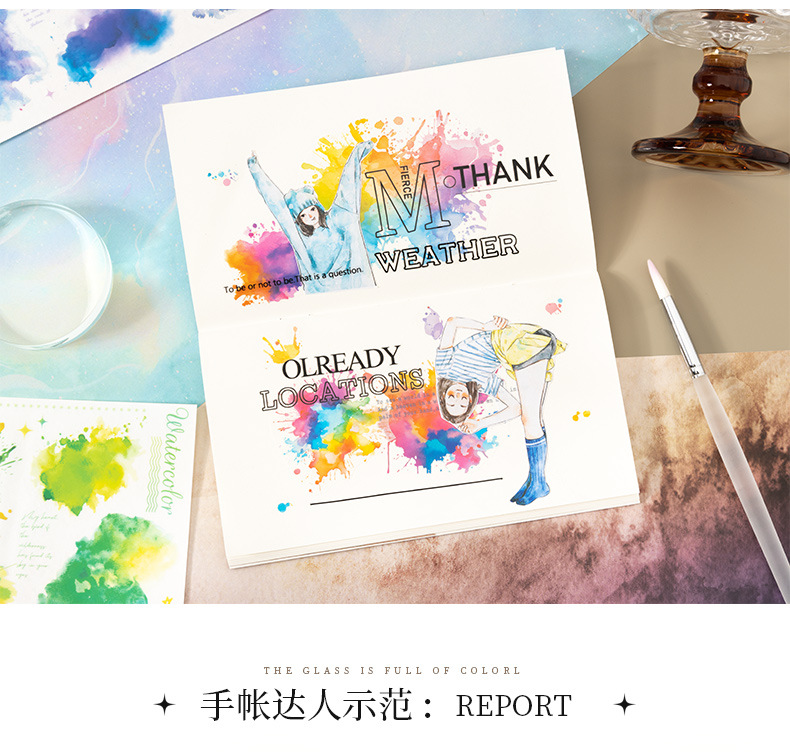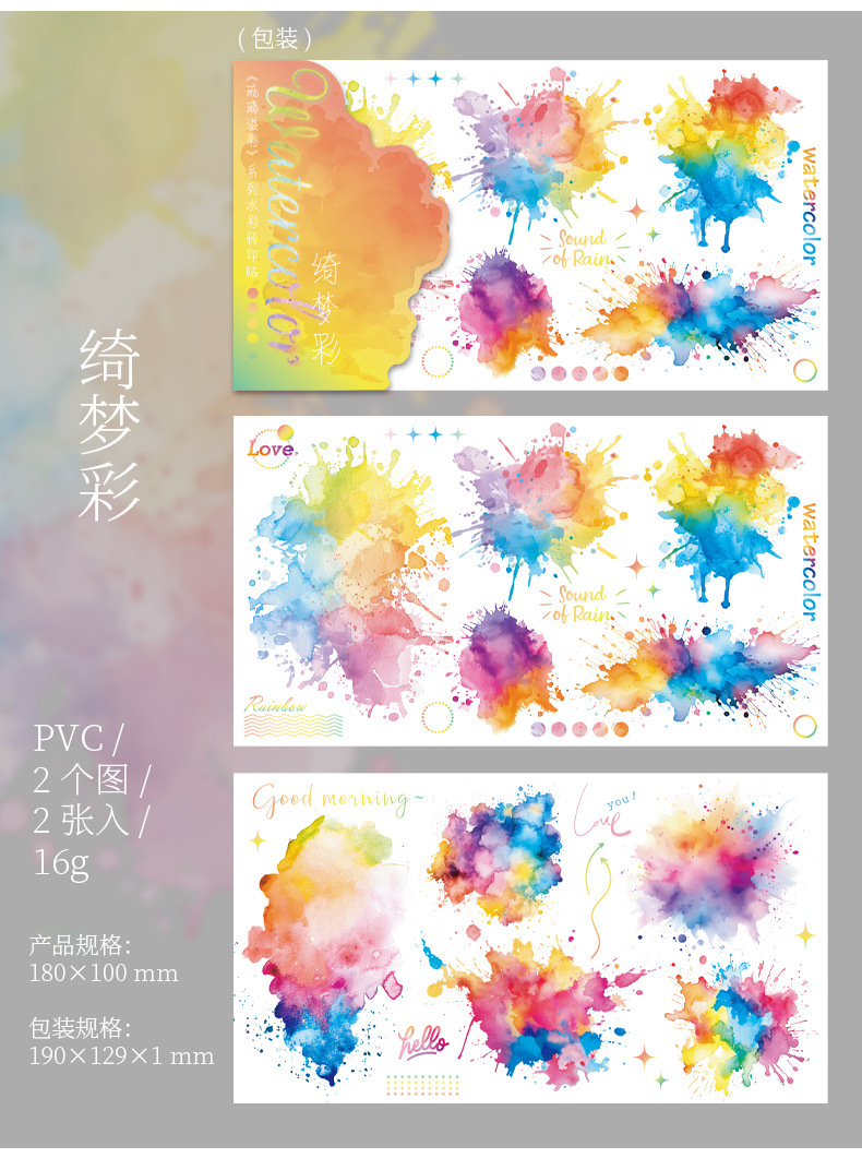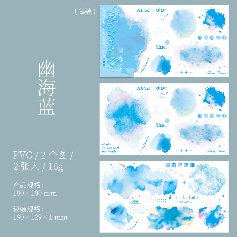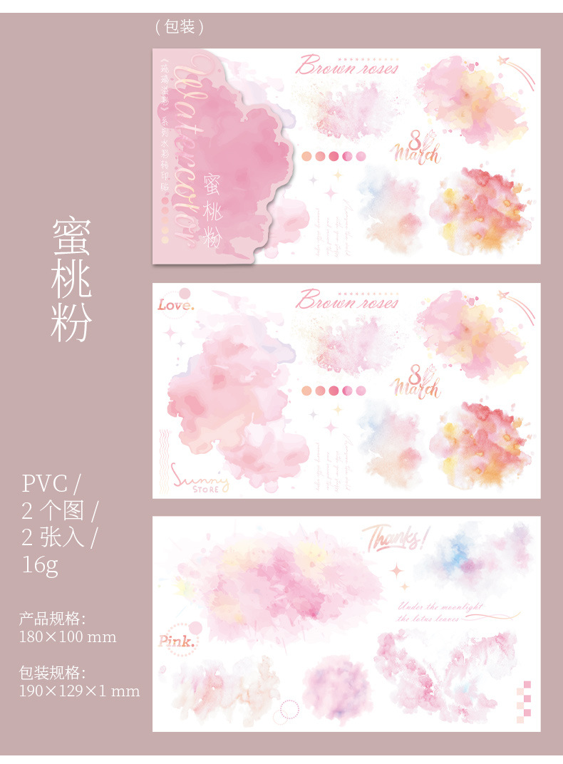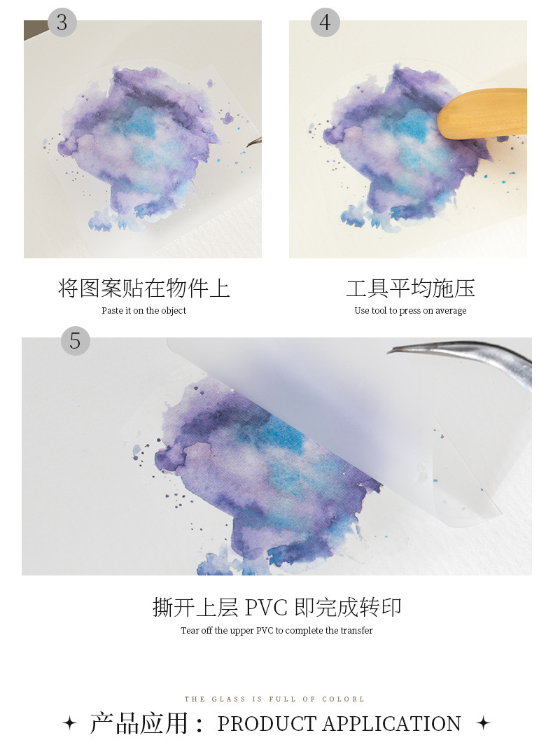 유리 오버플로우 수채화 전송 스티커 예술적 컬러 잉크 헤일로 손 계정 기본 장식 소재 스티커