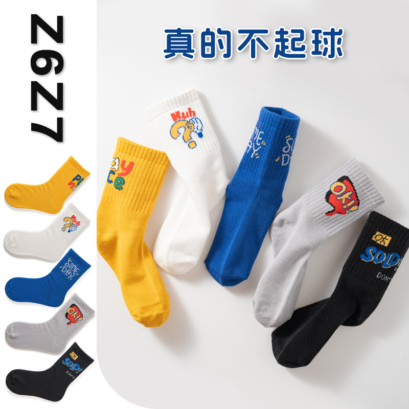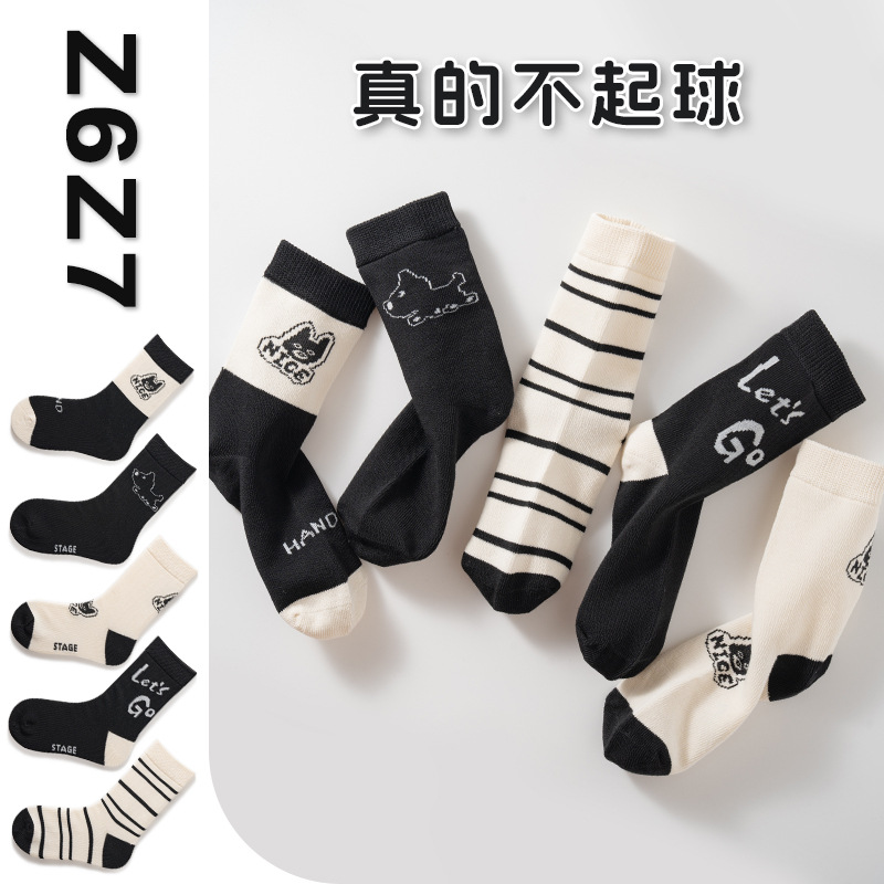 2025秋季新款儿童中筒袜卡通潮流中小童半精梳棉学生袜男童女童袜