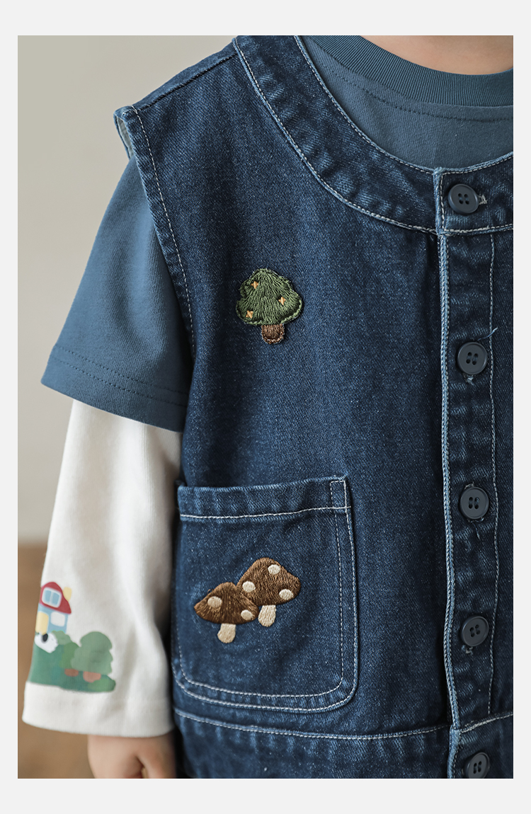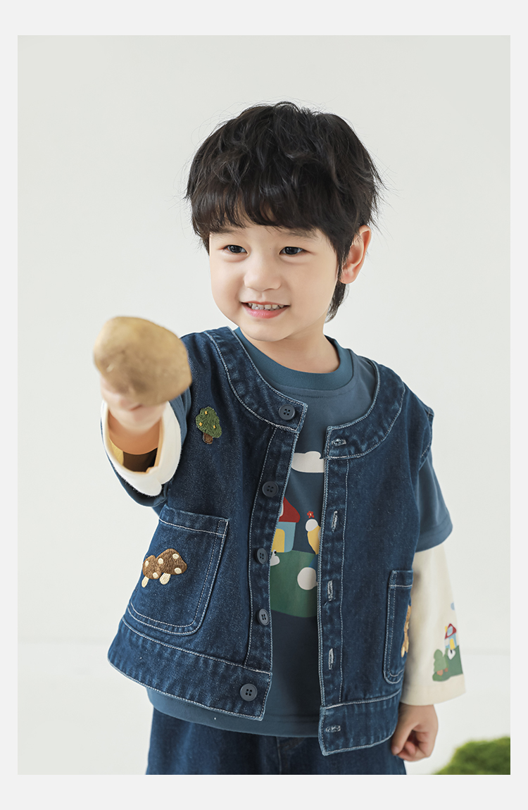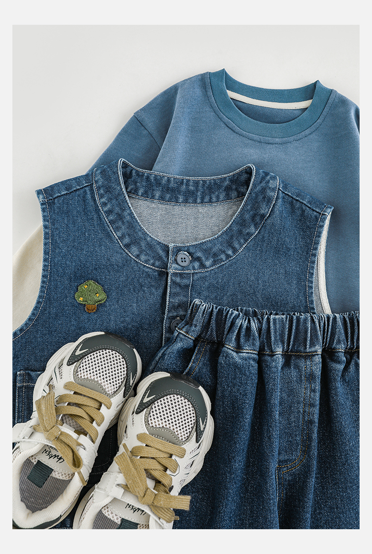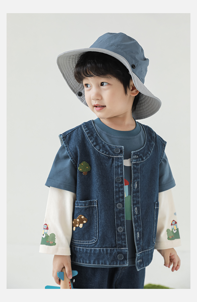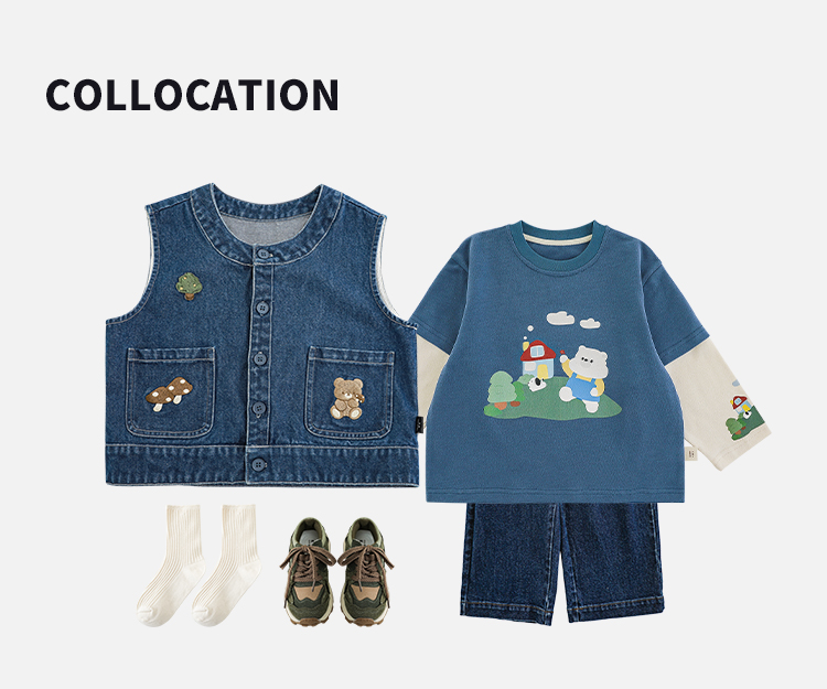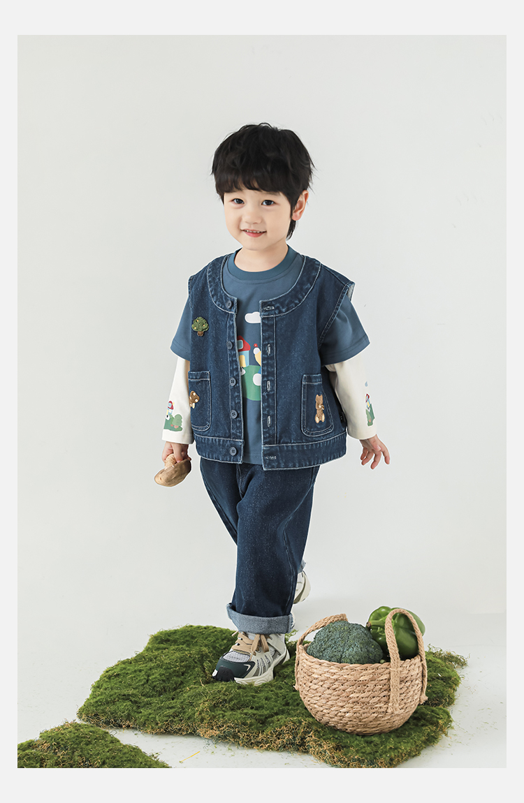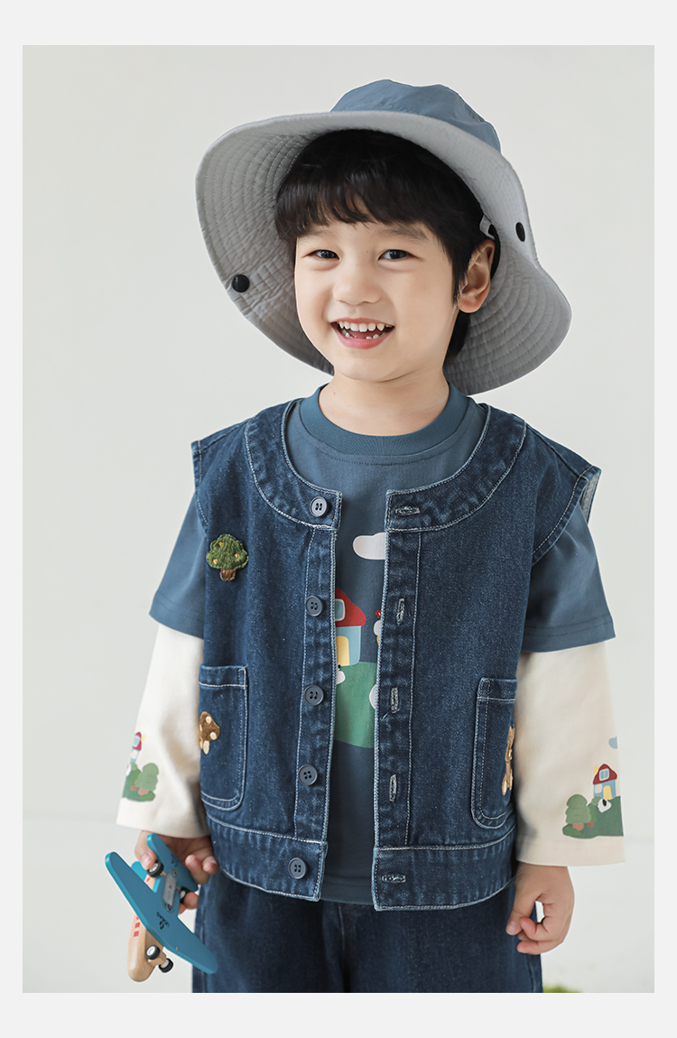 Wuribu 아동복 소년 데님 조끼 2024 새로운 패션 올 매치 트렌디 한 민소매 곰 조끼스토어 가기
