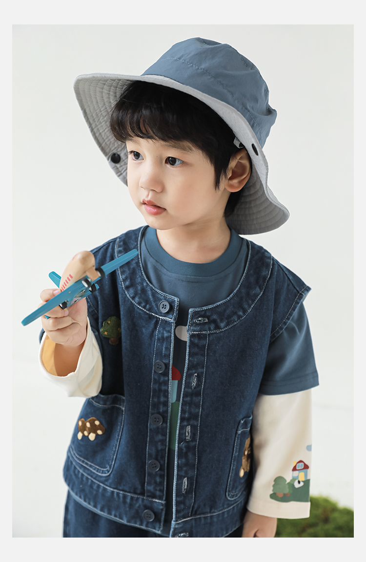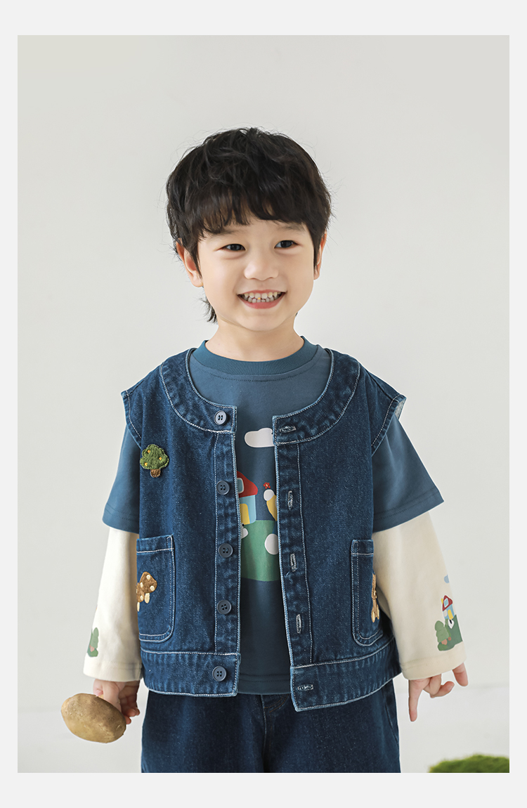 Wuribu 아동복 소년 데님 조끼 2024 새로운 패션 올 매치 트렌디 한 민소매 곰 조끼