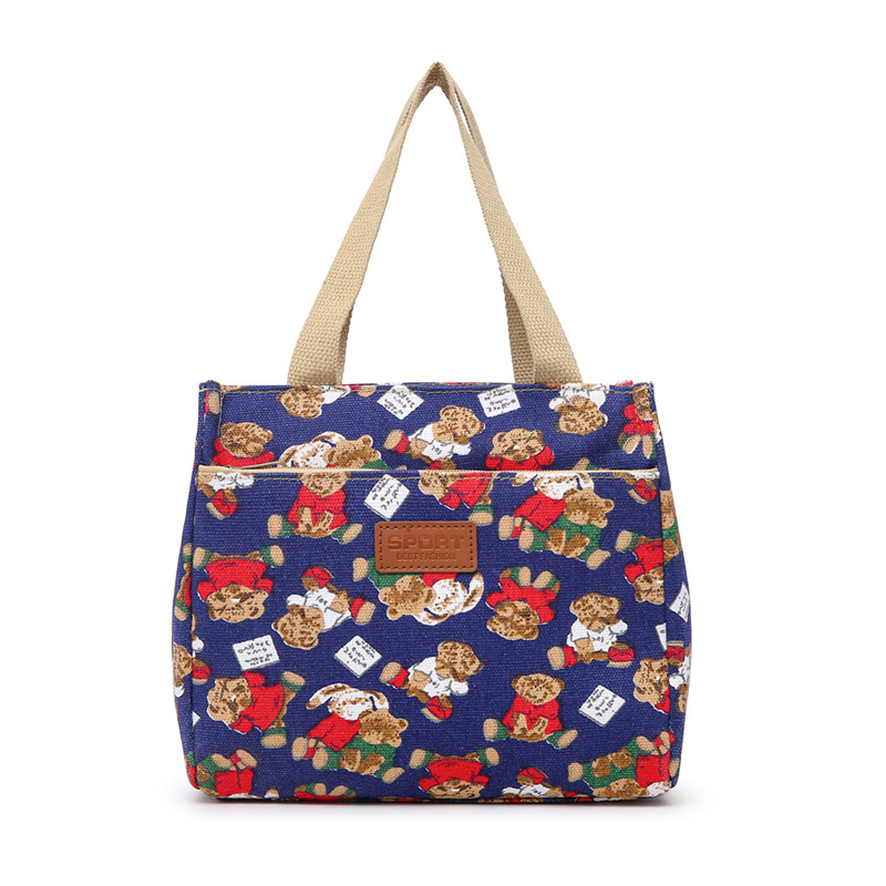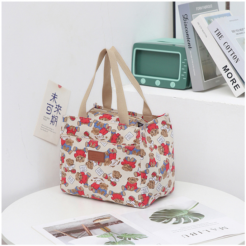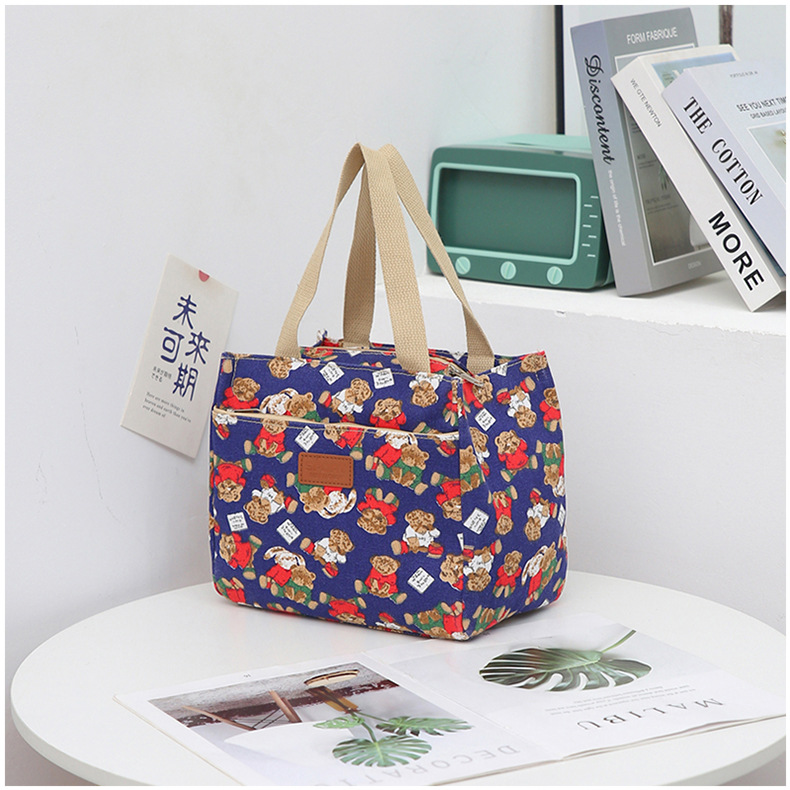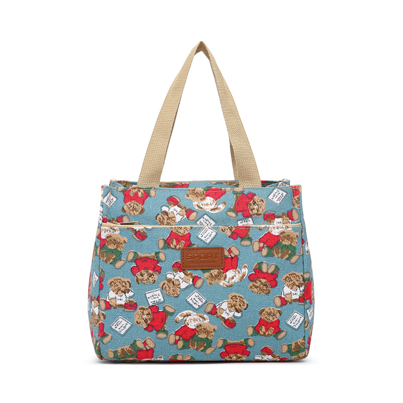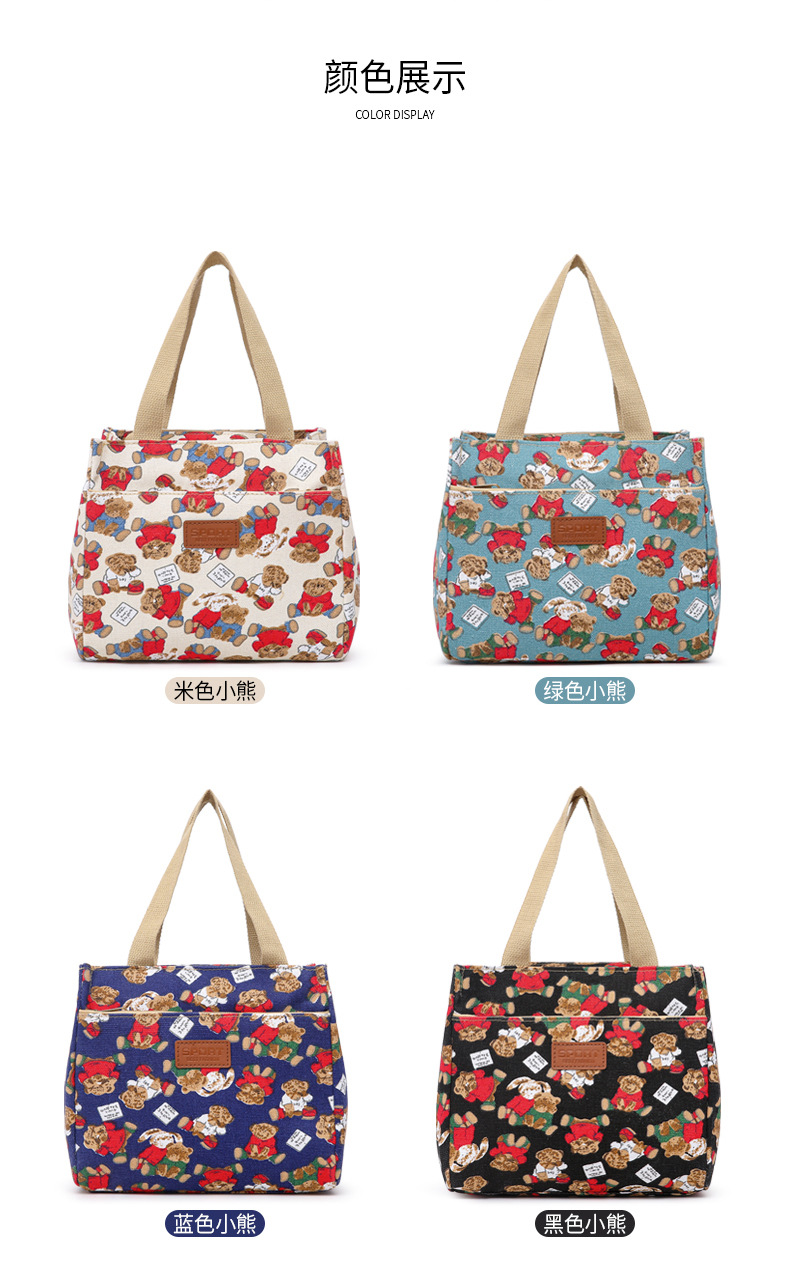 캔버스 새로운 휴대용 점심 가방 대용량 작업 도시락 가방 귀여운 만화 인쇄 두꺼운 알루미늄 호일 절연 가방스토어 가기
