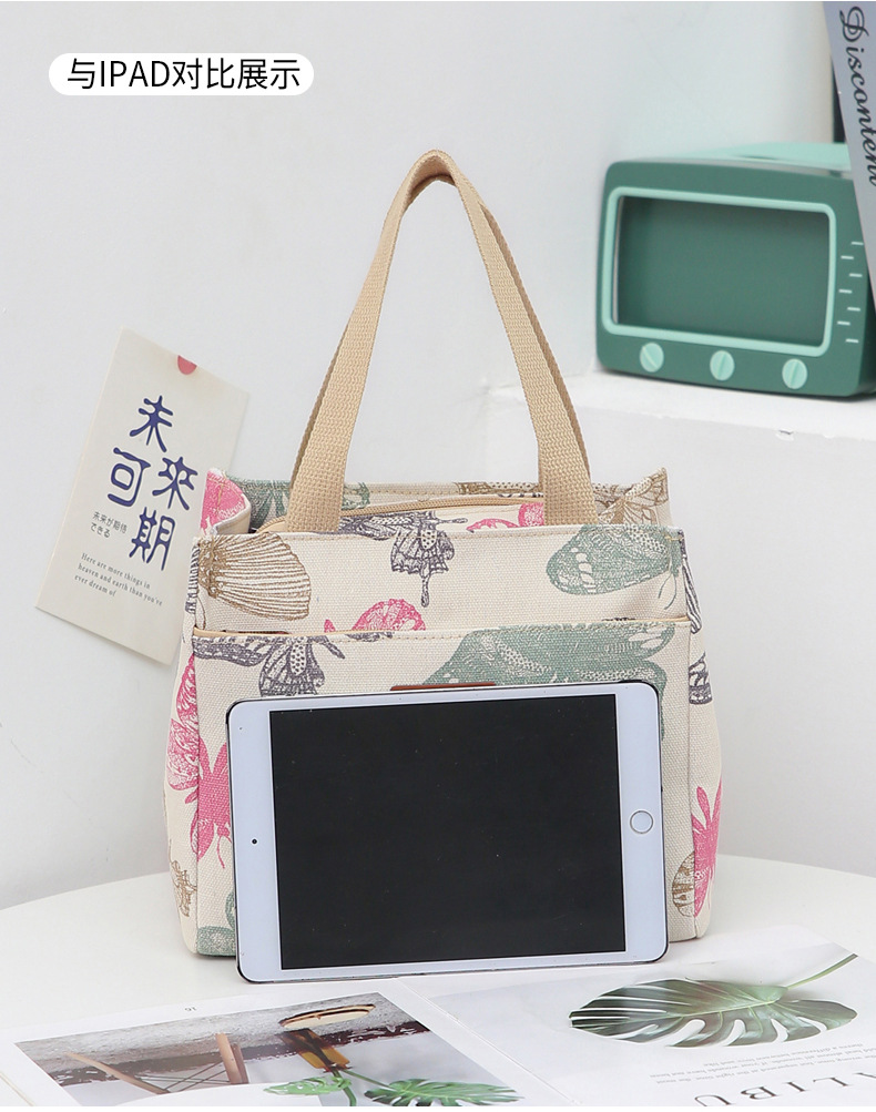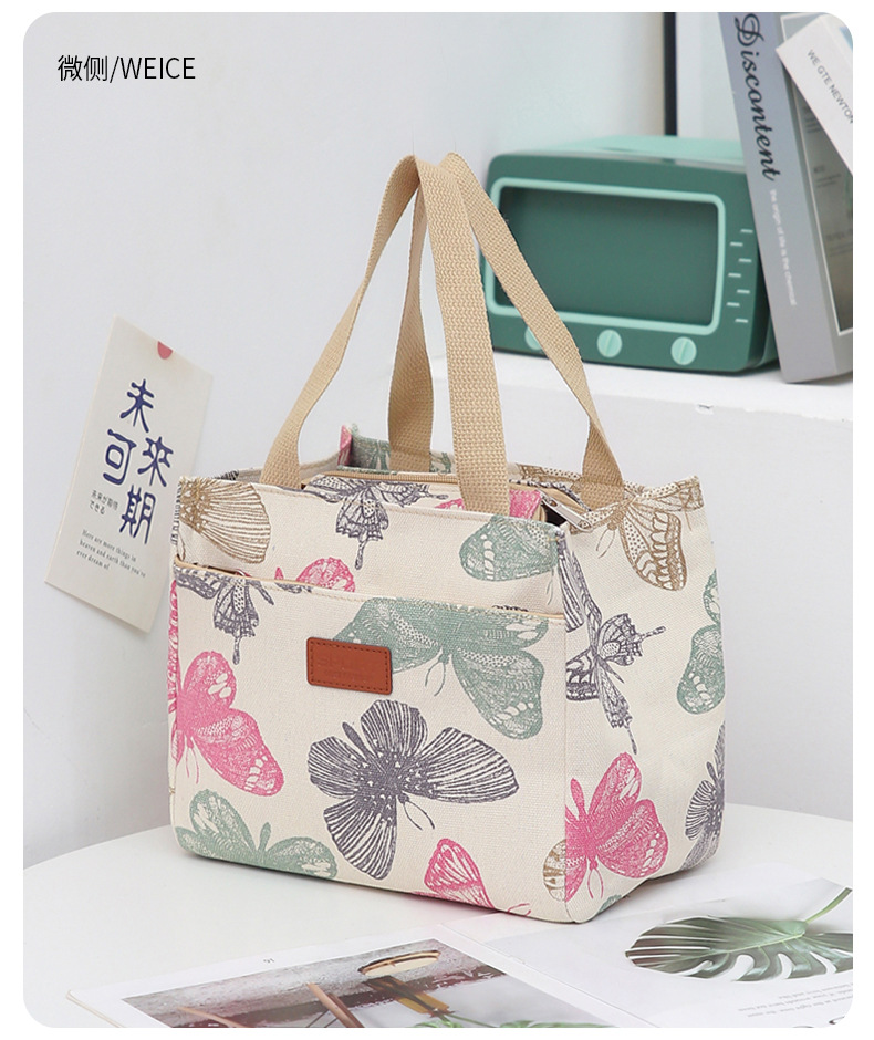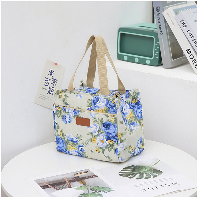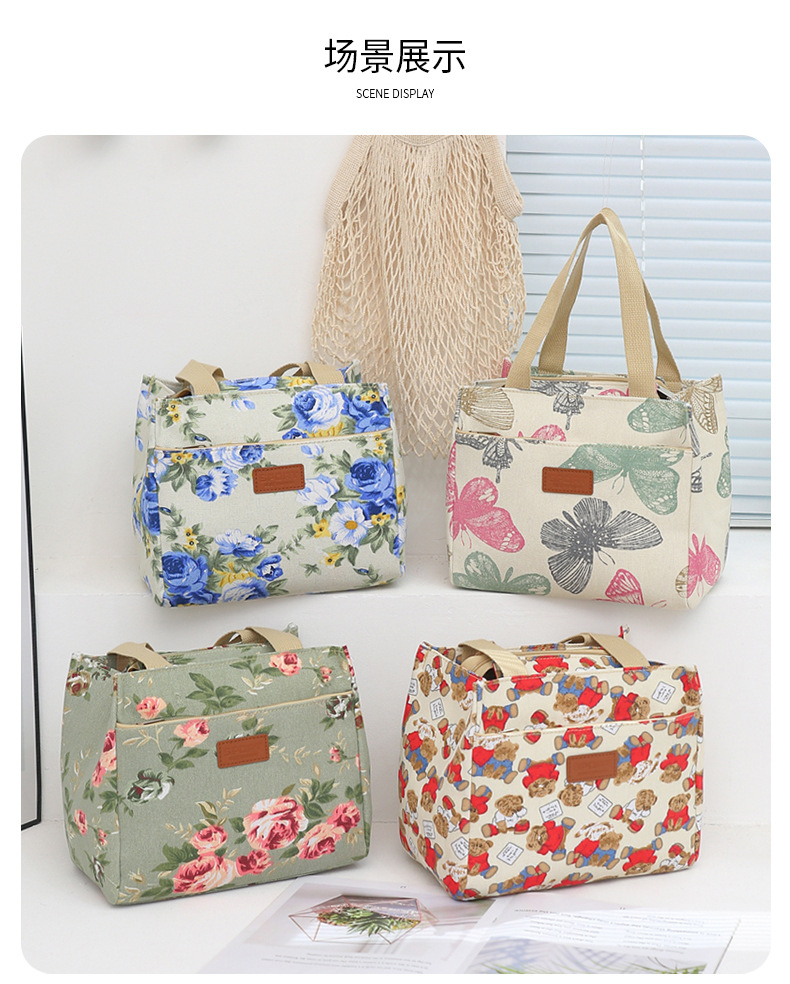 캔버스 새로운 휴대용 점심 가방 대용량 작업 도시락 가방 귀여운 만화 인쇄 두꺼운 알루미늄 호일 절연 가방스토어 가기