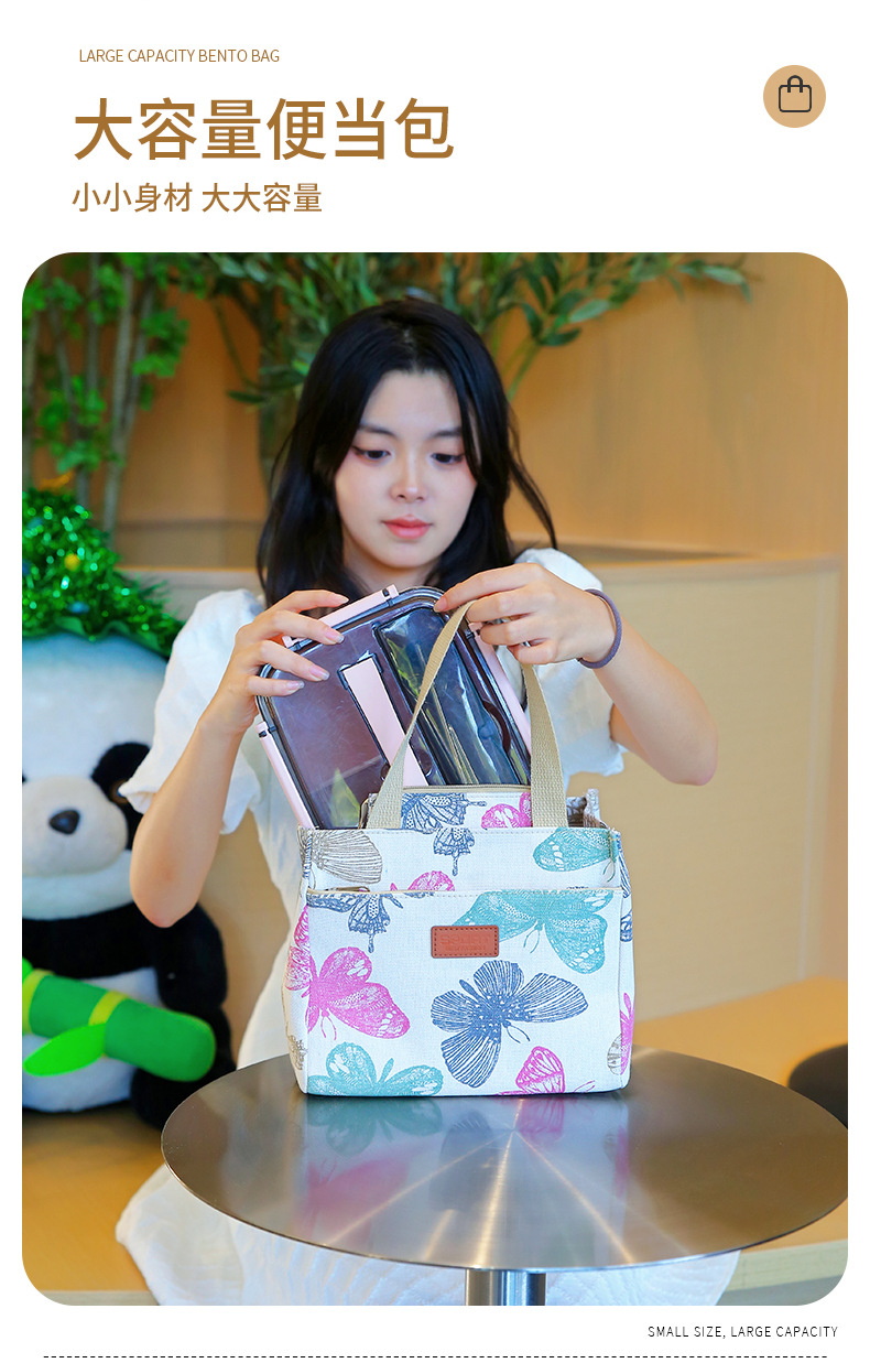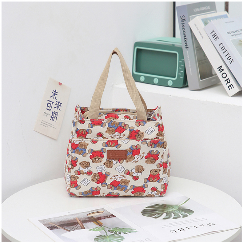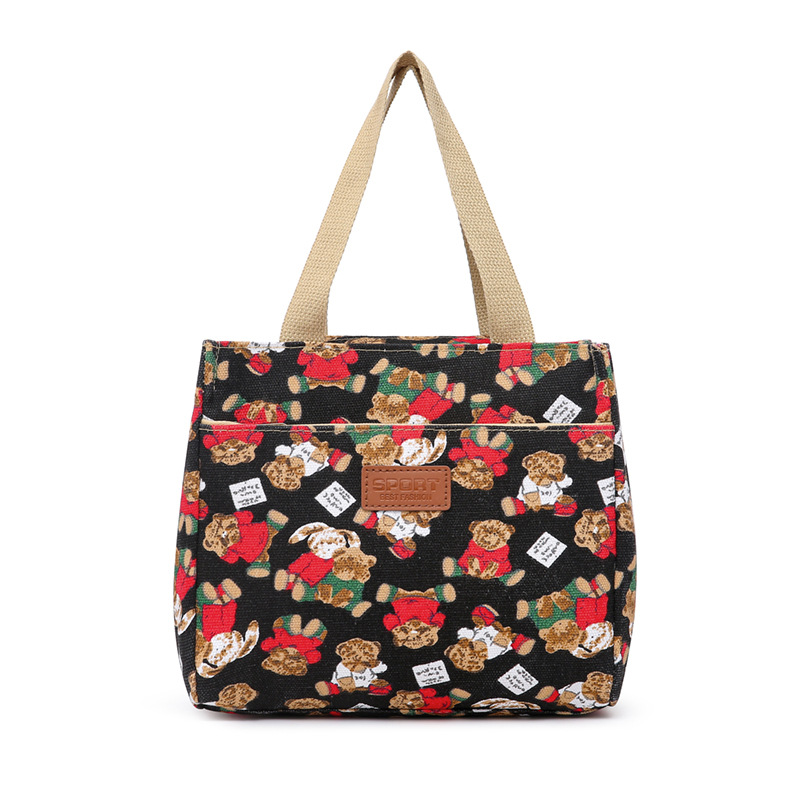 캔버스 새로운 휴대용 점심 가방 대용량 작업 도시락 가방 귀여운 만화 인쇄 두꺼운 알루미늄 호일 절연 가방