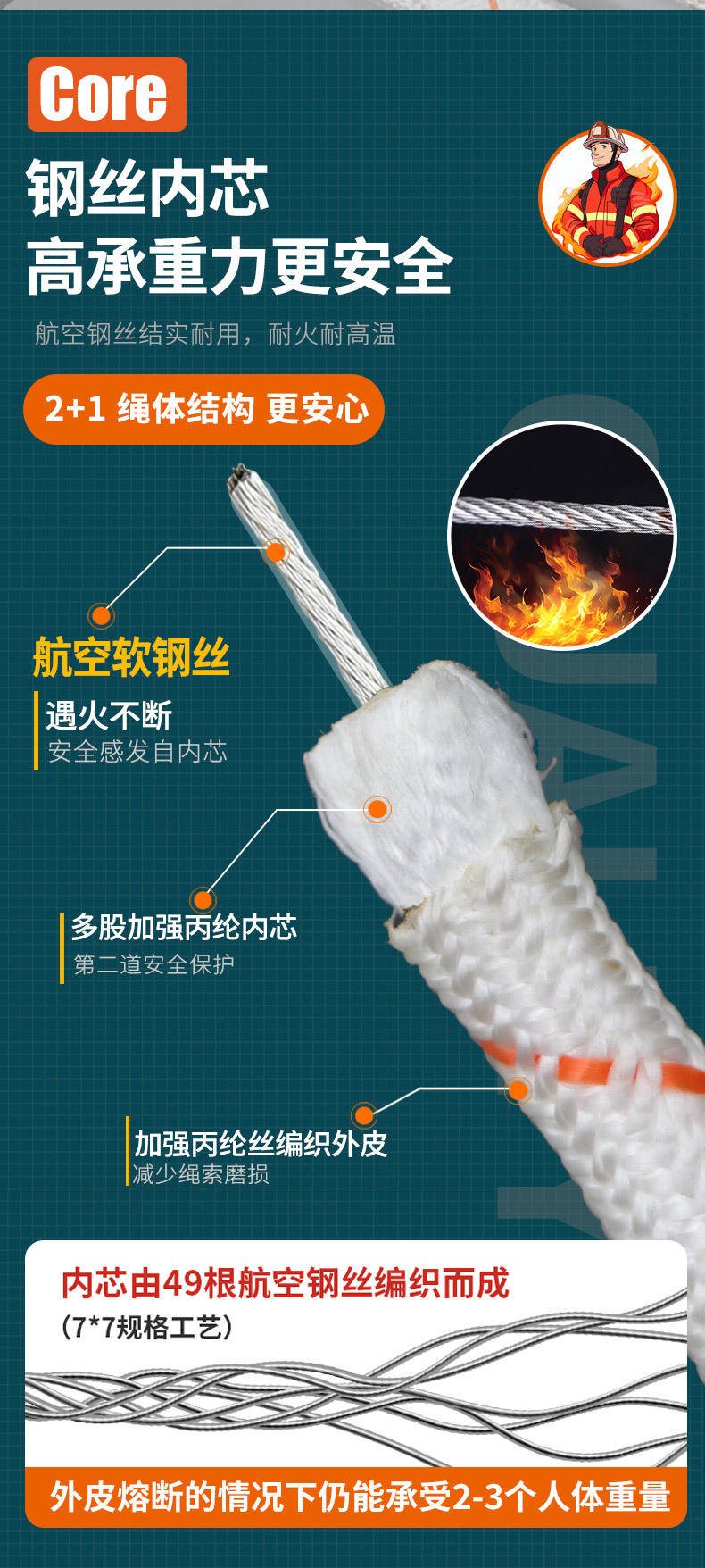 안전 밧줄 두꺼운 야외 스틸 와이어 코어 화재 고층 화재 구조 인명 구조 로프 고고도 작업 낙하 방지스토어 가기