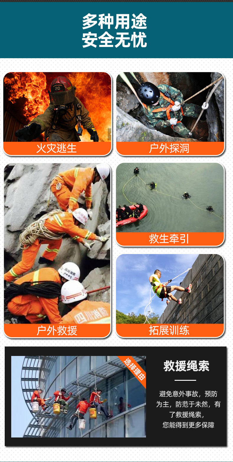 안전 밧줄 두꺼운 야외 스틸 와이어 코어 화재 고층 화재 구조 인명 구조 로프 고고도 작업 낙하 방지