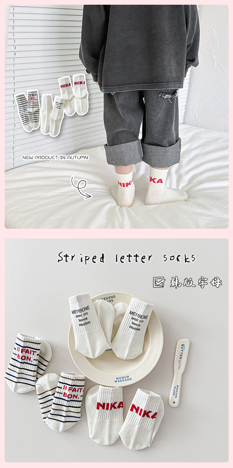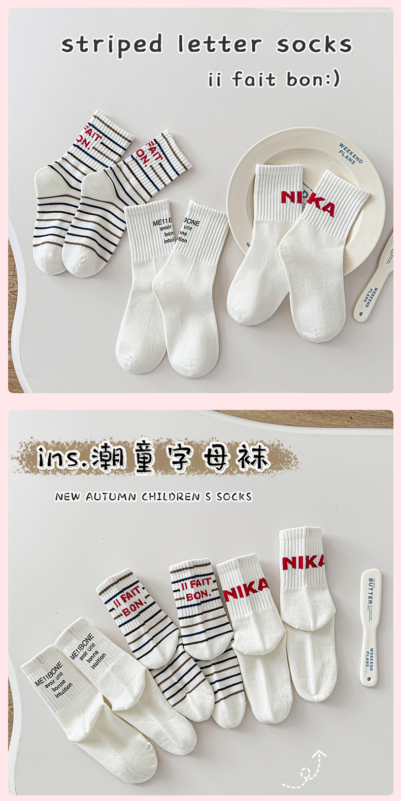 가을 · 겨울 스타킹 심플 올매치 어린이 양말 소년 중장 양말 한국식 편지 트렌디한 Ins 아기 면화 양말