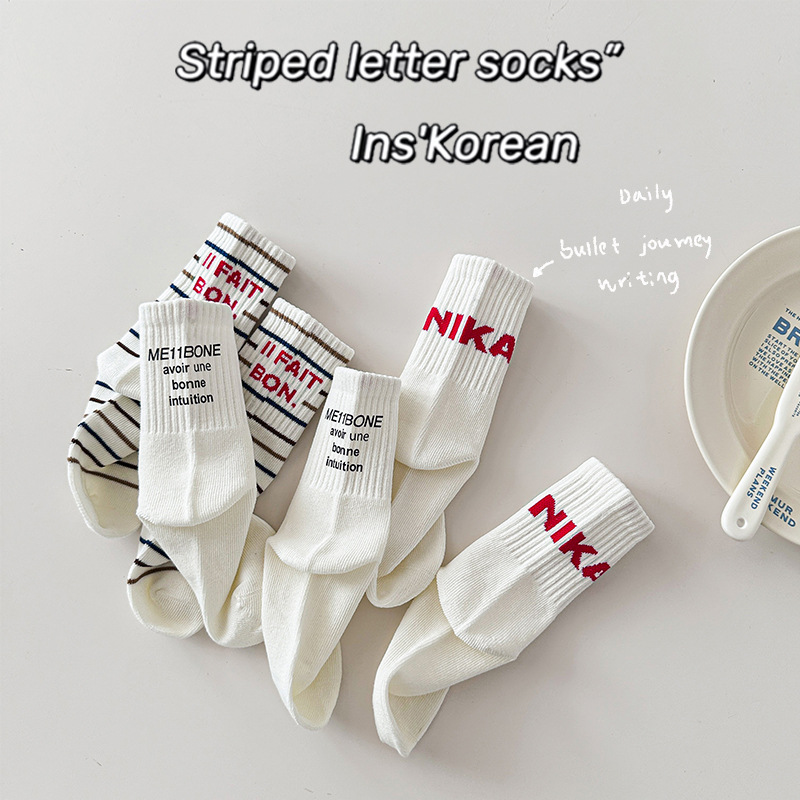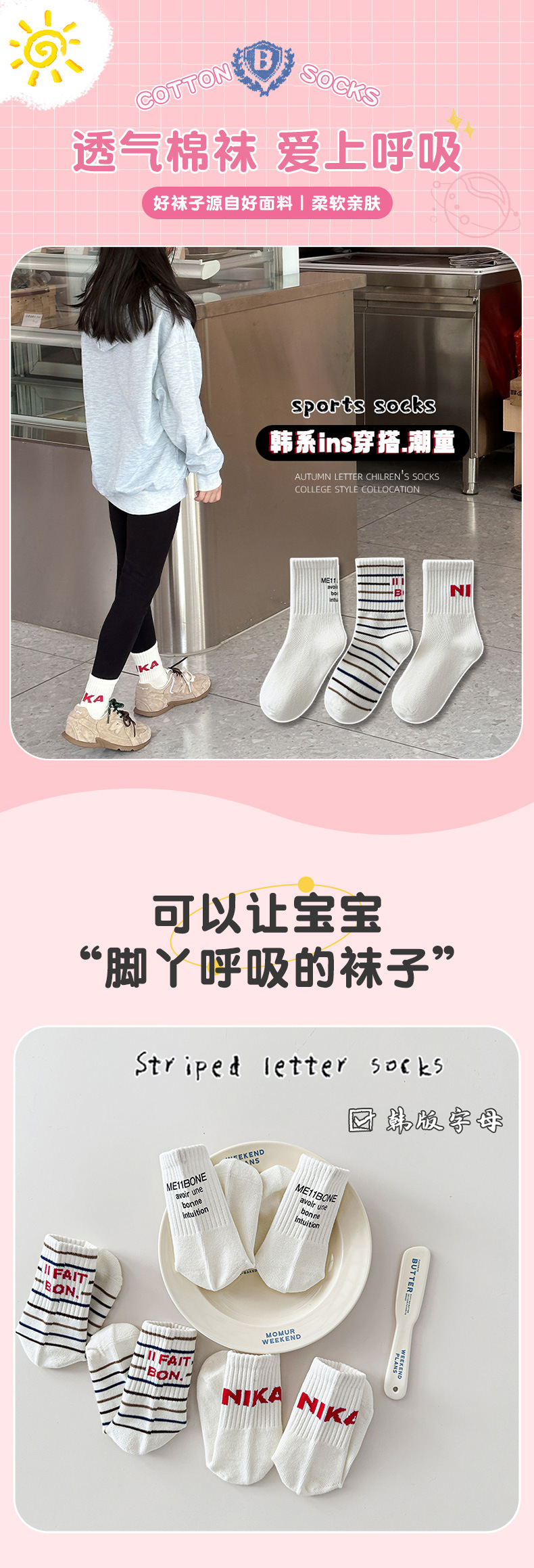 • ins 트렌디한 어린이 편지 양말(한 손에 세 켤레)