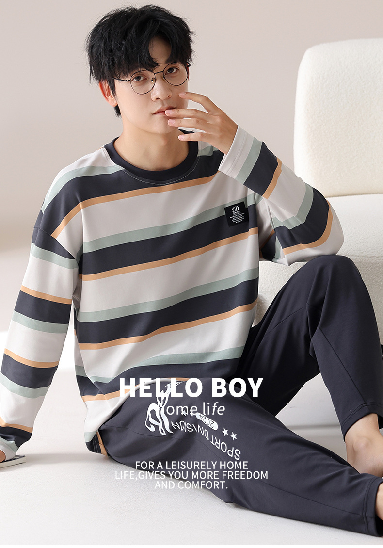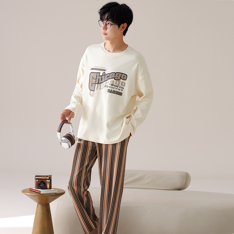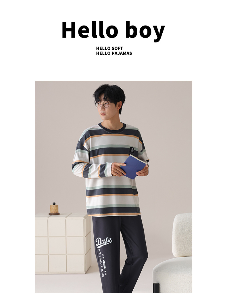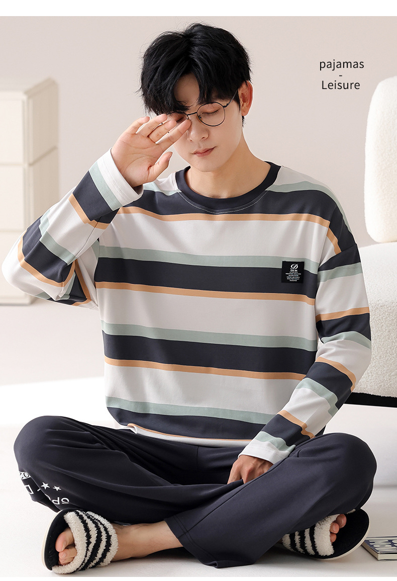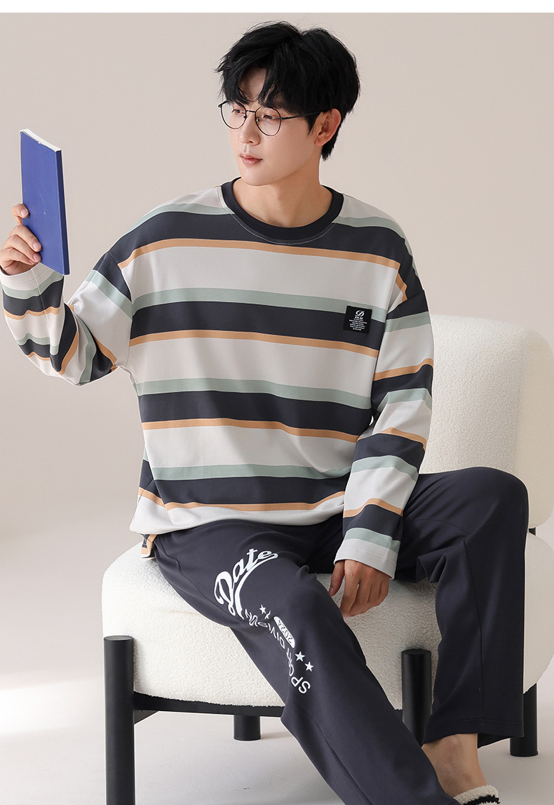 6535 양면 두꺼운 205g 중년 잠옷 남자 긴 소매 바지 홈 옷 카디건 세트 아빠 잠옷스토어 가기