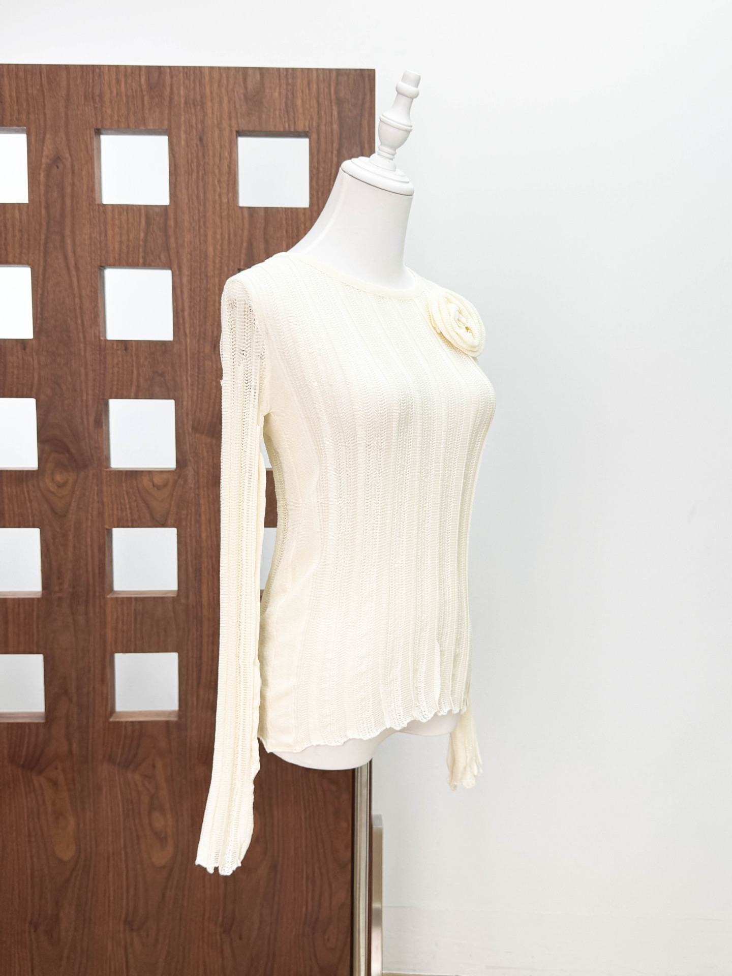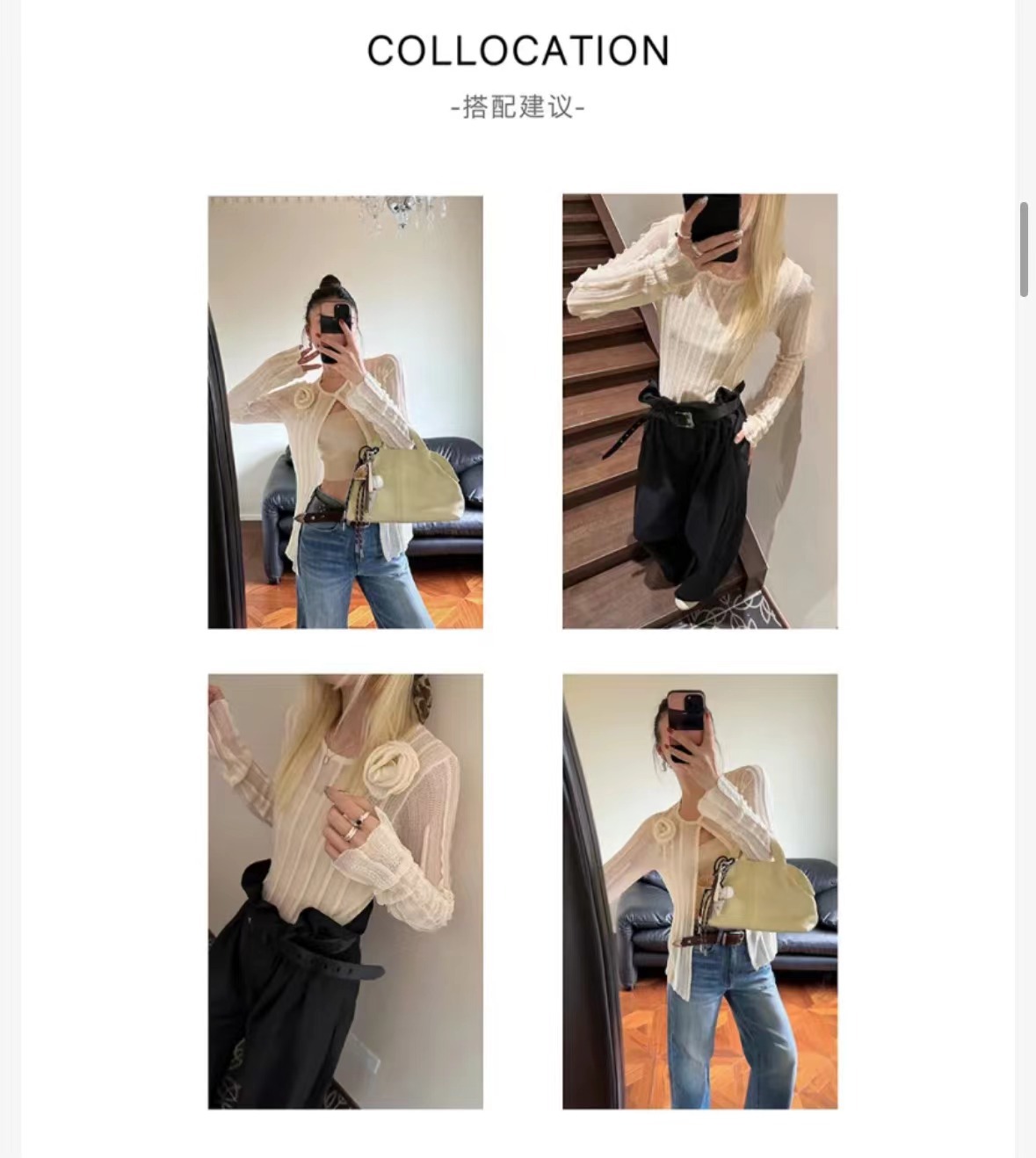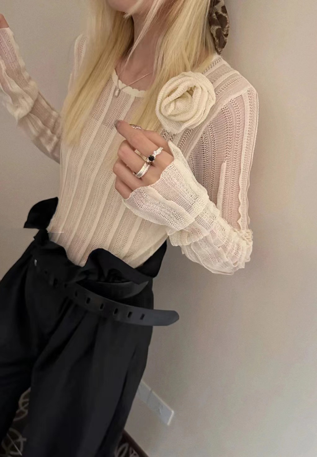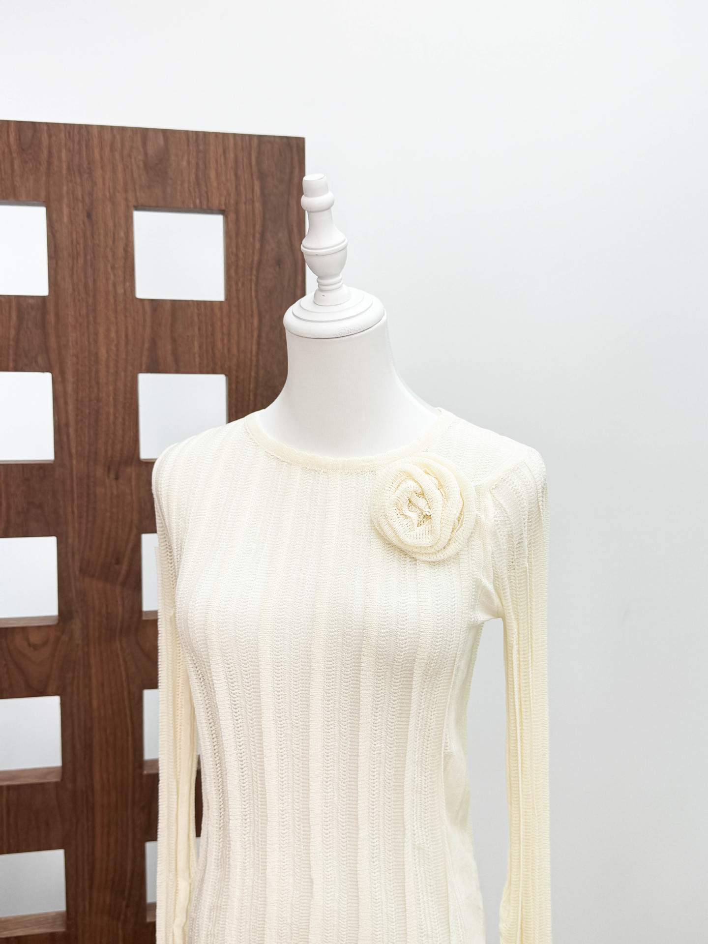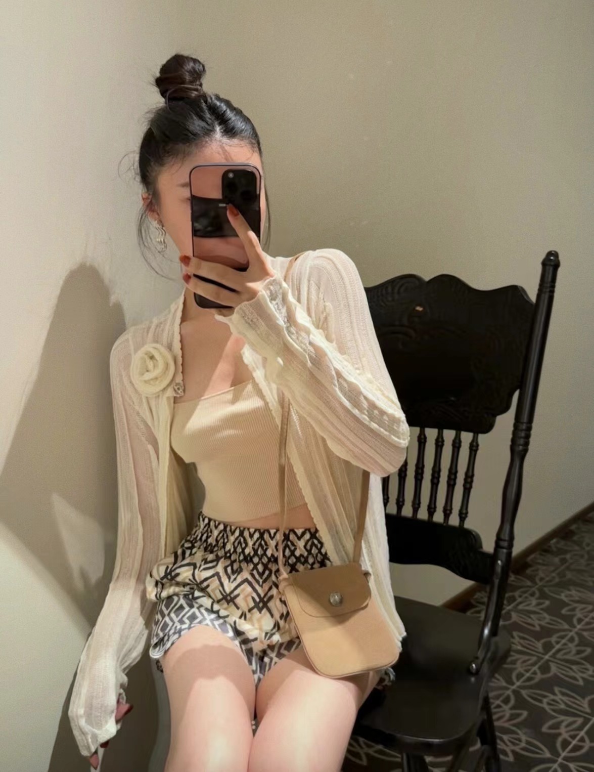 2025ss 프렌치 스타일의 부드러운 감성과 여유로운 분위기, 입체적인 꽃무늬로 나이를 덜어주는 베이지색 니트 가디건 여성용스토어 가기