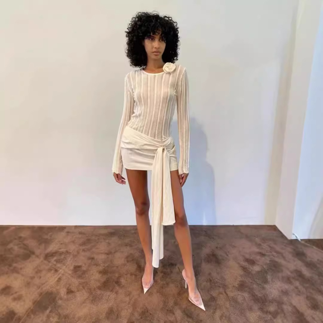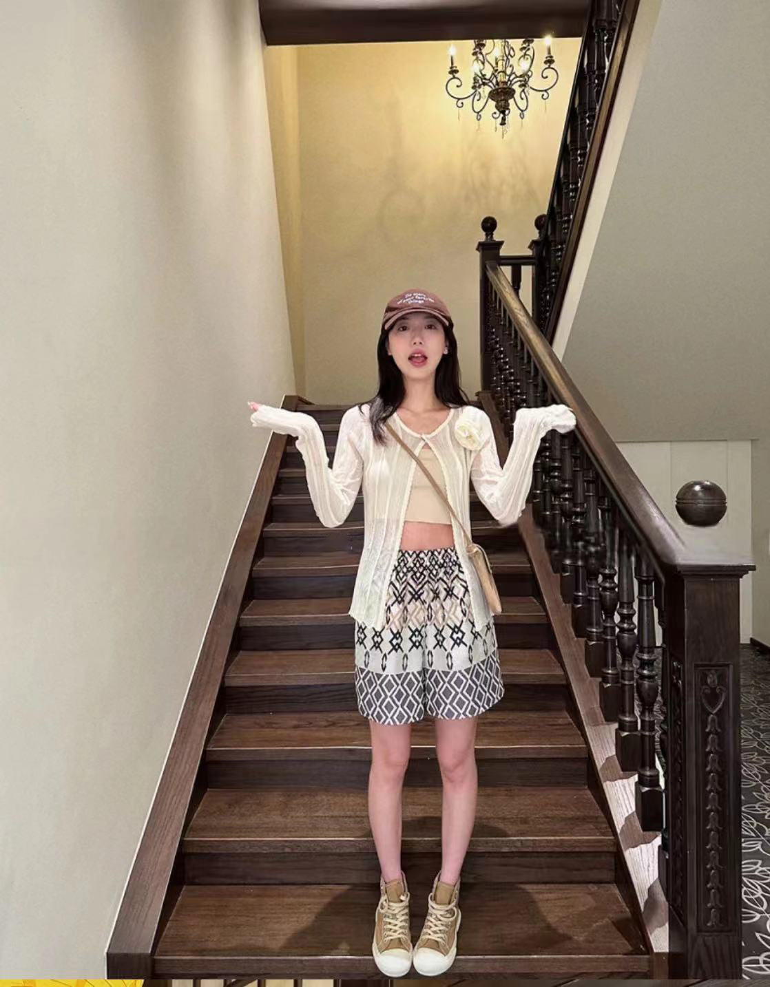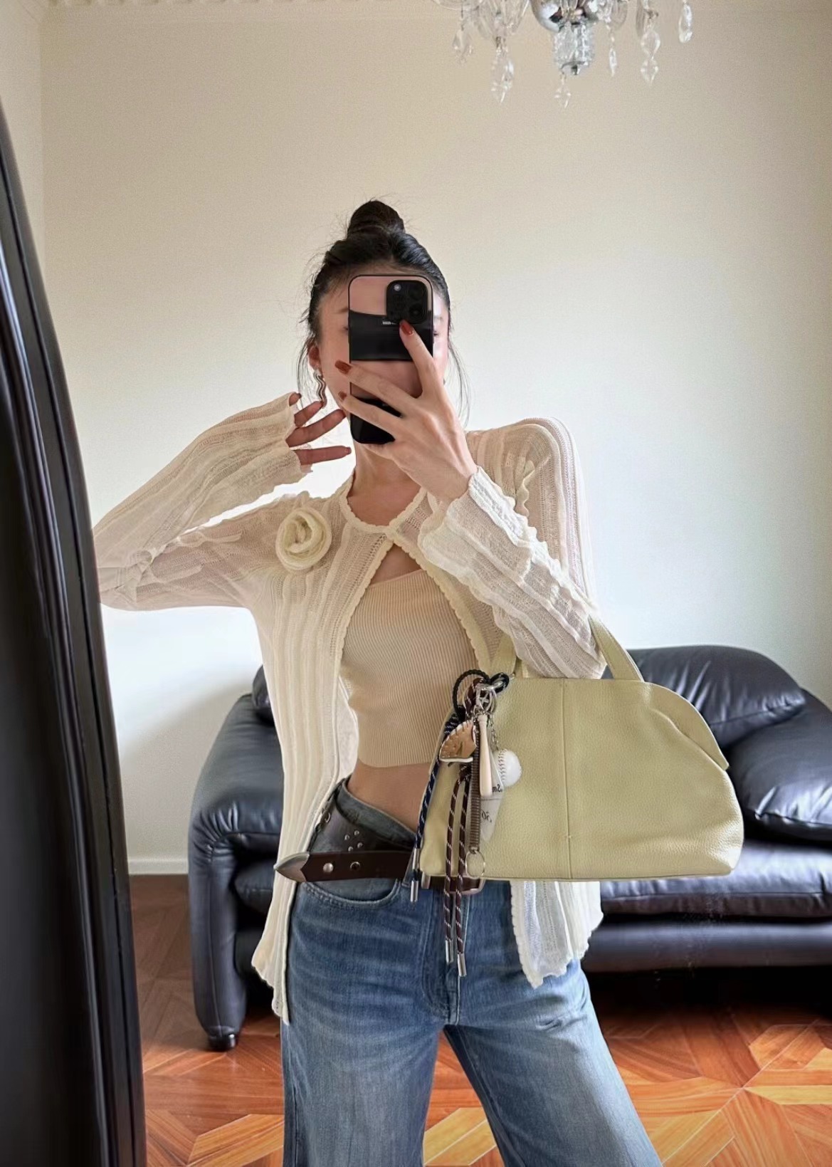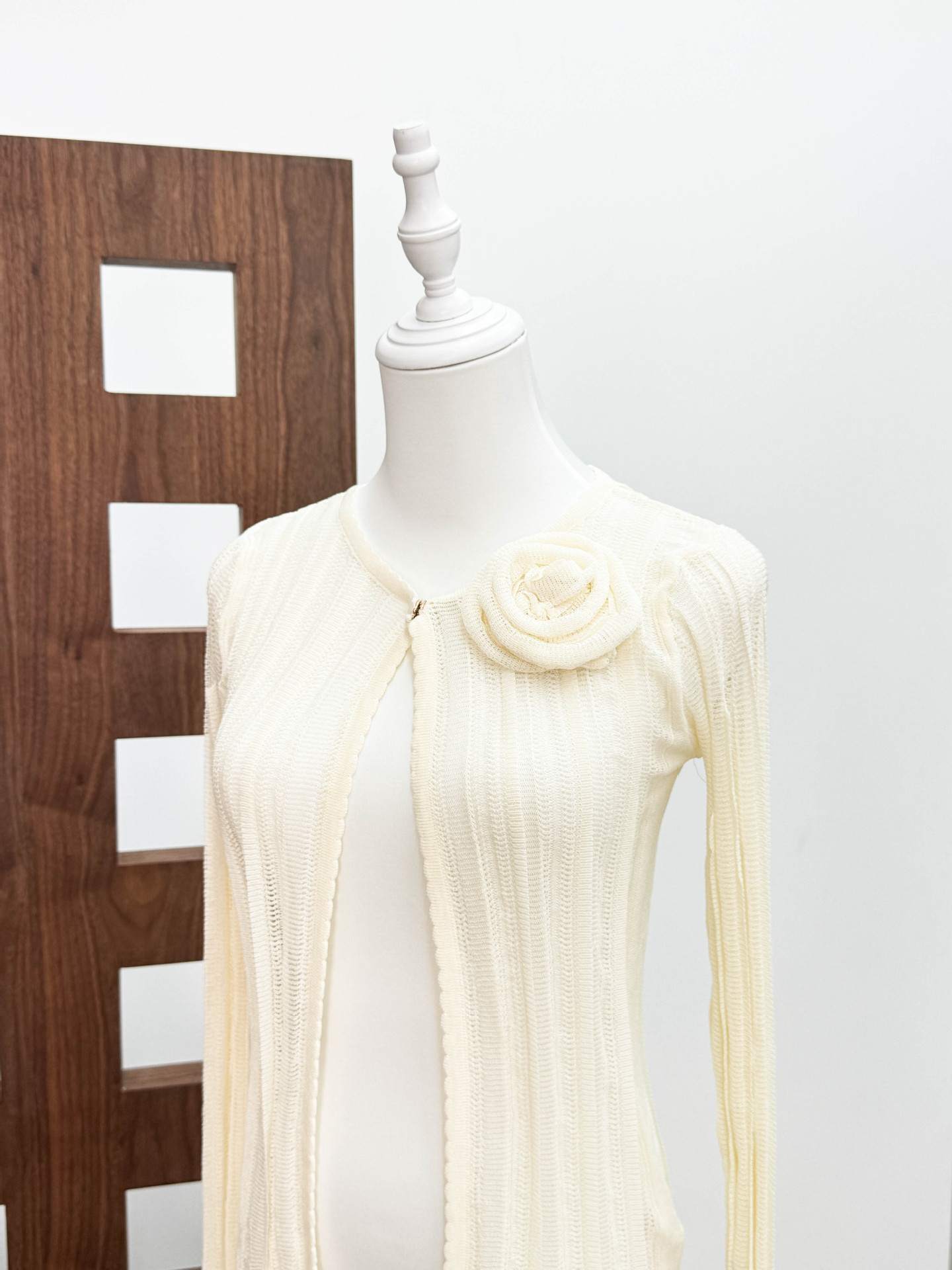 2025ss 프렌치 스타일의 부드러운 감성과 여유로운 분위기, 입체적인 꽃무늬로 나이를 덜어주는 베이지색 니트 가디건 여성용