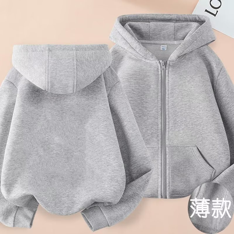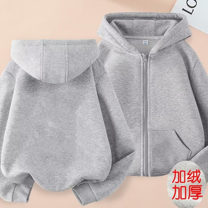 2024 가을과 겨울 새로운 어린이 간단한 기모 지퍼 카디건 재킷 대형 어린이 단색 따뜻한 올 매치 후드스토어 가기