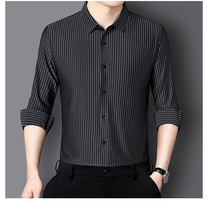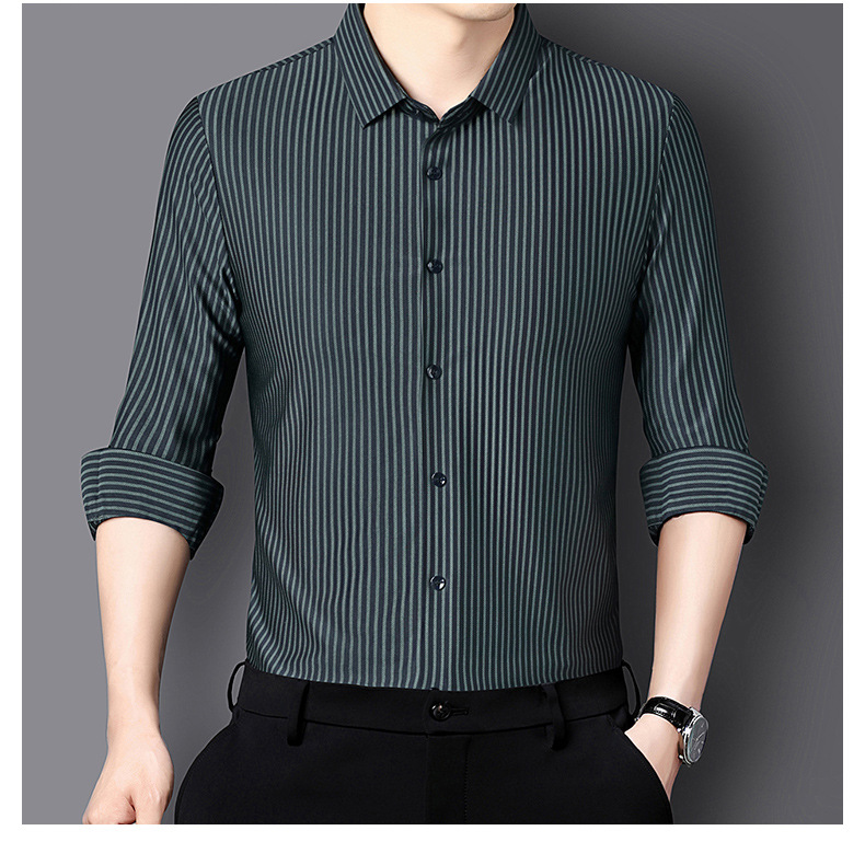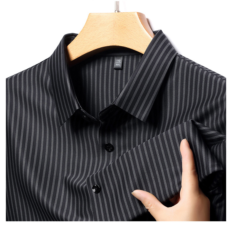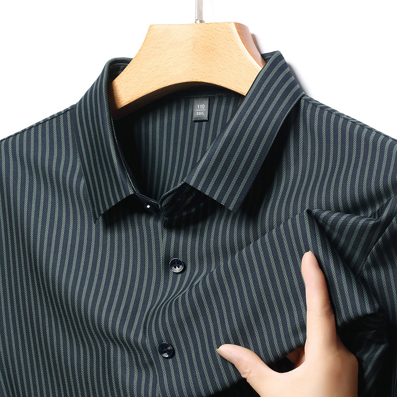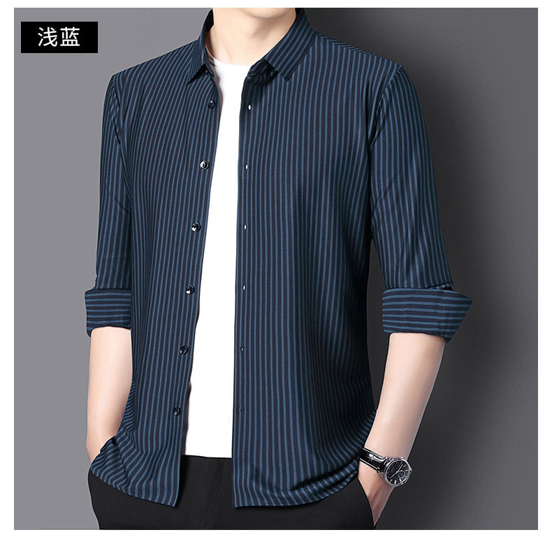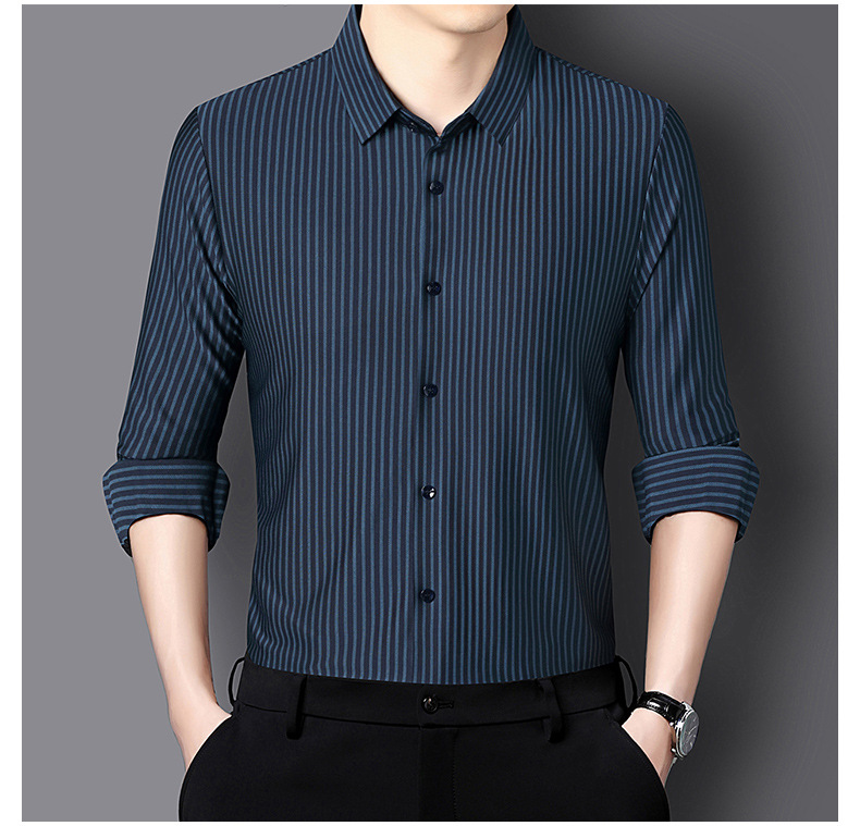 남성 봄과 가을 새로운 추적없는 긴팔 셔츠 줄무늬 젊고 중년 아빠 비즈니스 캐주얼 기지 원피스 셔츠