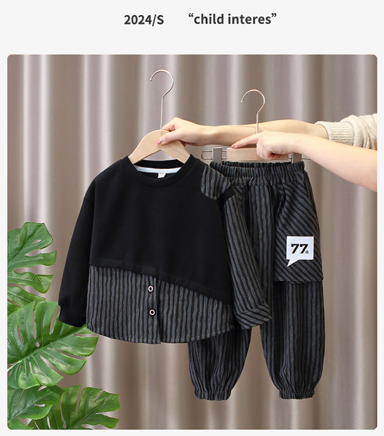 소년의 봄과 가을 땀 세트 2024 새로운 스타일 소년 캐주얼 투피스 멋진 대외 무역 어린이 의류 유행 옷스토어 가기