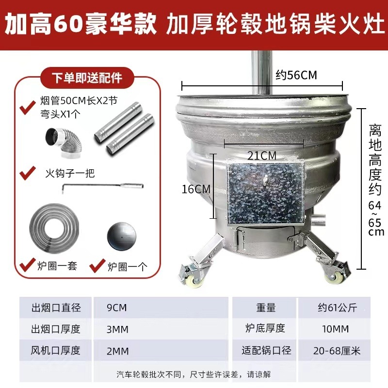 • [동영상과 동일] 구경 60cm 럭셔리 버전 + 난로 링, 난로 커버 및 굴뚝 포함, 냄비 2₩에 적합