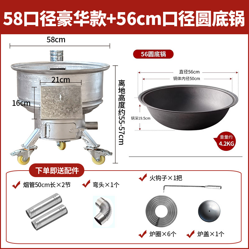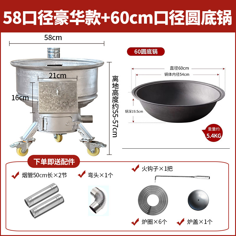 • 58 모델 디럭스 버전 + 직경 60cm 원형 바닥 냄비 + 스테인레스 냄비 뚜껑₩