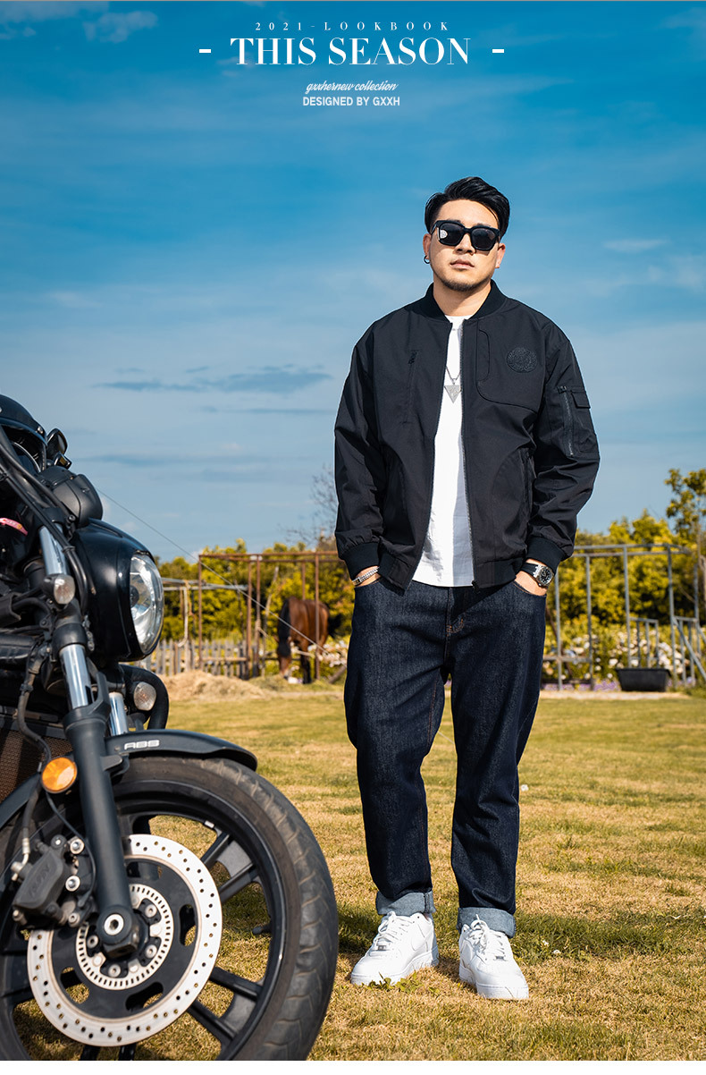 플러스 사이즈 남자 2024 가을 야구 칼라 자켓 남자 트렌디 브랜드 단순 올 매치 루즈 캐주얼 탑스토어 가기