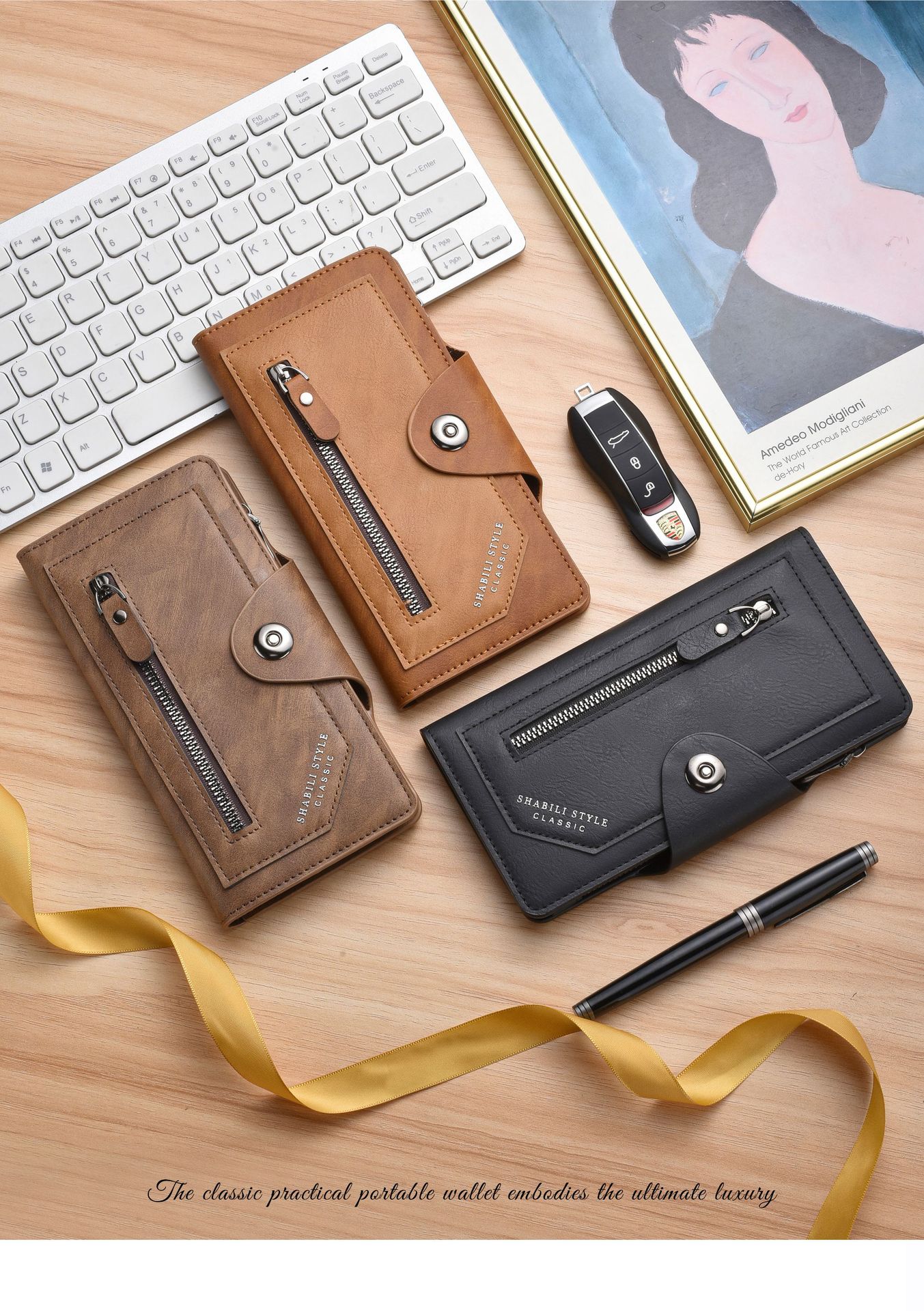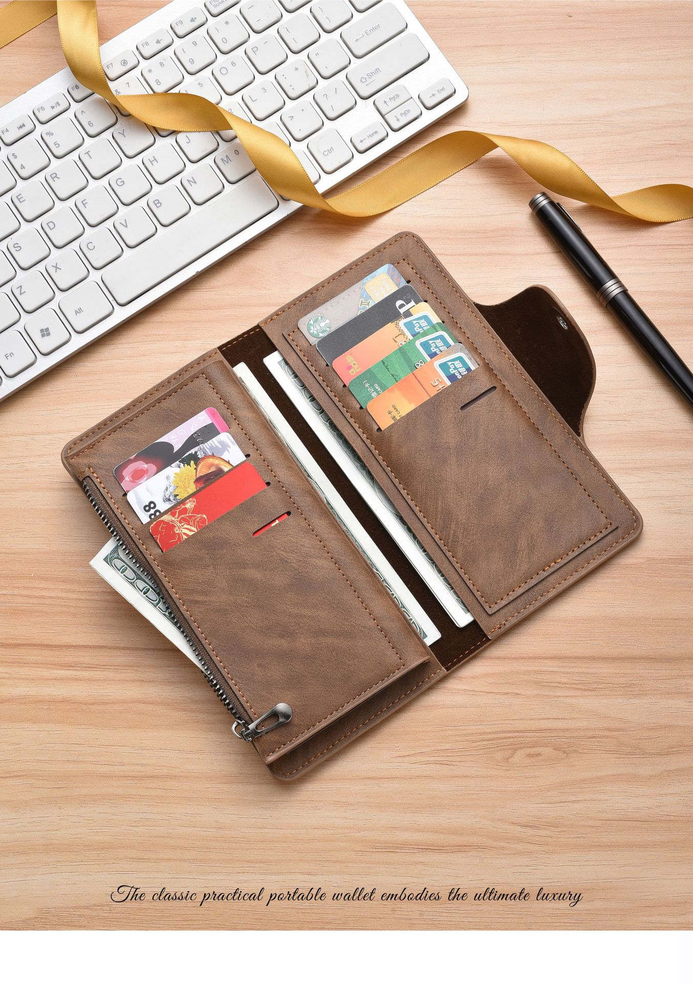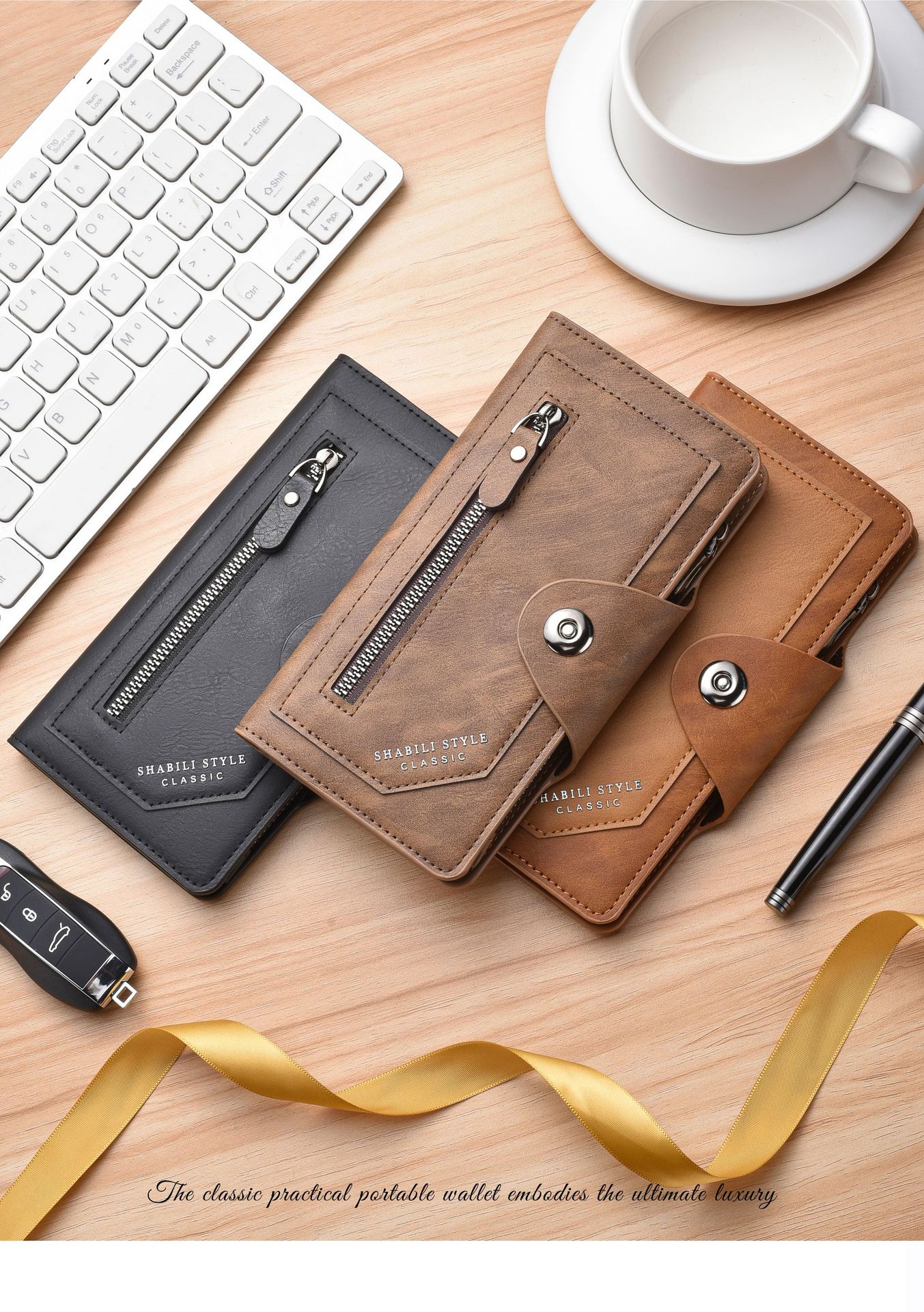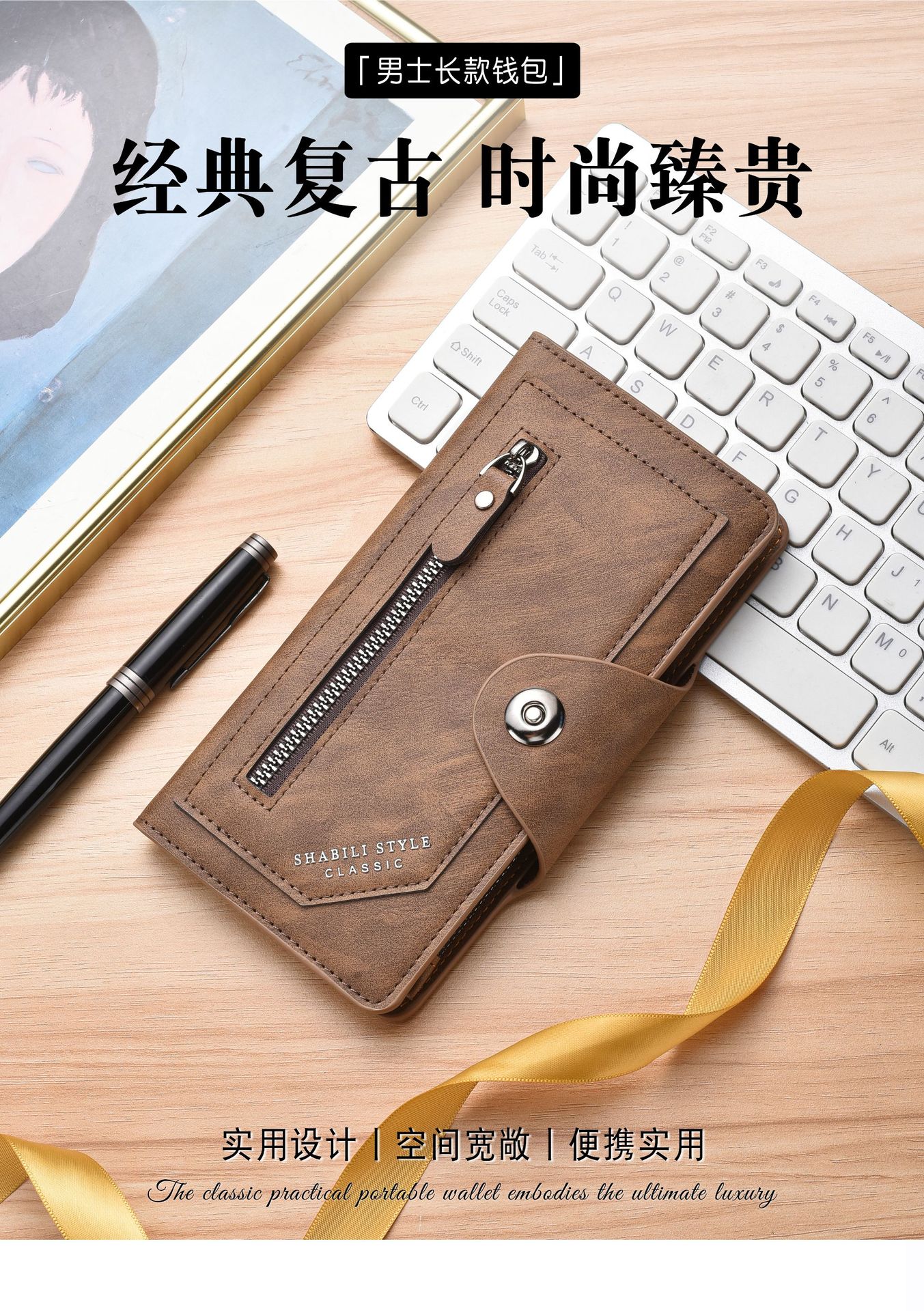 남성 롱 지갑 지퍼 대용량 초박형 레트로 새 클러치 백 카드 가방 남성 패션 클러치 백스토어 가기