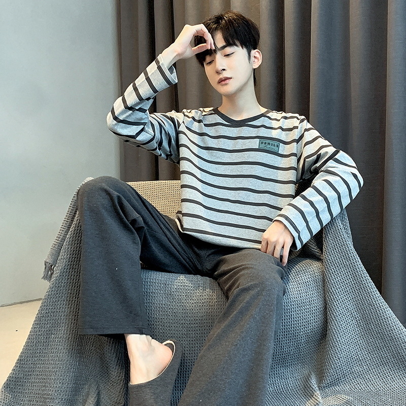 가을과 겨울 새로운 남자 잠옷 둥근 목 캐주얼 간단하고 관대 한 느슨한 고급 잠옷 남자의 집 옷 봄과 가을