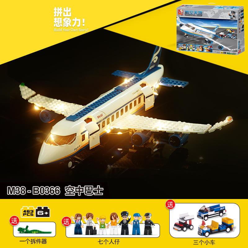 리틀 루반 B0366 어린이 교육 완구 에어 버스 조립 건물 블록 보이스 시티 여객기 선물