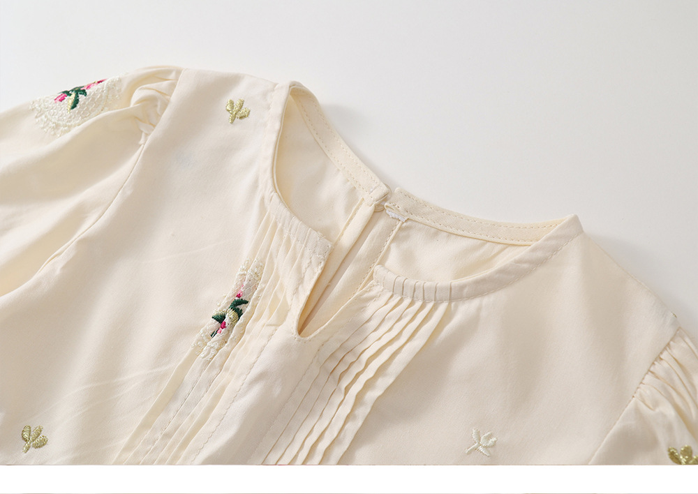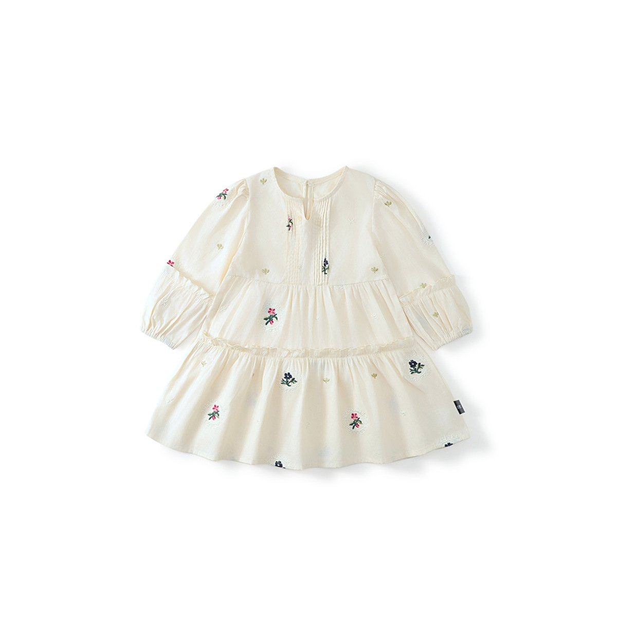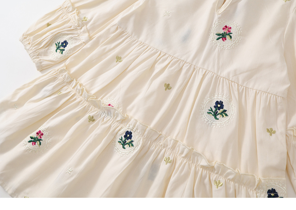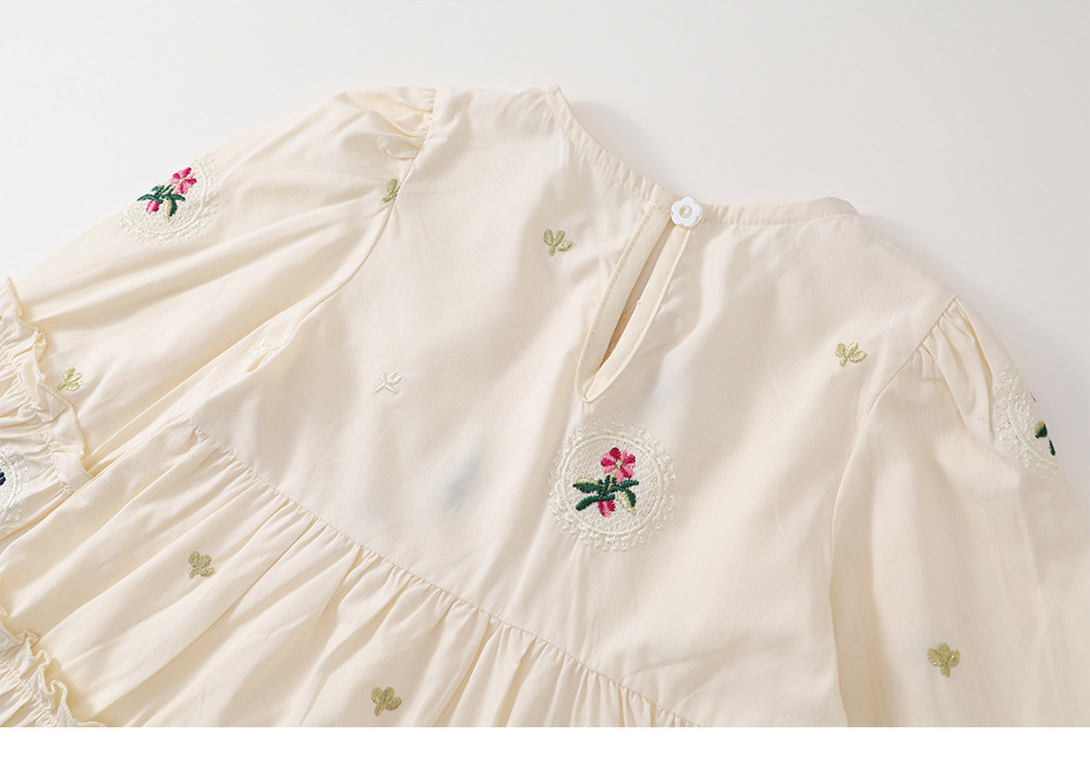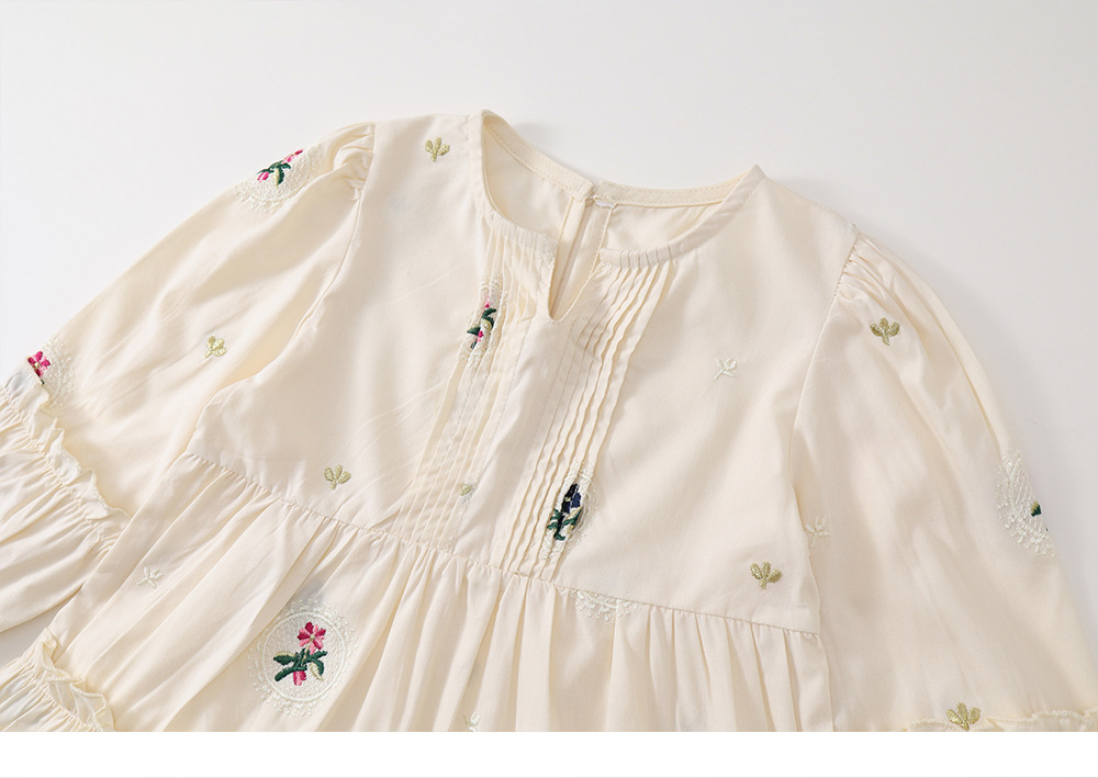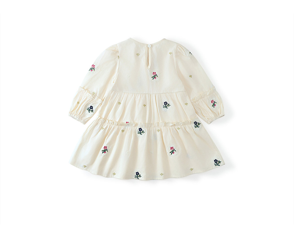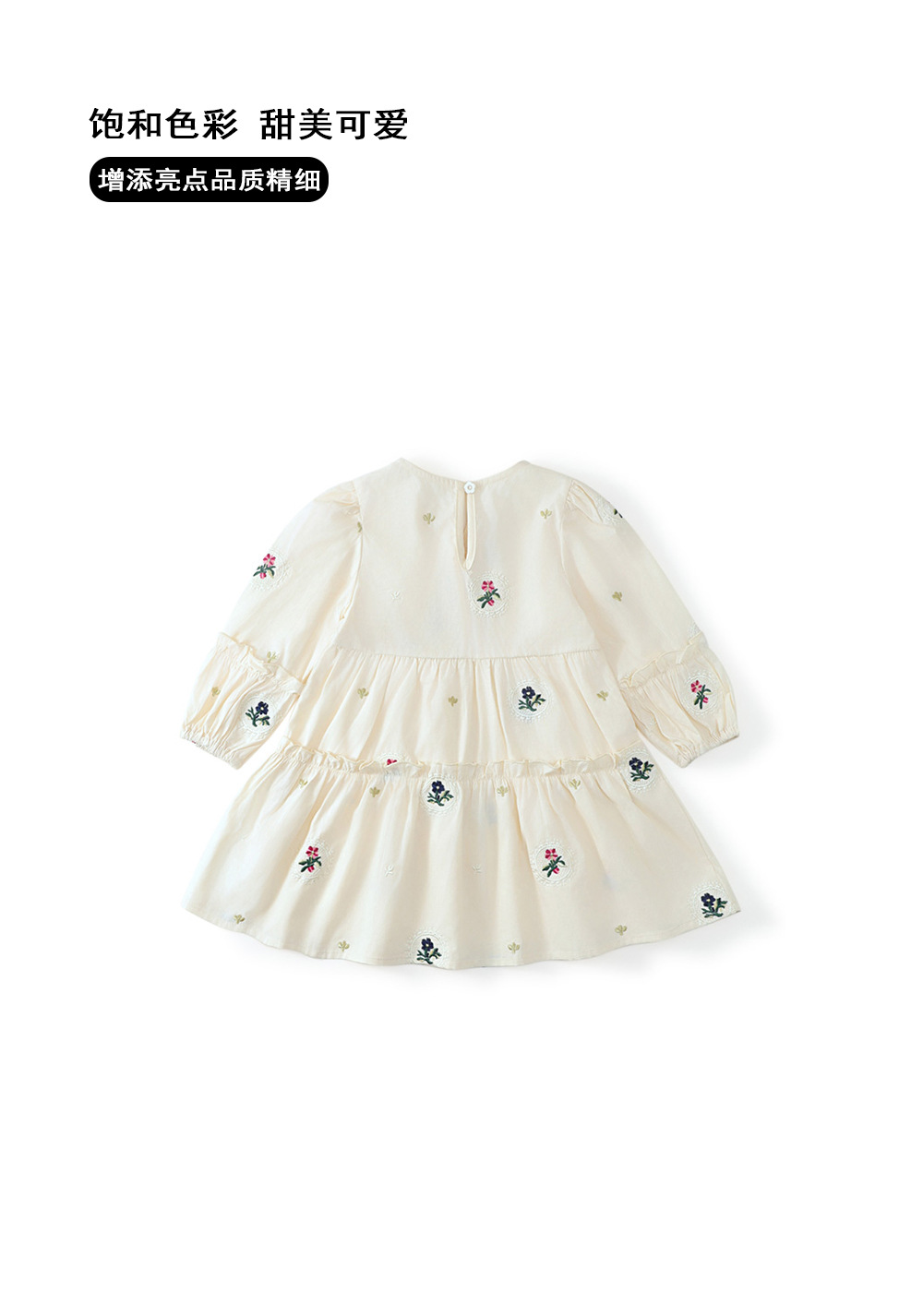 MDD 아동복 2024 가을 새로운 도착 어린이 치마 한국 스타일 서양식 공주 스커트 소녀의 자수 V 넥 원피스