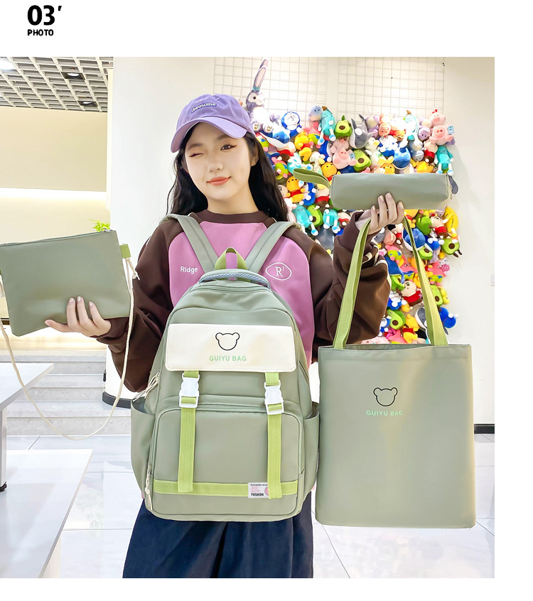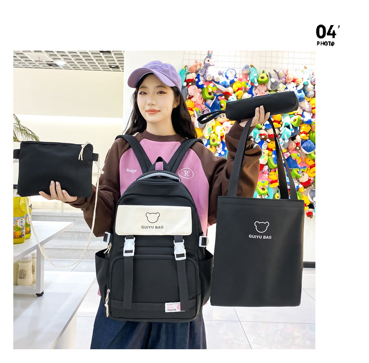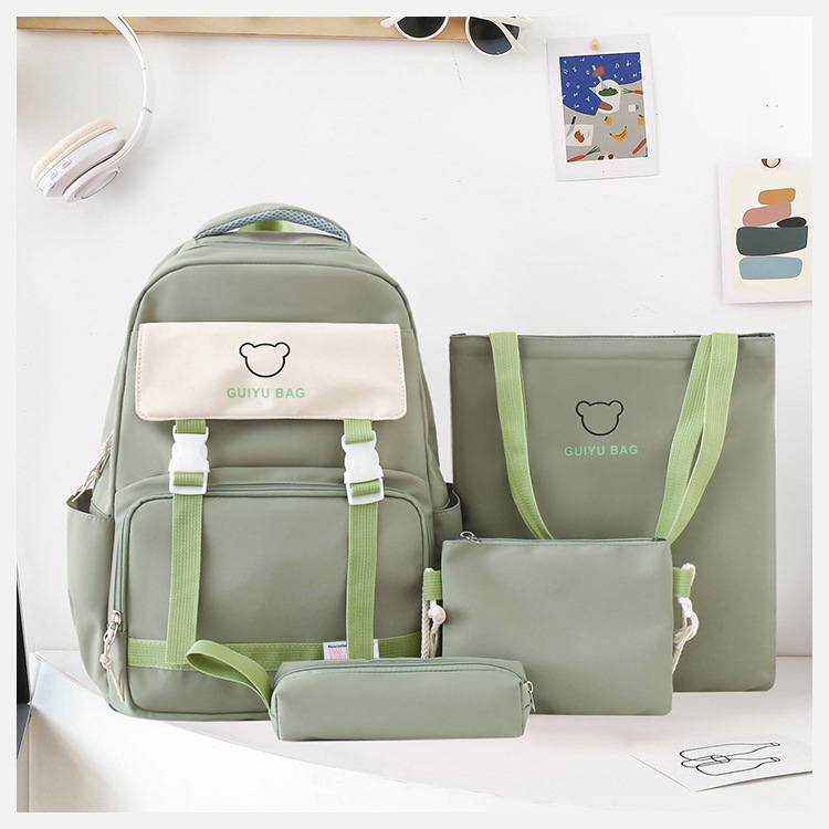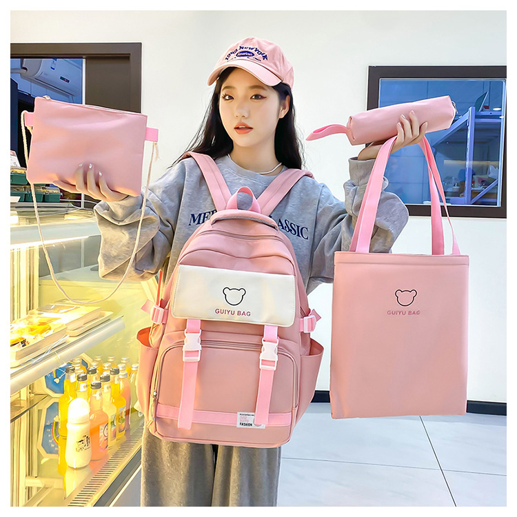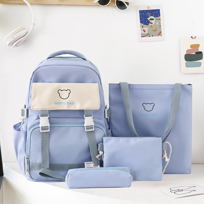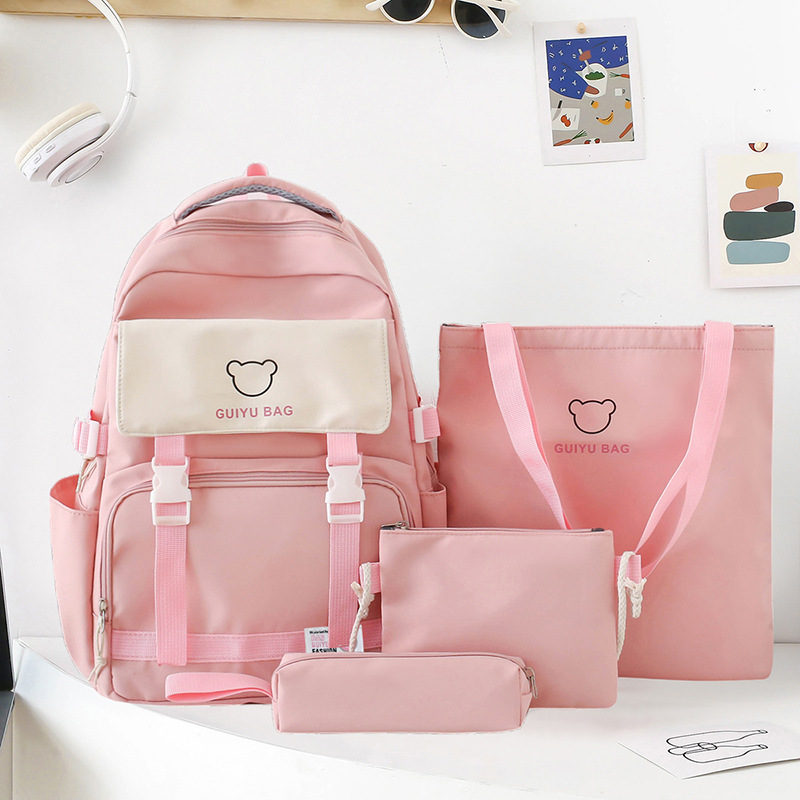 2024 백팩 한국식 초등학생 중학생 캠퍼스 스쿨백 중학생 대용량 배낭 여성 4 종 세트