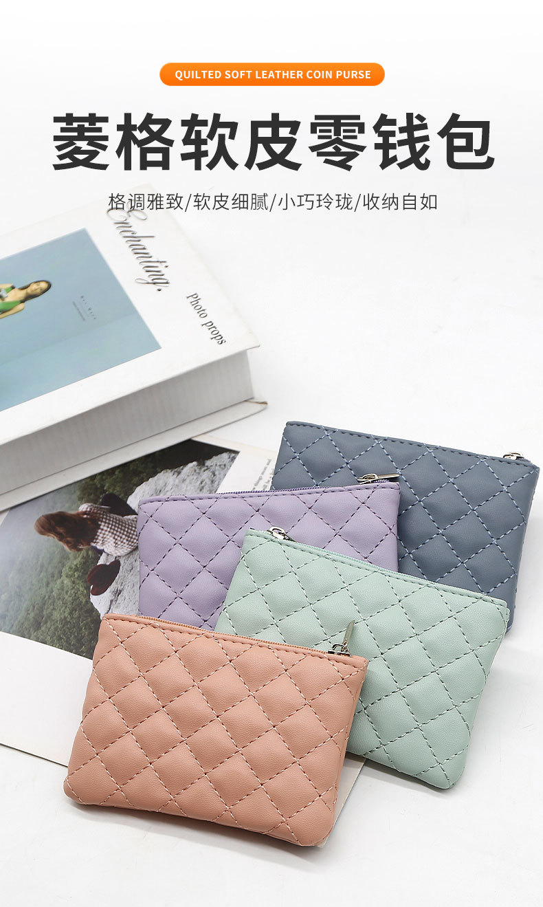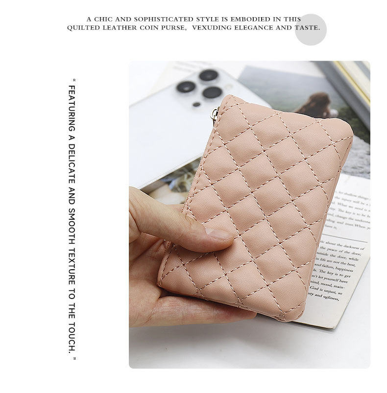 여성용 작은 가방 얇은 카드 커버가있는 다이아몬드 패턴 카드 가방 동전 지갑 3 대 1 여성 하이 엔드 센스 지갑