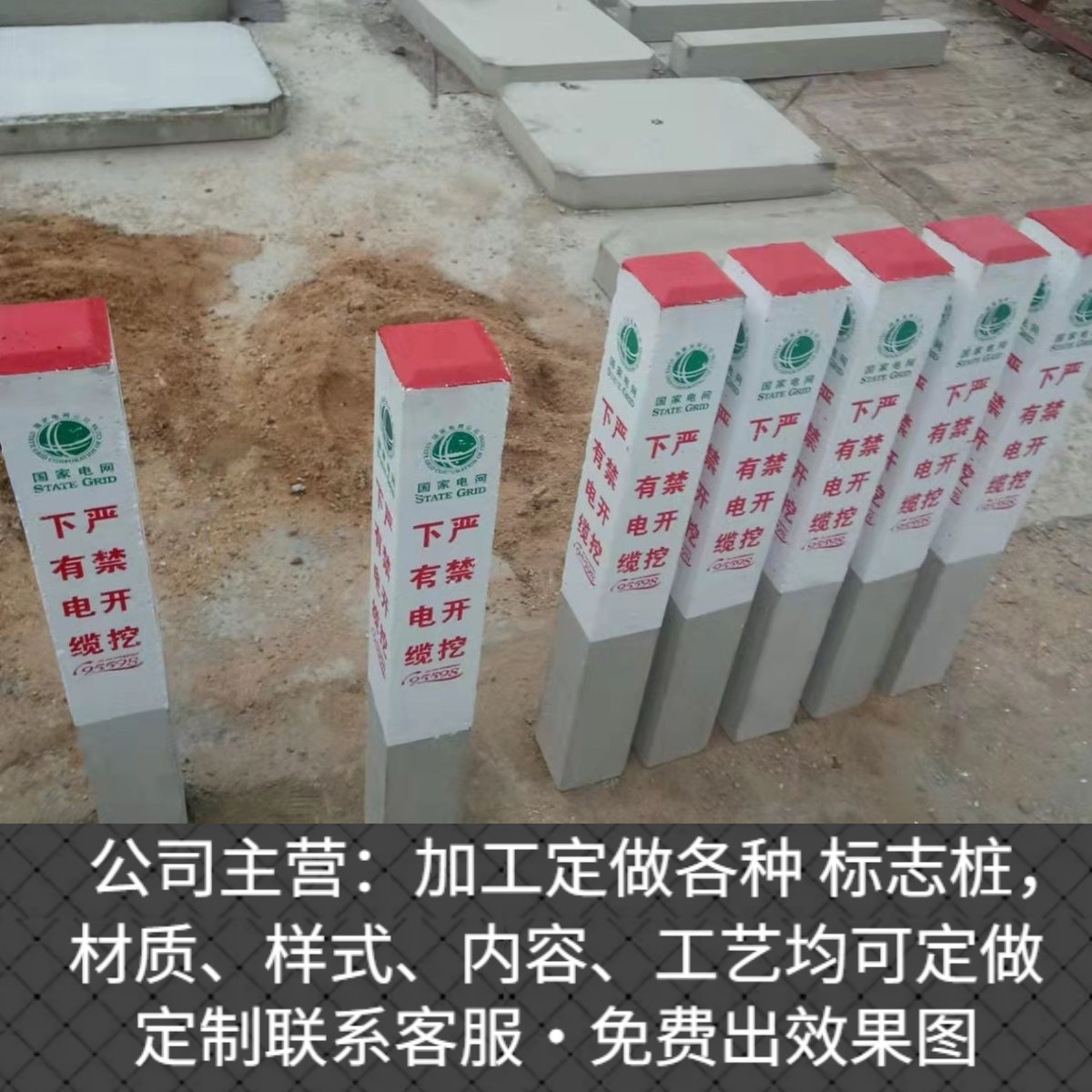 물 공급, 가스 및 석유 콘크리트, 경고 파일, 광 케이블 마킹, 100 미터 더미 경계 마커를위한 시멘트 마커 더미 아래에 케이블이 있습니다.스토어 가기