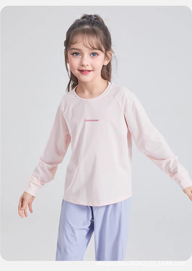 어린이 빠른 건조 긴팔 티셔츠 2024 가을 새 소녀 요가 훈련베이스 셔츠 최고 스포츠 세트