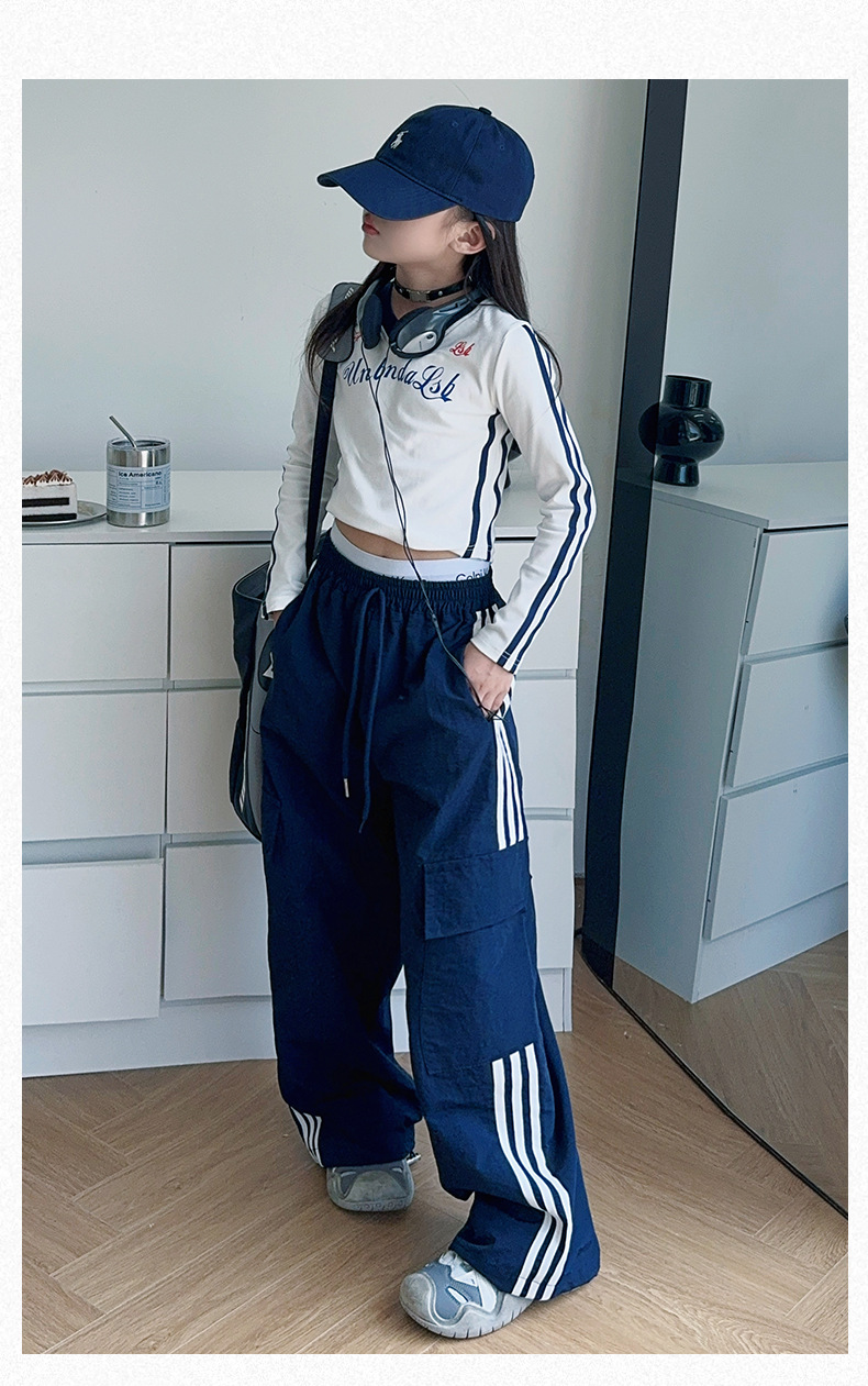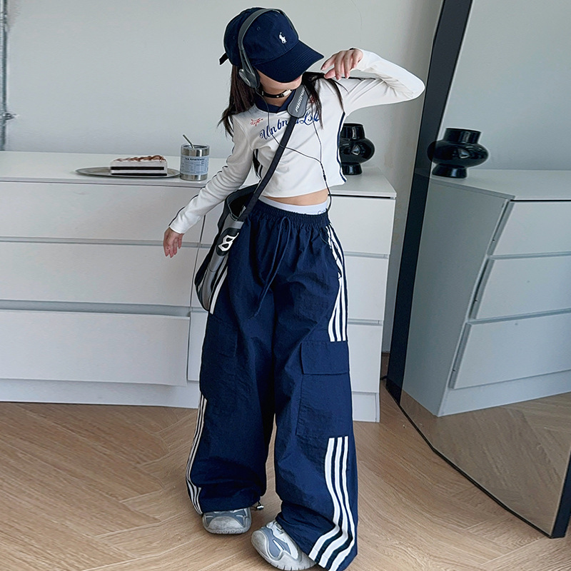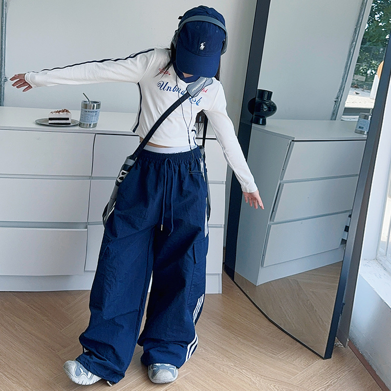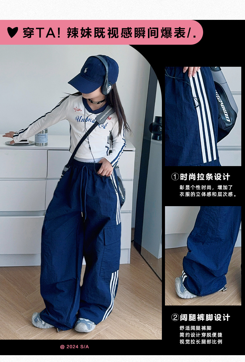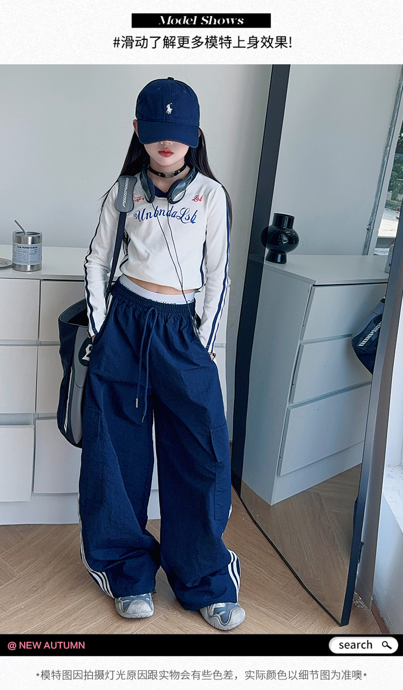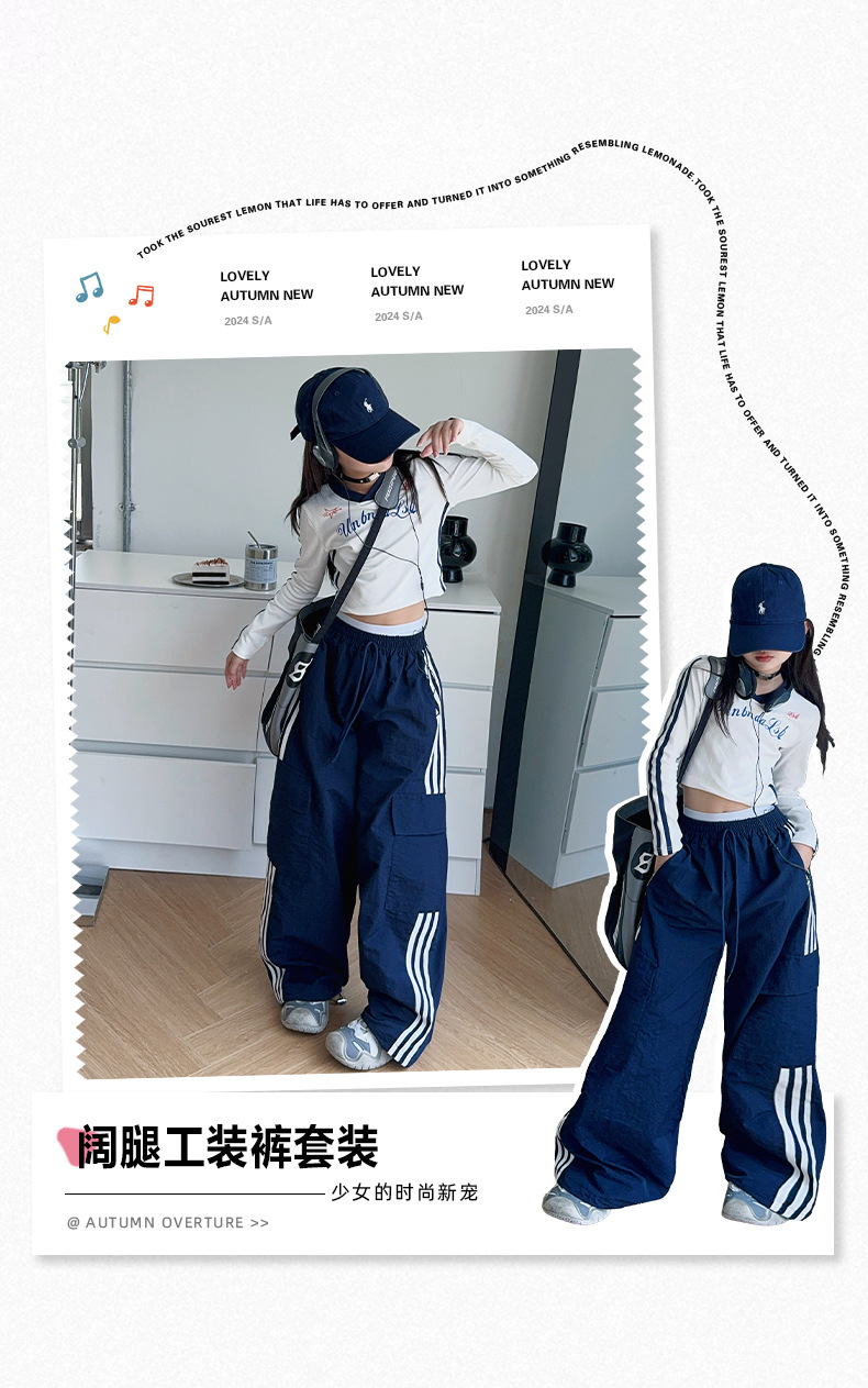소녀 가을 세트 2024 새로운 패션 소녀 중 큰 어린이 캐주얼 풀 크랙 팬츠 베이스 2 피스 타이드스토어 가기