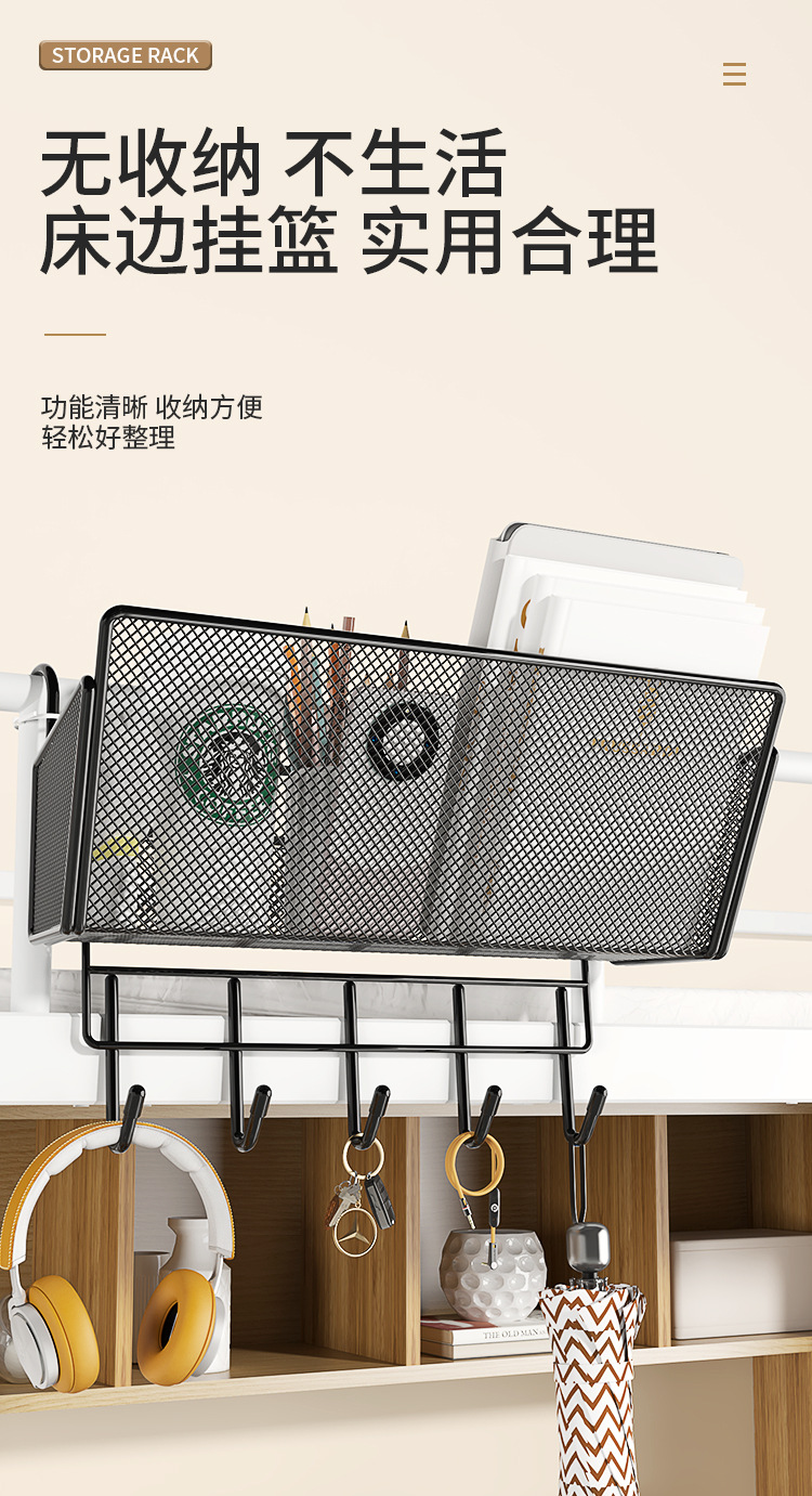 대학생 기숙사 좋은 것들 침대 옆 보관 랙 여성 기숙사 보관 아티팩트 상부 침대 보관 랙 침대 옆 교수형 바구니