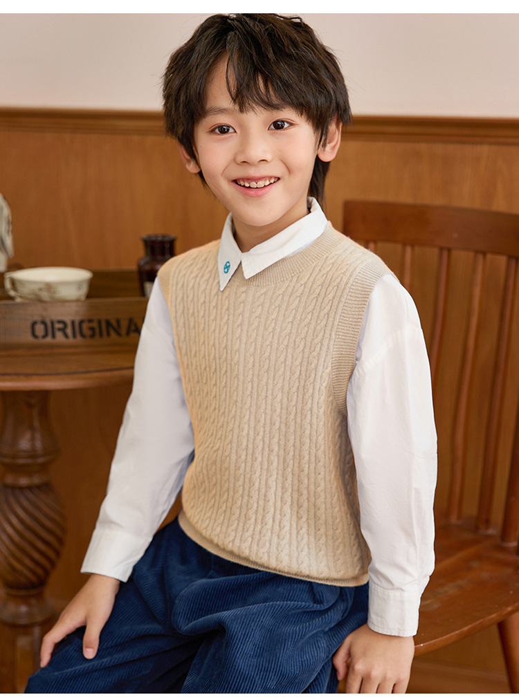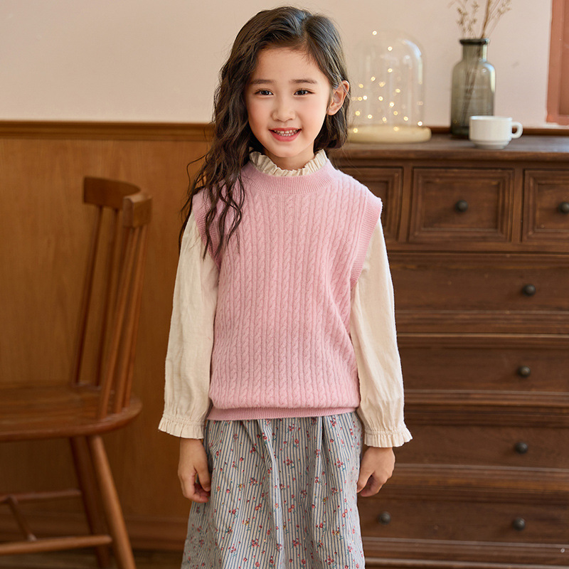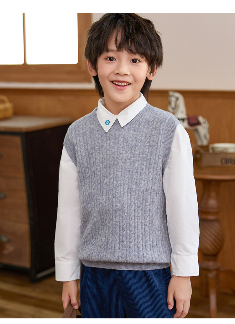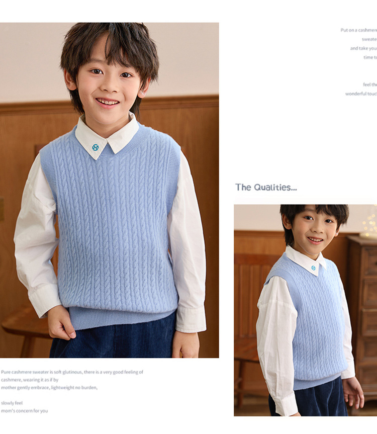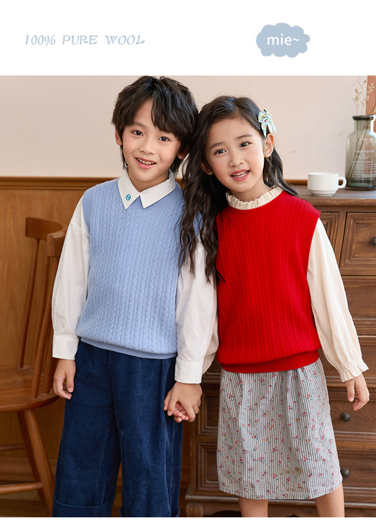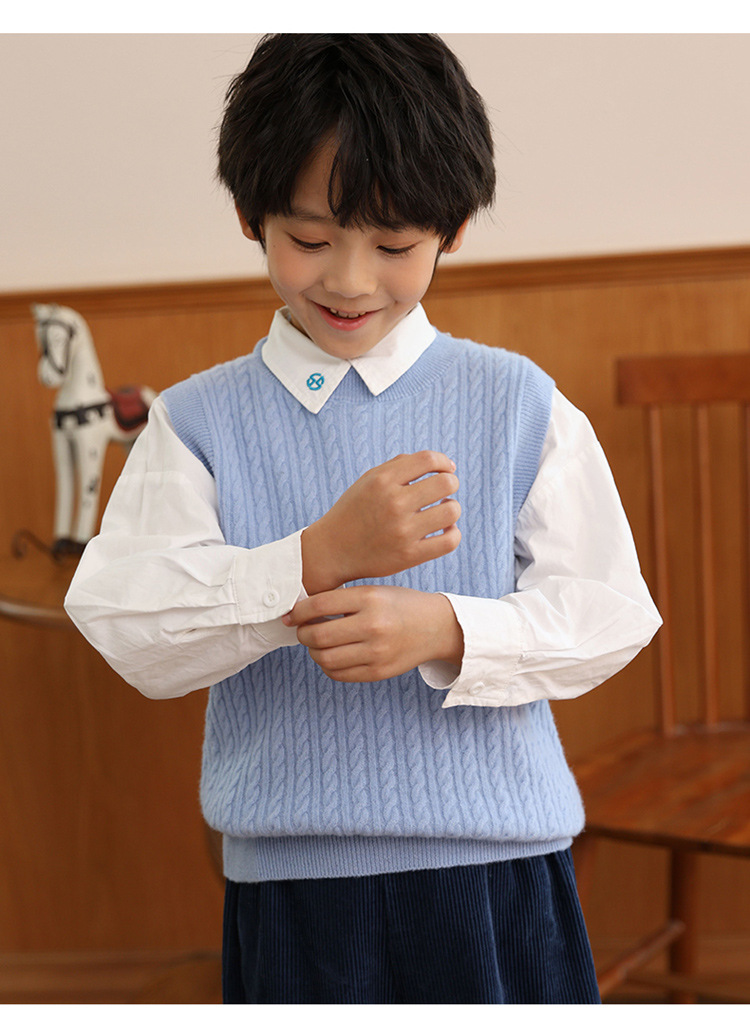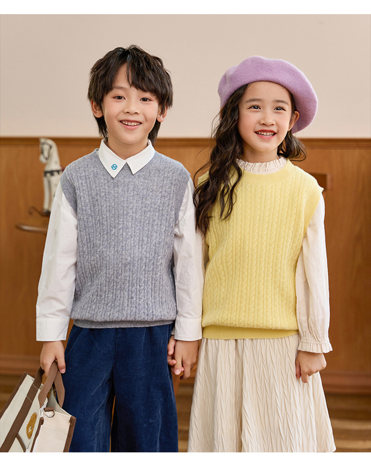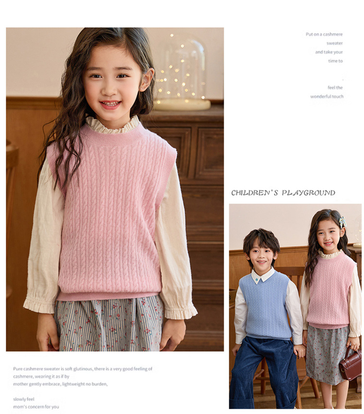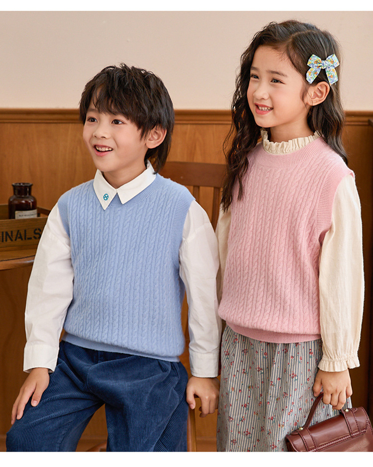 24 가을 겨울 새 울 조끼 어린이 트위스트 니트 캐시미어 조끼 소년 소녀 중년 어린이스토어 가기