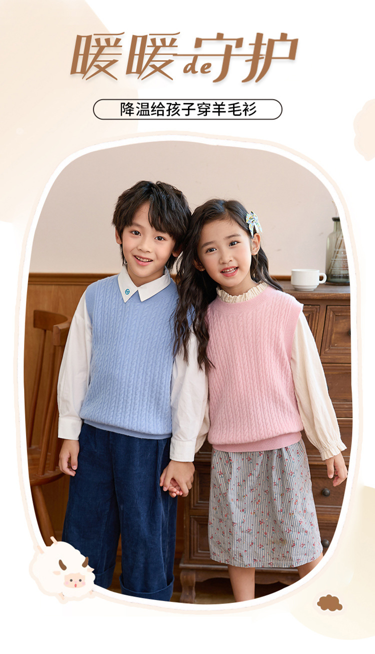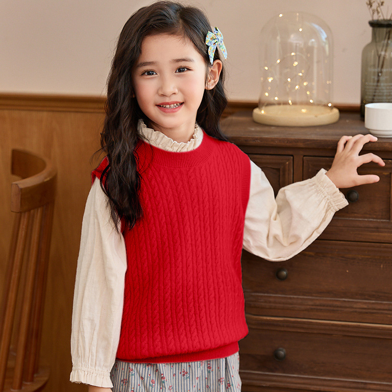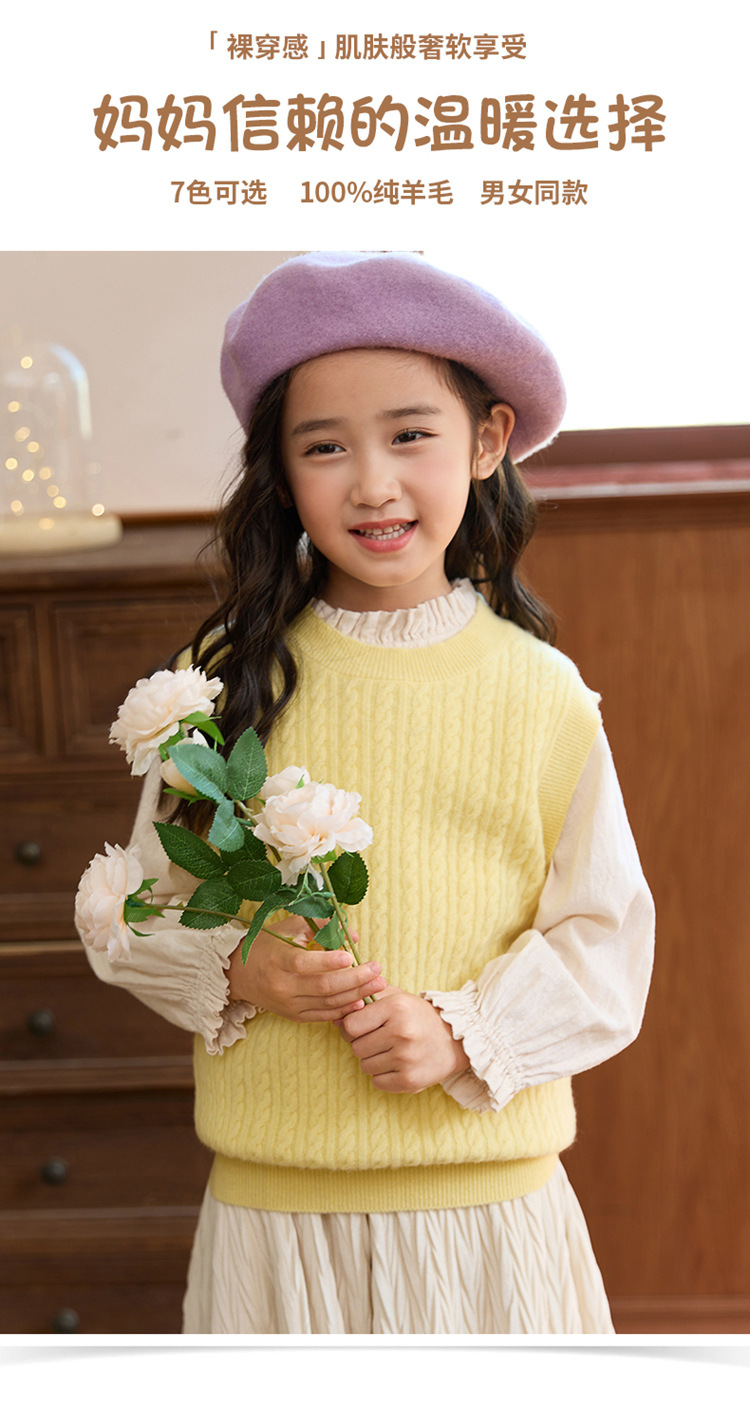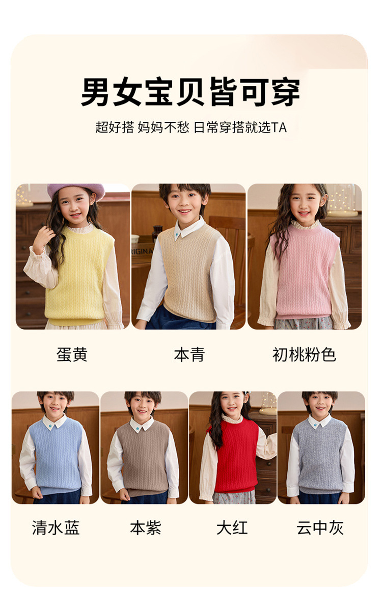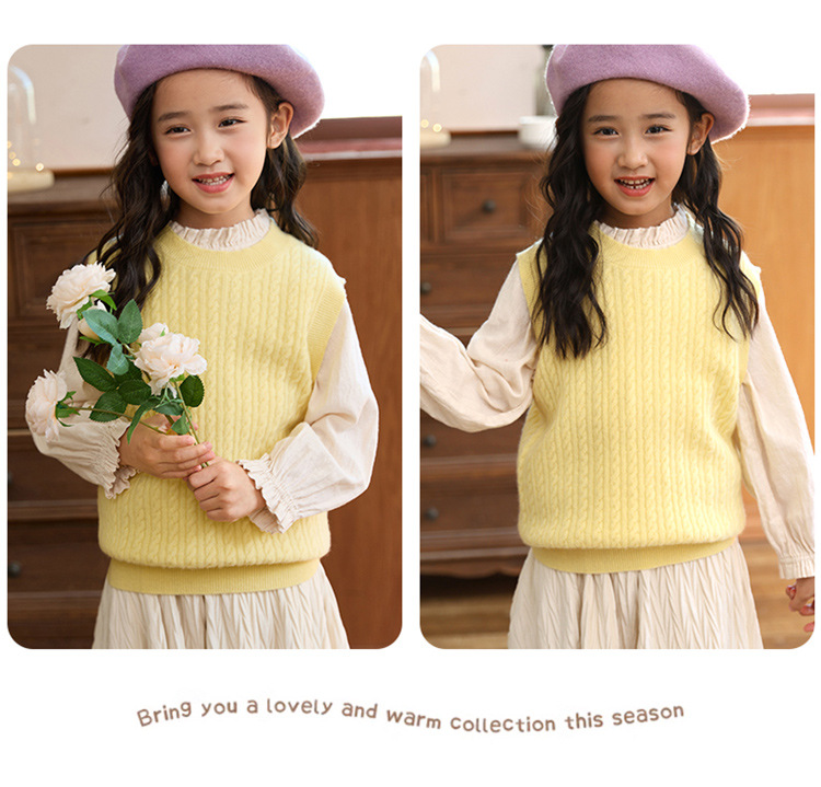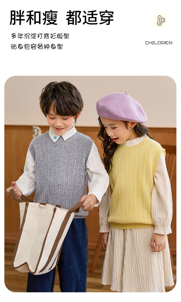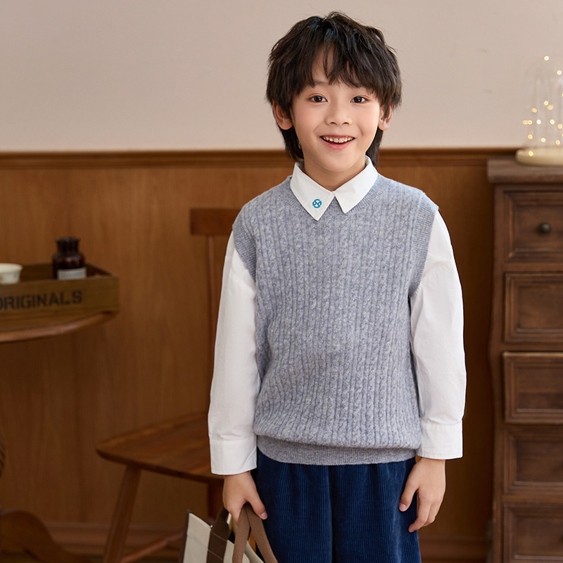 24 가을 겨울 새 울 조끼 어린이 트위스트 니트 캐시미어 조끼 소년 소녀 중년 어린이스토어 가기