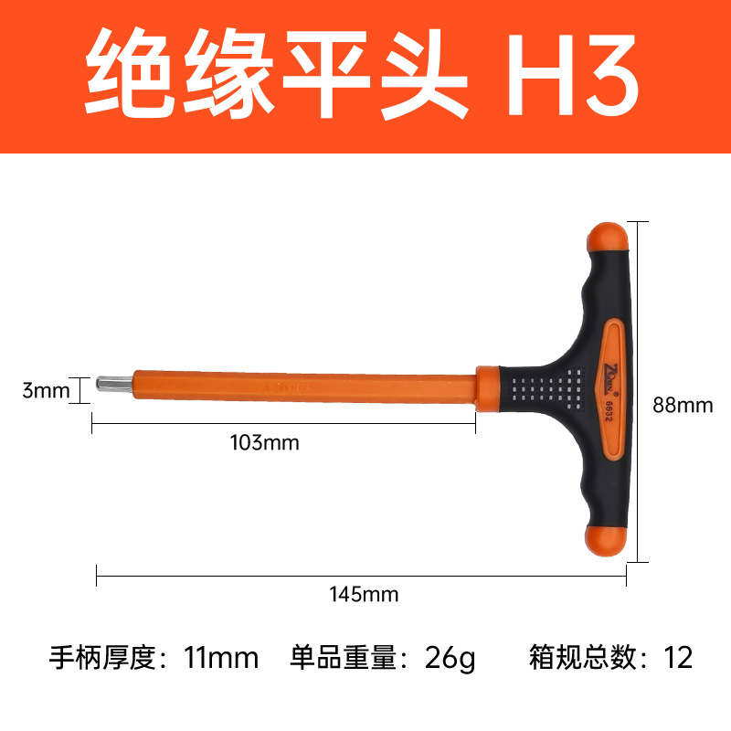 T 형 절연 앨런 렌치 플랫 헤드 볼 헤드 3 색 미끄럼 방지 핸들 확장로드 전기 기술자 앨런 드라이버