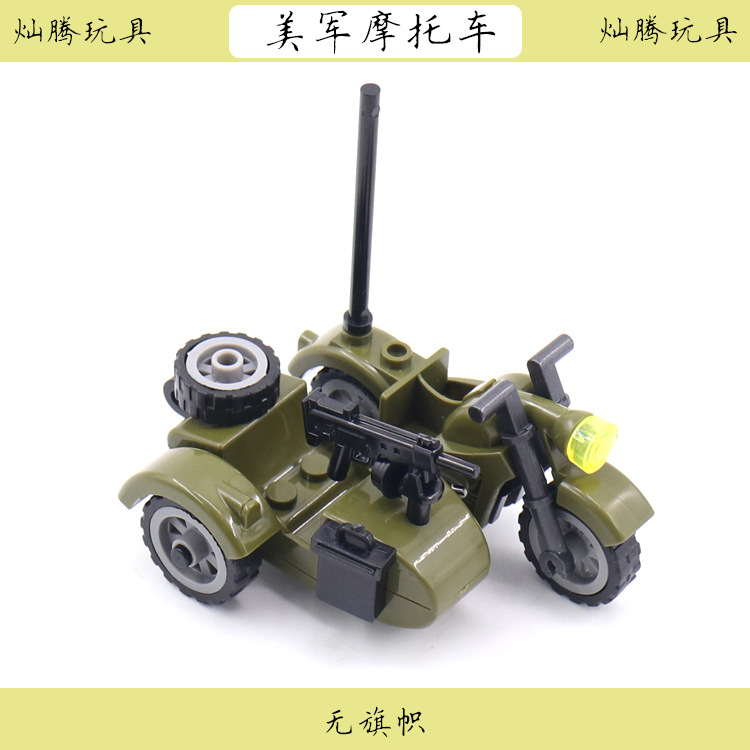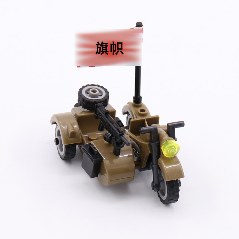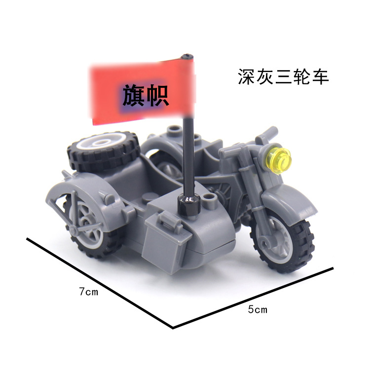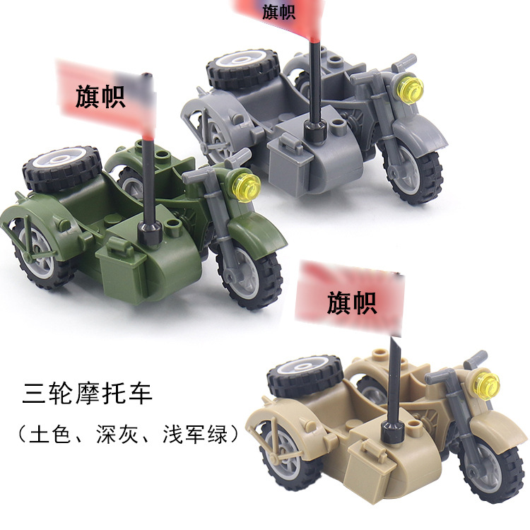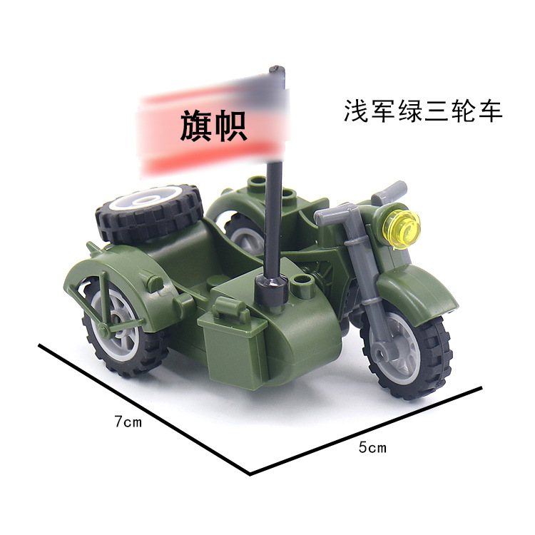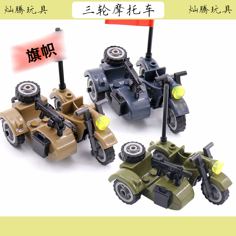产品为军事积木配件三轮摩托车,单只出售