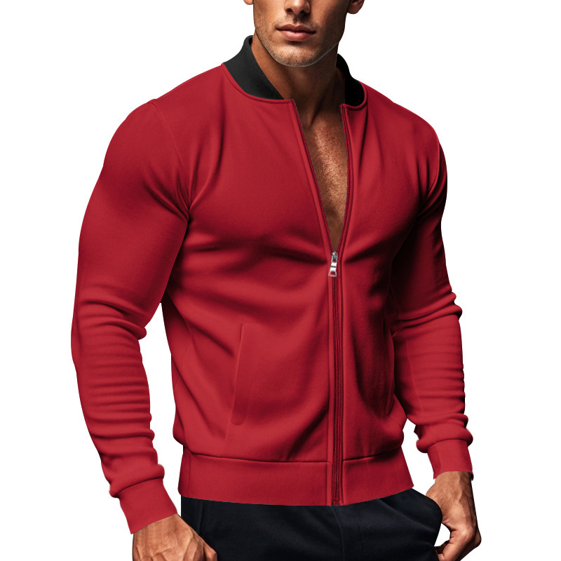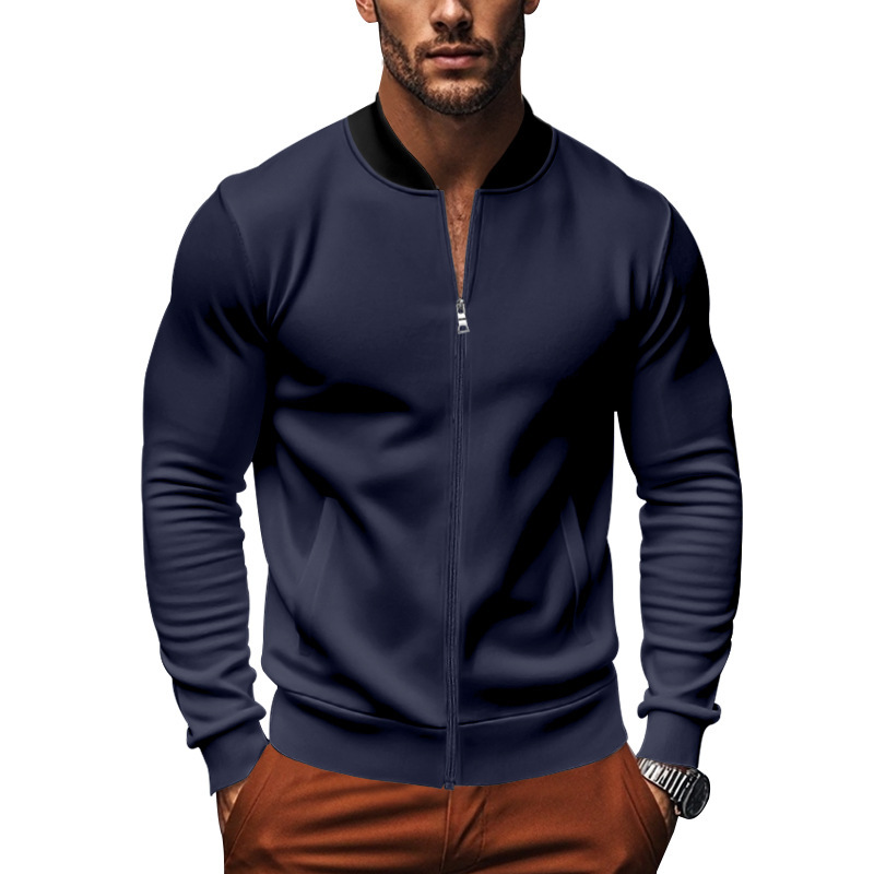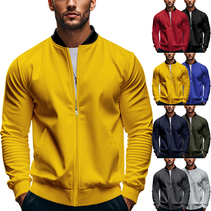 2024 년 새로운 국경 가을 남성 스탠드 칼라 재킷 단색 스포츠 캐주얼 지퍼 긴소매 최고 남성 코트