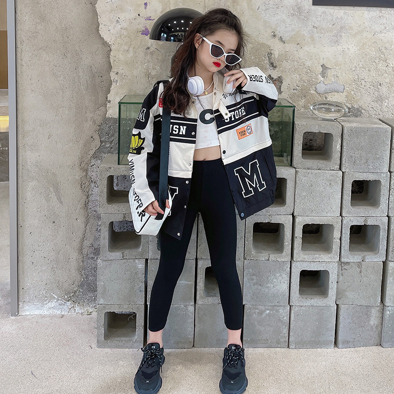 순 붉은 봄과 가을 소녀 오토바이 재킷 도매 2024 새로운 큰 어린이 서양식 캐주얼 짧은 코트 재킷스토어 가기
