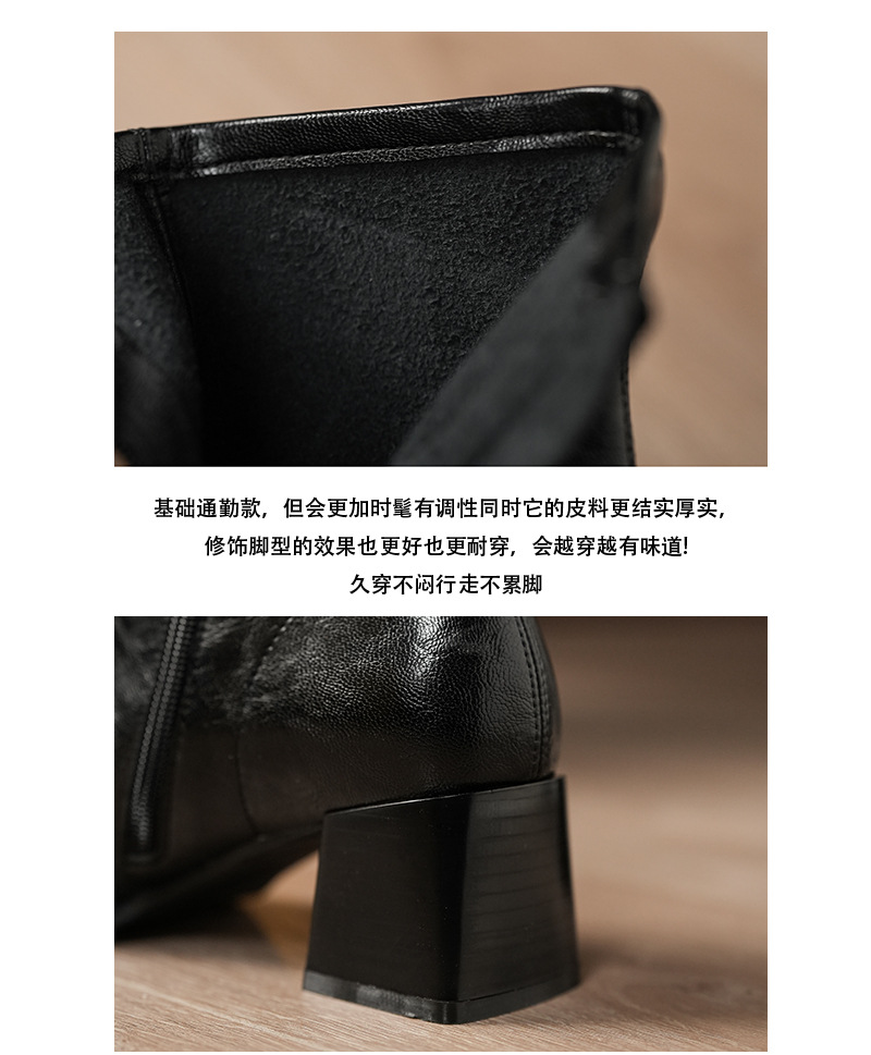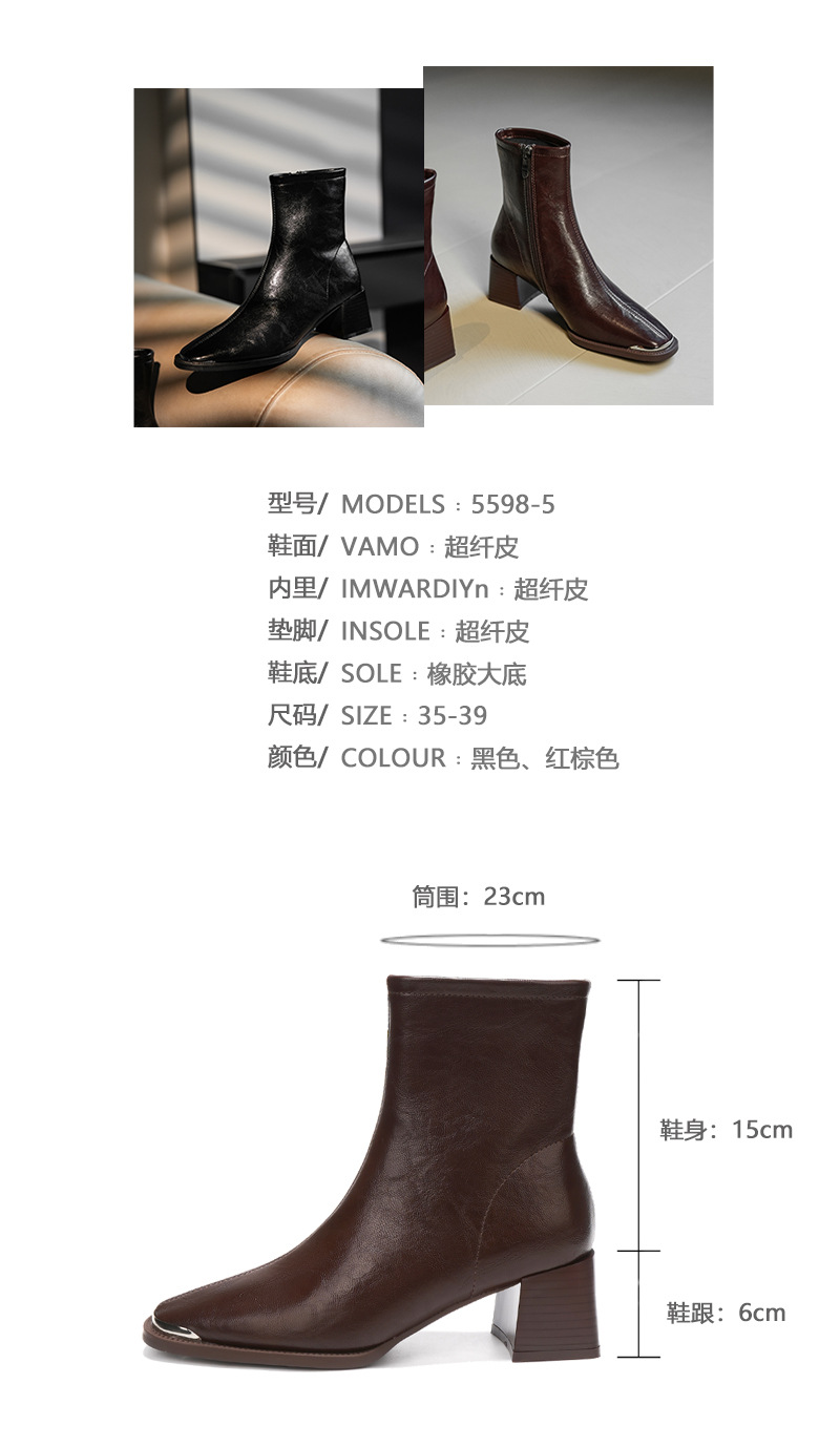 5598-5 자이언트웨어 ~ 작은 아이언 헤드 두꺼운 힐 마틴 부츠 여성용 하이힐 스퀘어 헤드 쇼트 부츠 슬림 소프트 가죽 부츠
