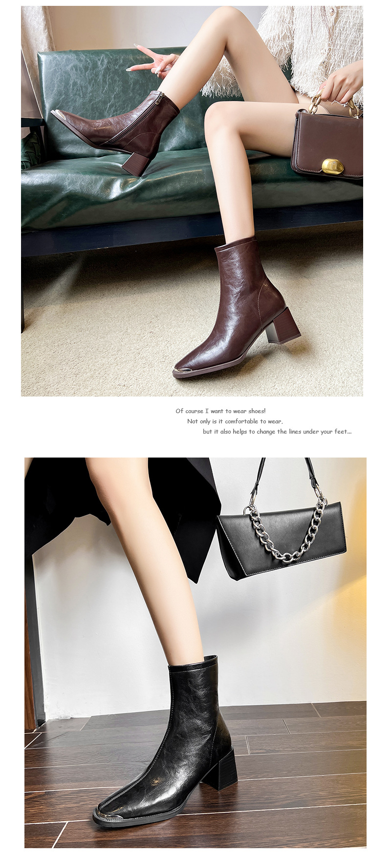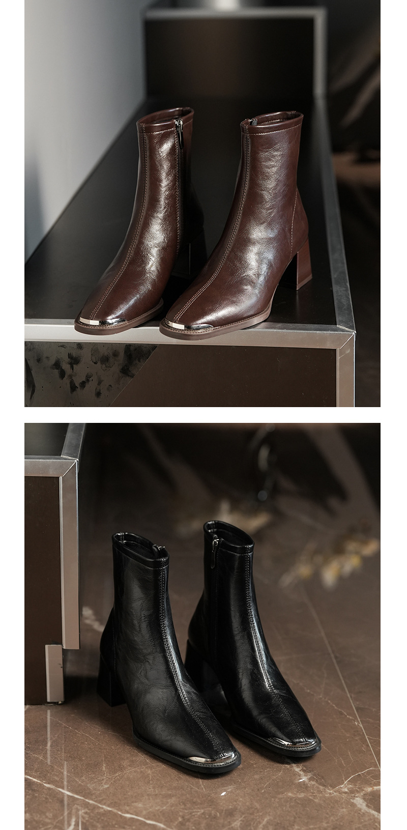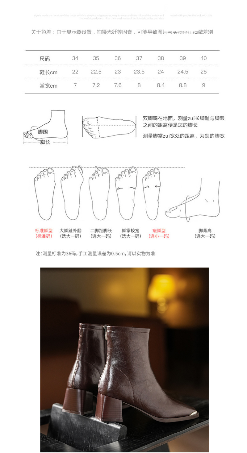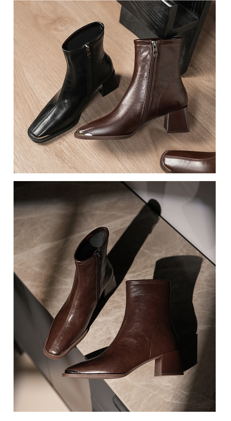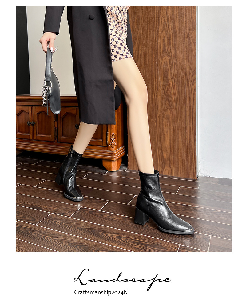 5598-5 자이언트웨어 ~ 작은 아이언 헤드 두꺼운 힐 마틴 부츠 여성용 하이힐 스퀘어 헤드 쇼트 부츠 슬림 소프트 가죽 부츠스토어 가기