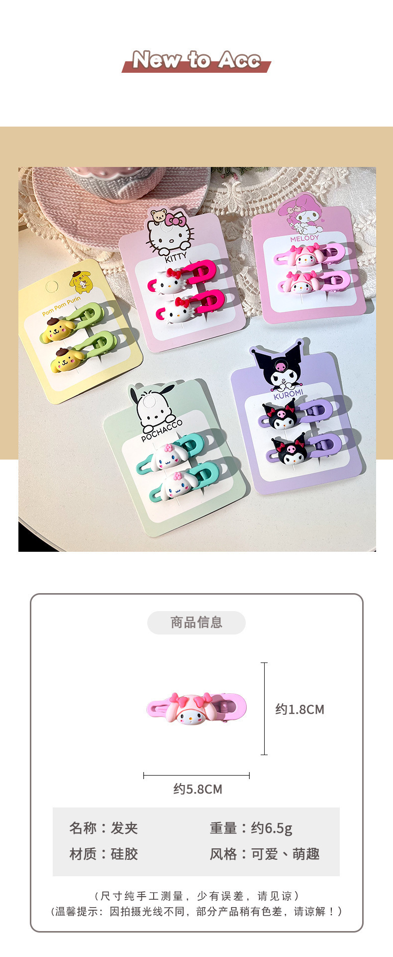 산리오 덕빌 클립 어린이 헤어 클립 만화 귀여운 소녀 헤어 클립 소녀의 하트 머리 머리 머리 반바지 클립 헤어 액세서리