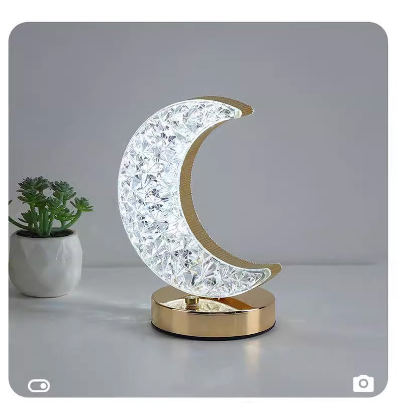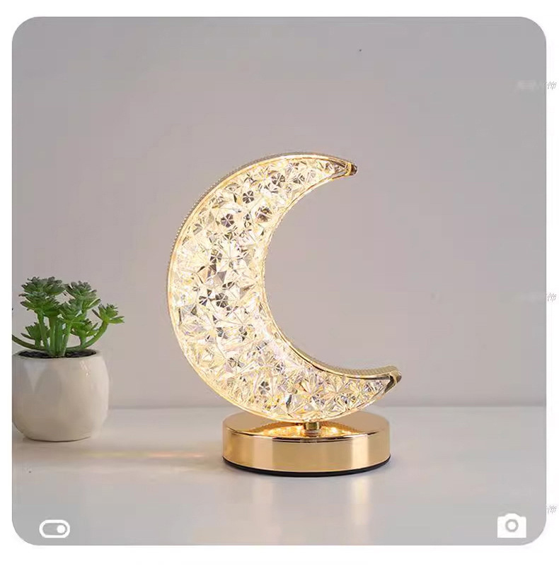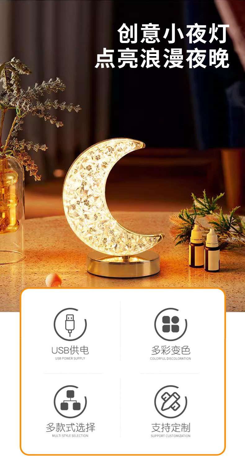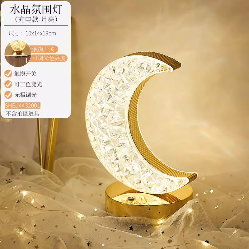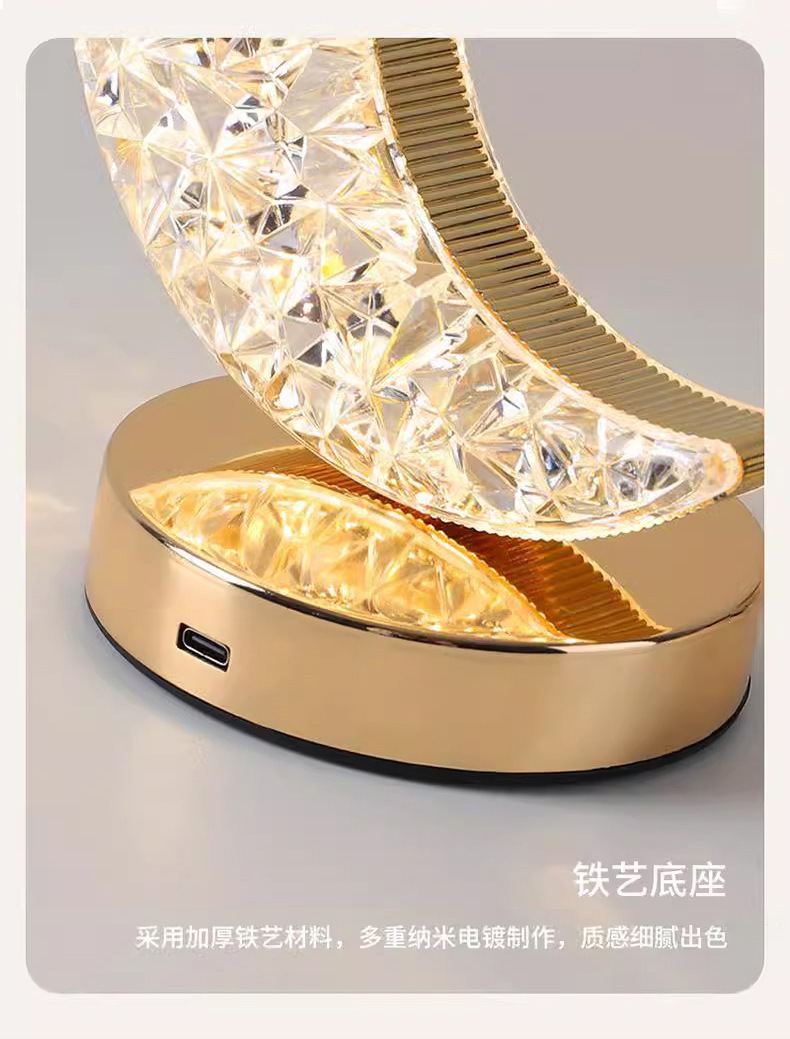 月亮水晶装饰台灯跨境创意浪漫卧室床头高级美感氛围灯USB小夜灯lap light