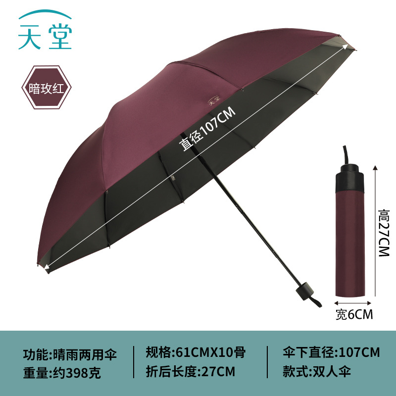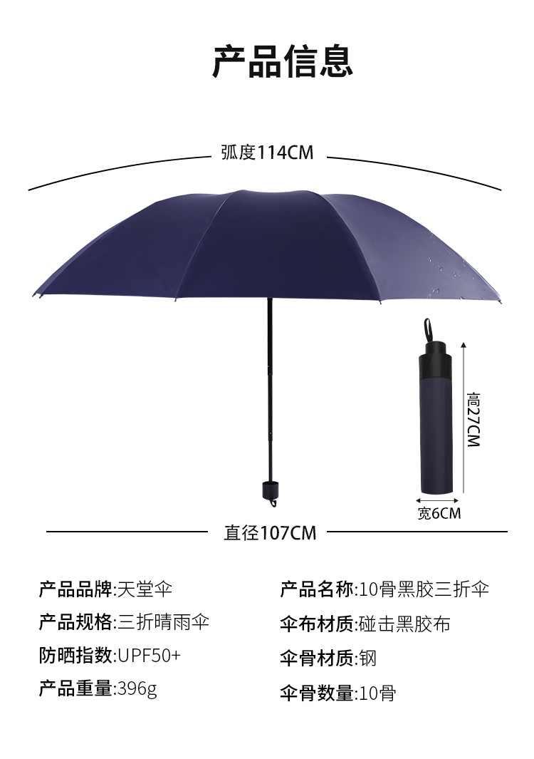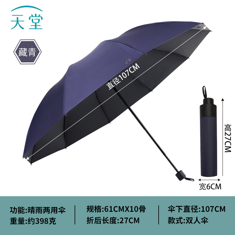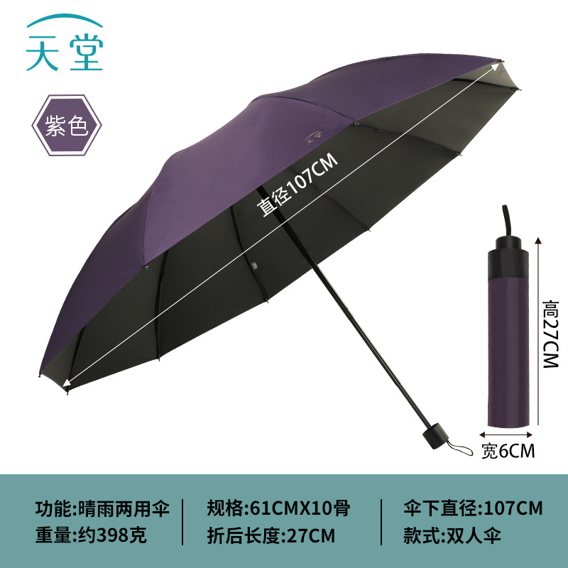정품 파라다이스 우산 도매 10 뼈 검은 접착제 큰 우산 태양 및 비 보호 이중 사용 우산 인쇄 로고 광고 우산스토어 가기