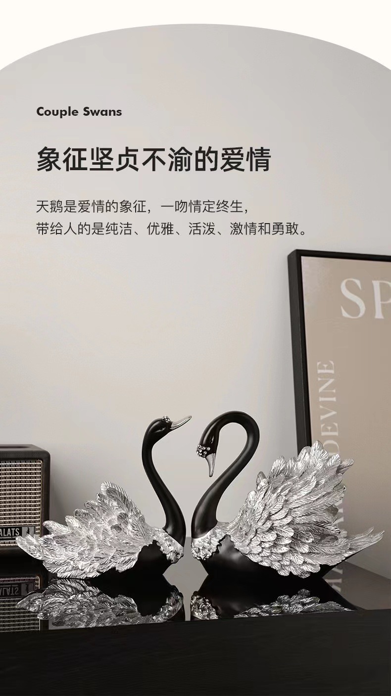 轻奢客厅情侣天鹅摆件高级感家居酒柜电视柜装饰品