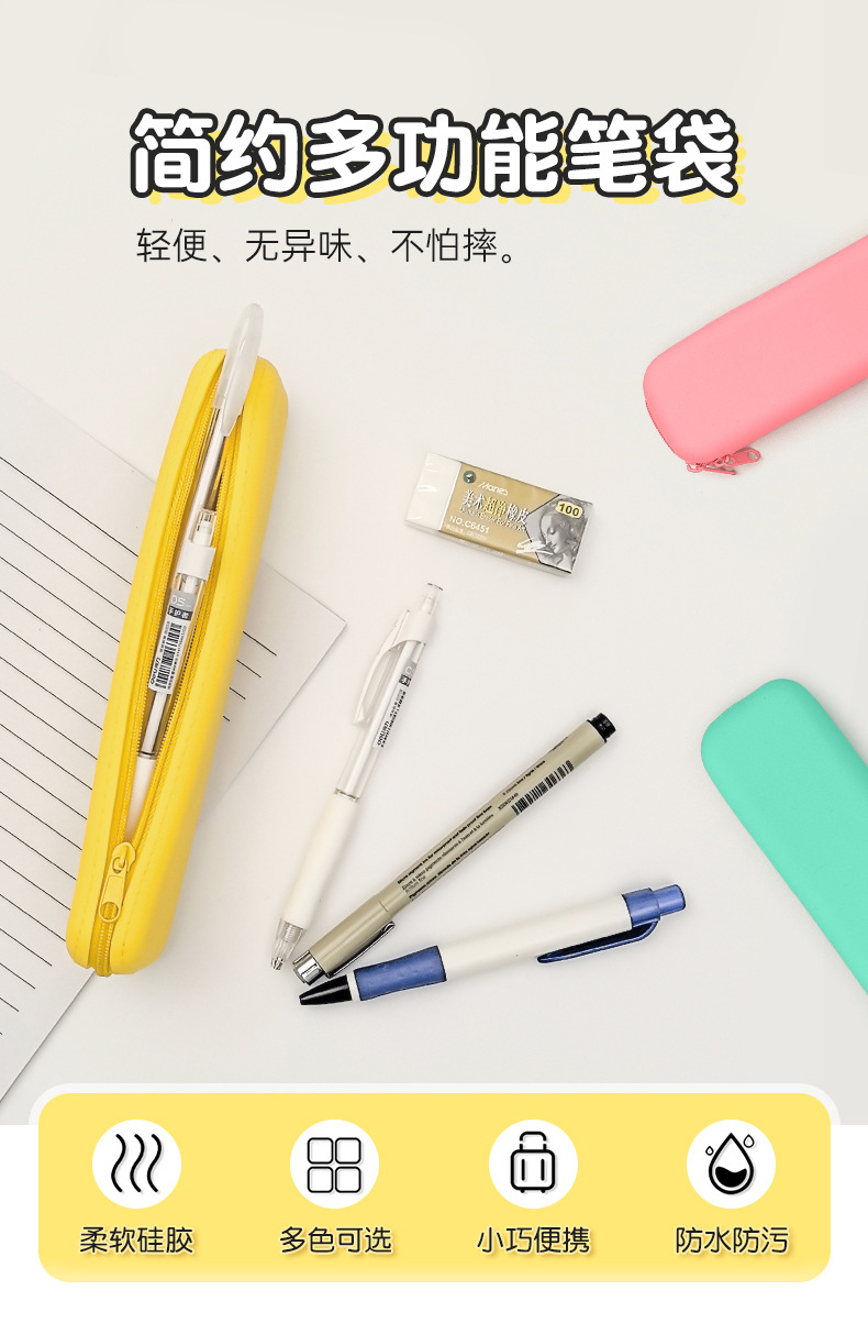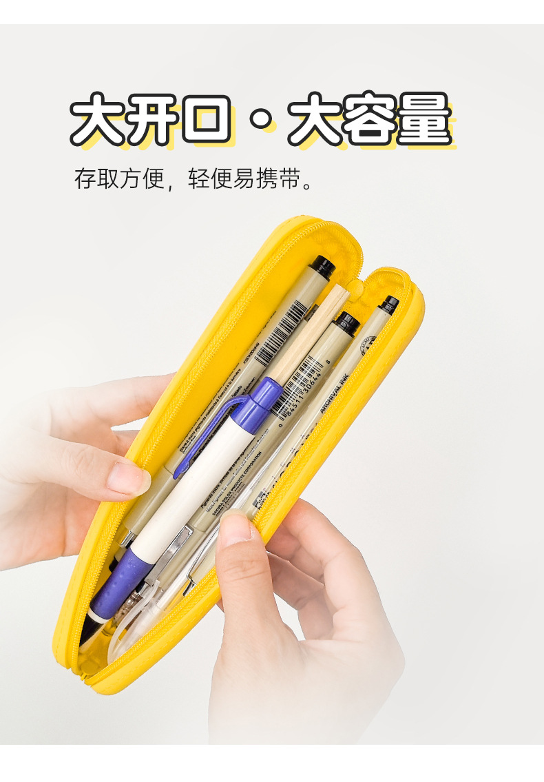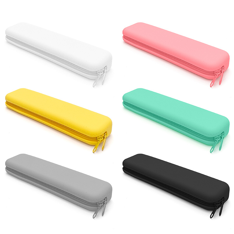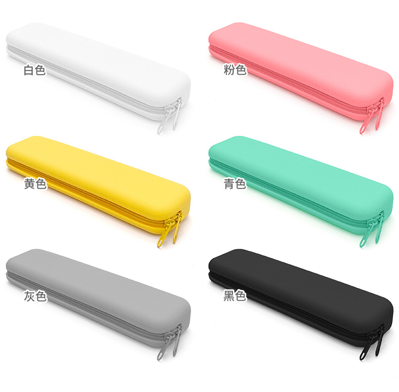 창조적 인 학생 흑백 직사각형 실리콘 질감 연필 케이스 대용량 사무실 학습 문구 저장 용품