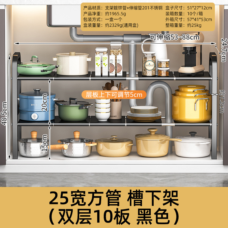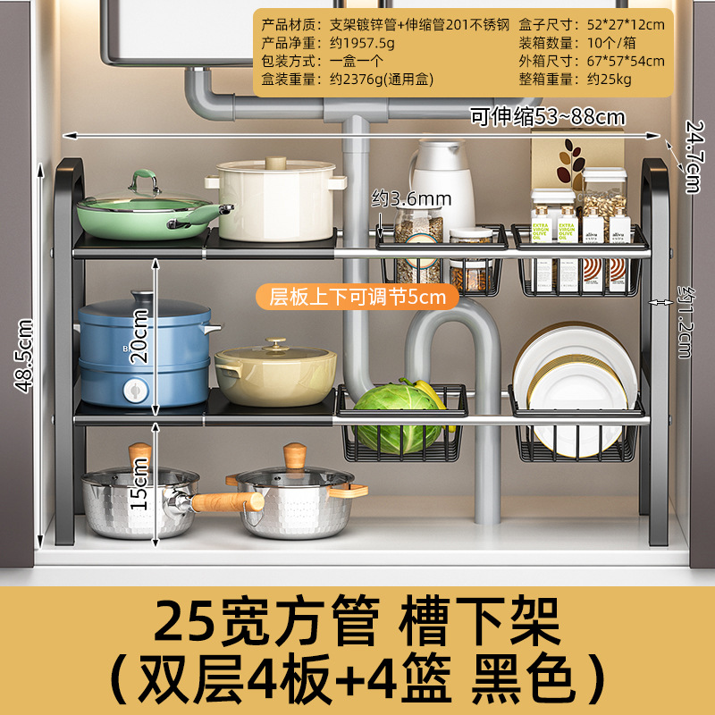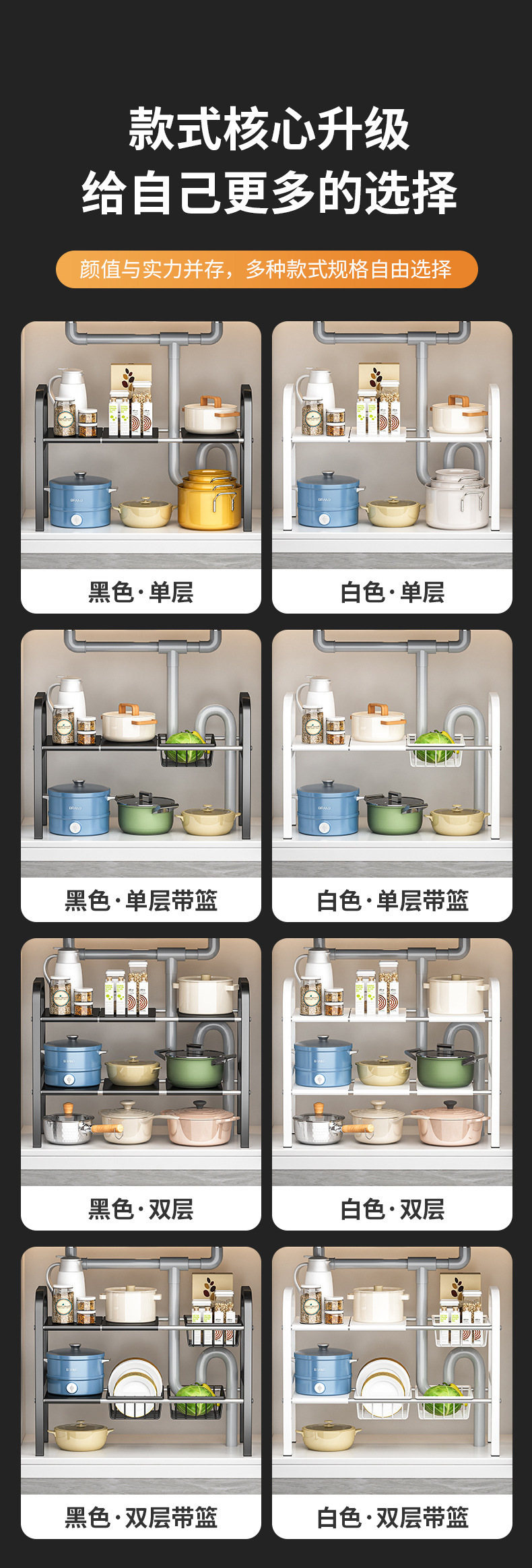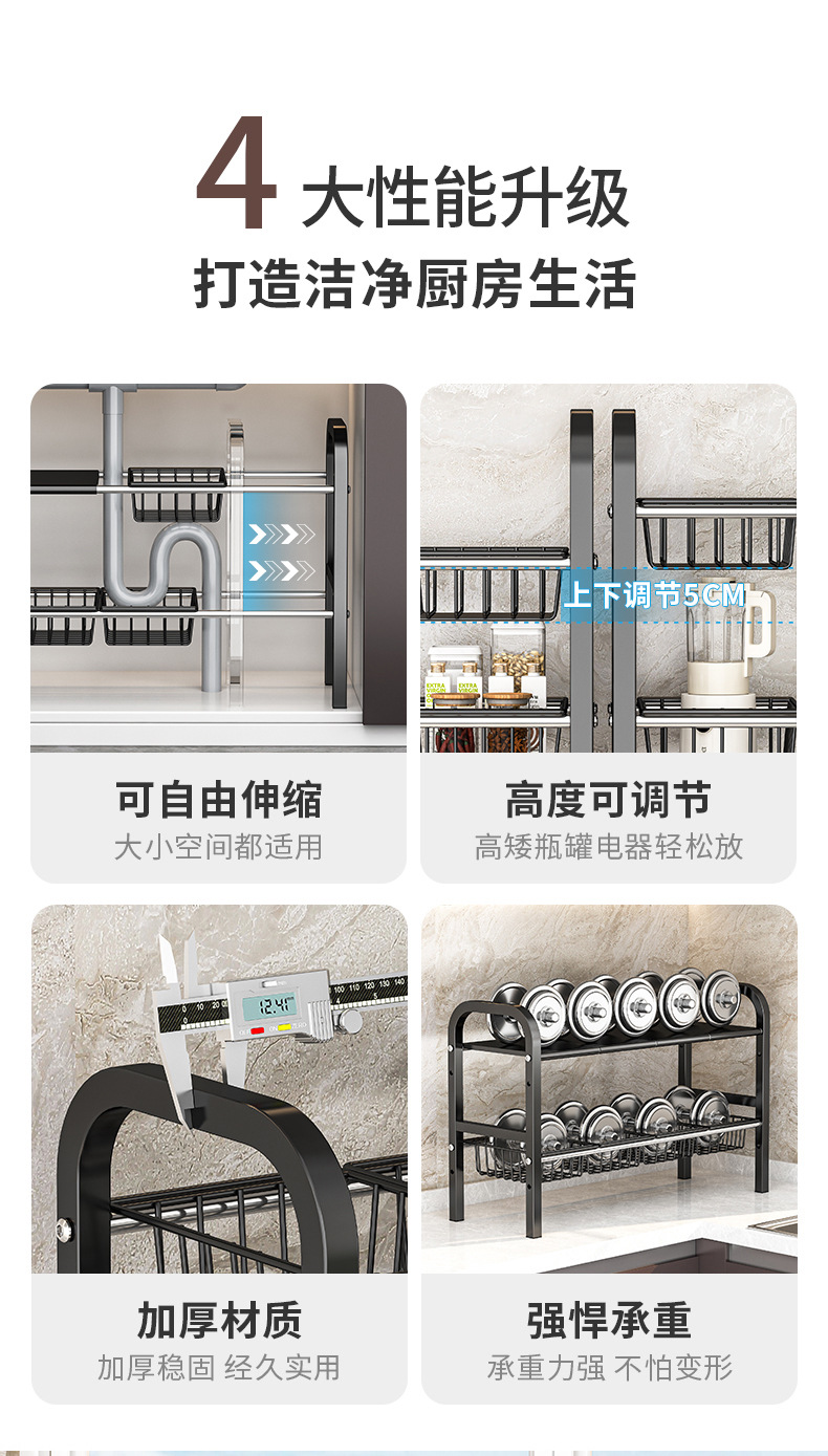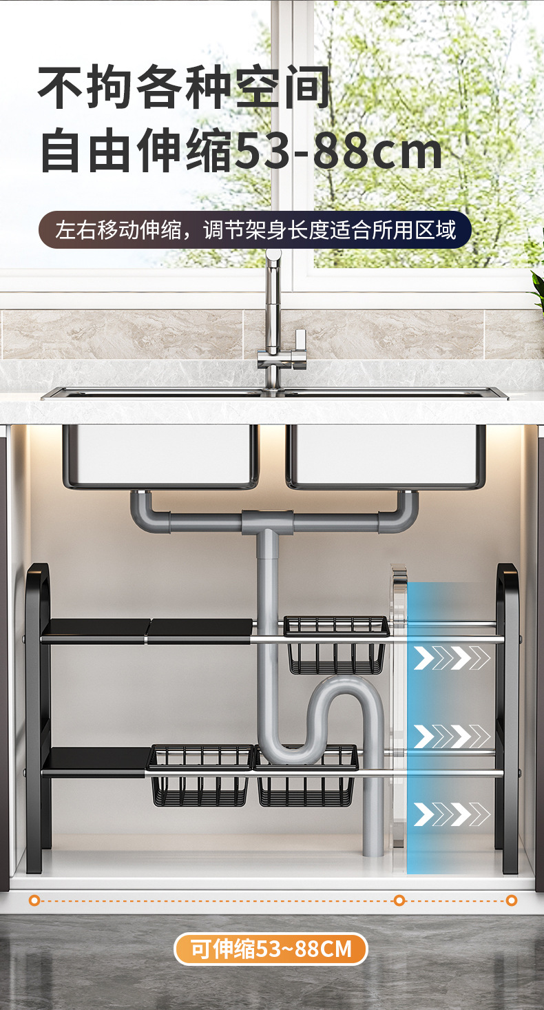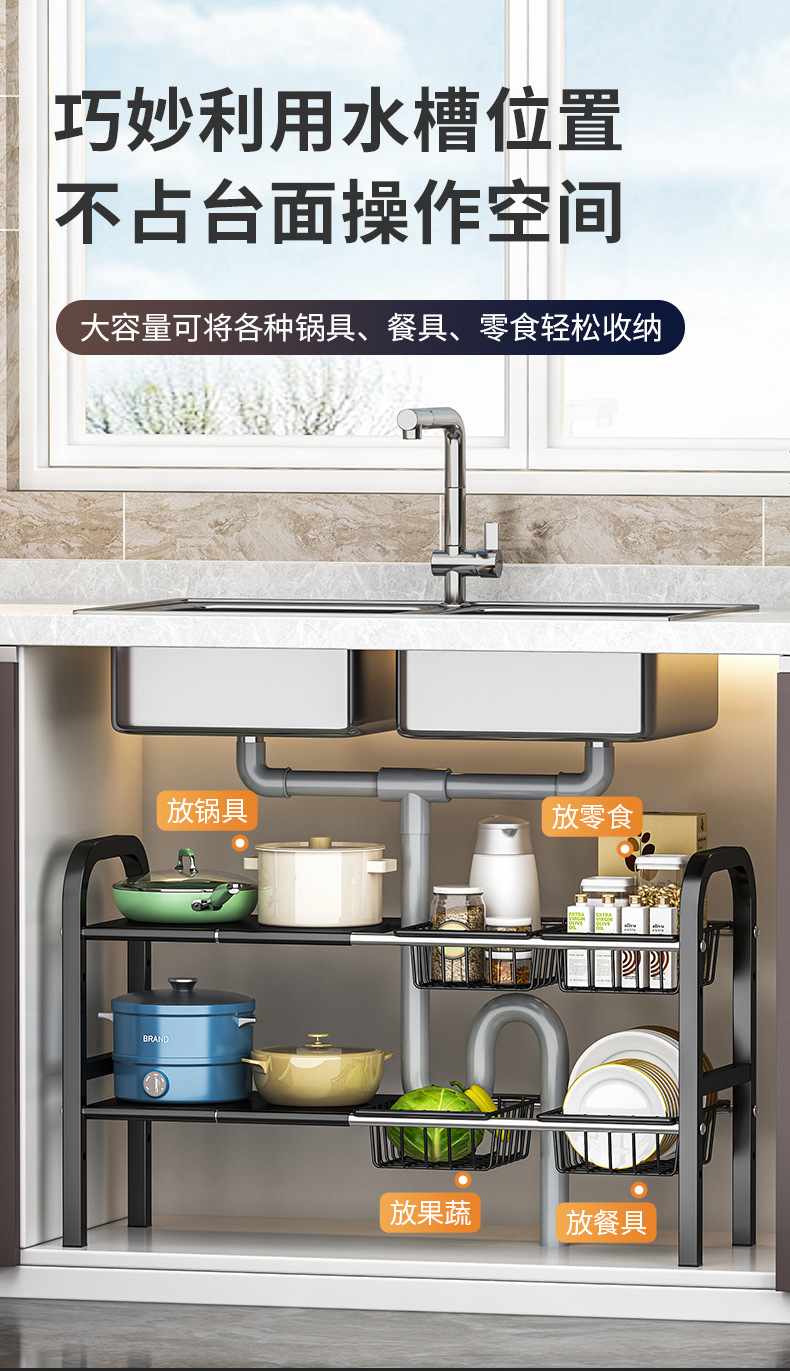 주방 확장 가능한 싱크 스토리지 랙 캐비닛 레이어드 랙 주방 캐비닛 스토리지 다기능 냄비 랙 스토리지 선반스토어 가기
