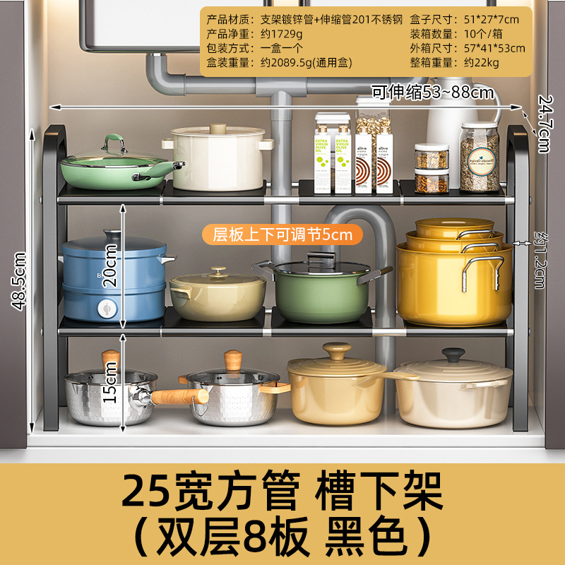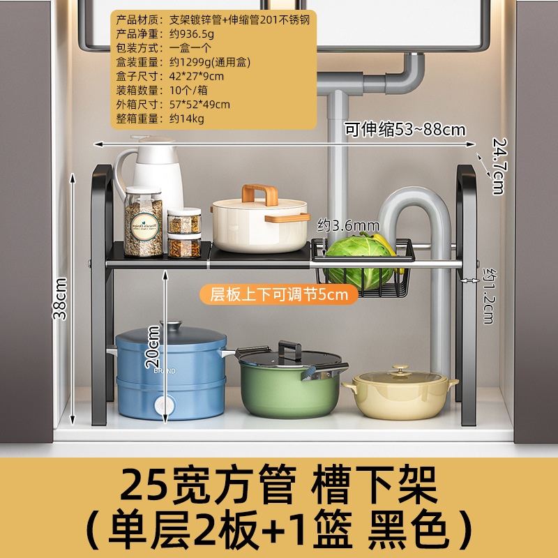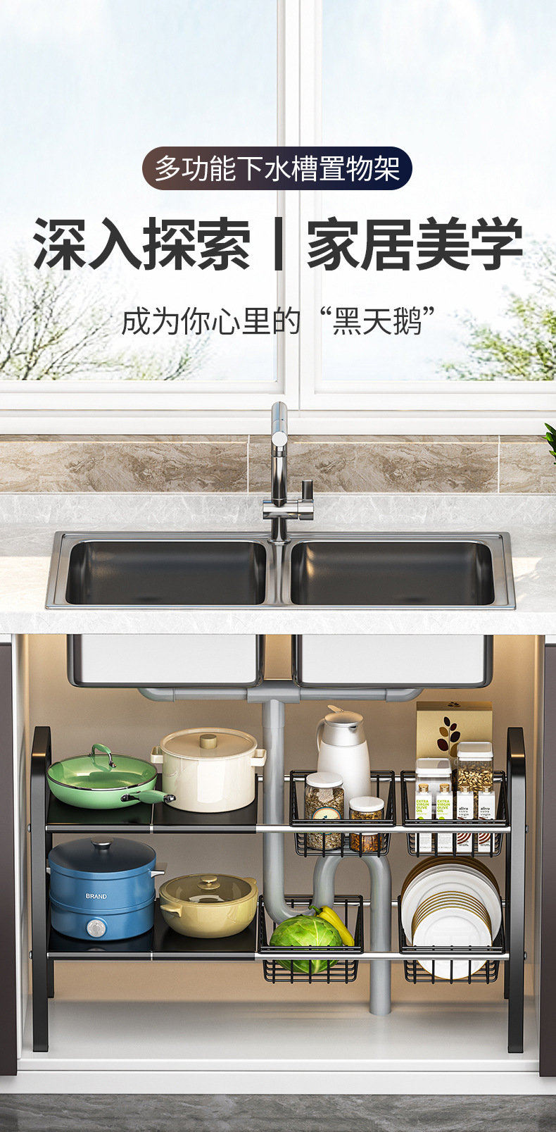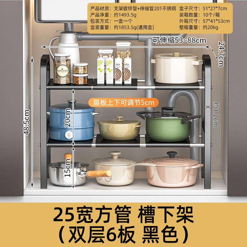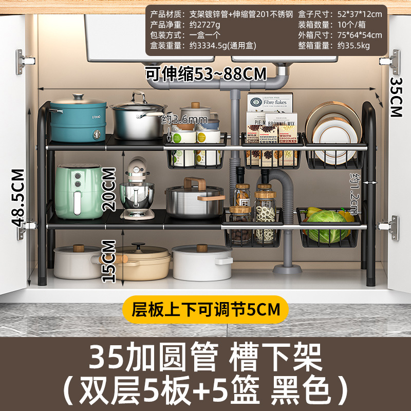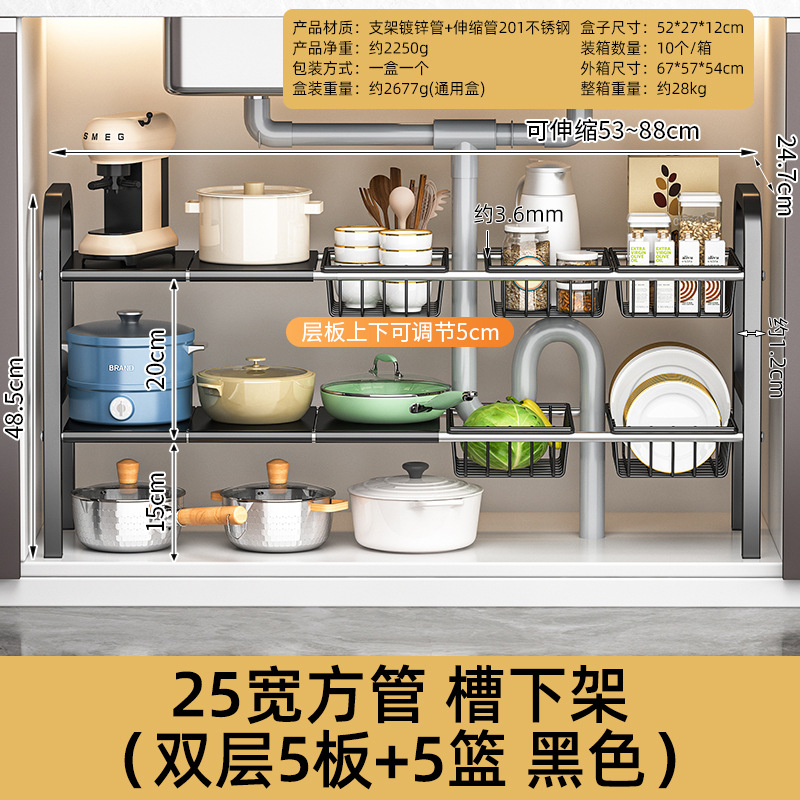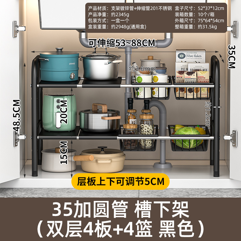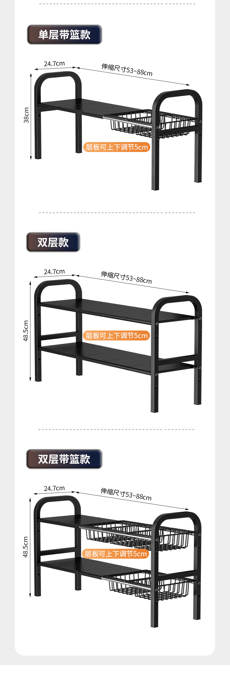 주방 확장 가능한 싱크 스토리지 랙 캐비닛 레이어드 랙 주방 캐비닛 스토리지 다기능 냄비 랙 스토리지 선반스토어 가기