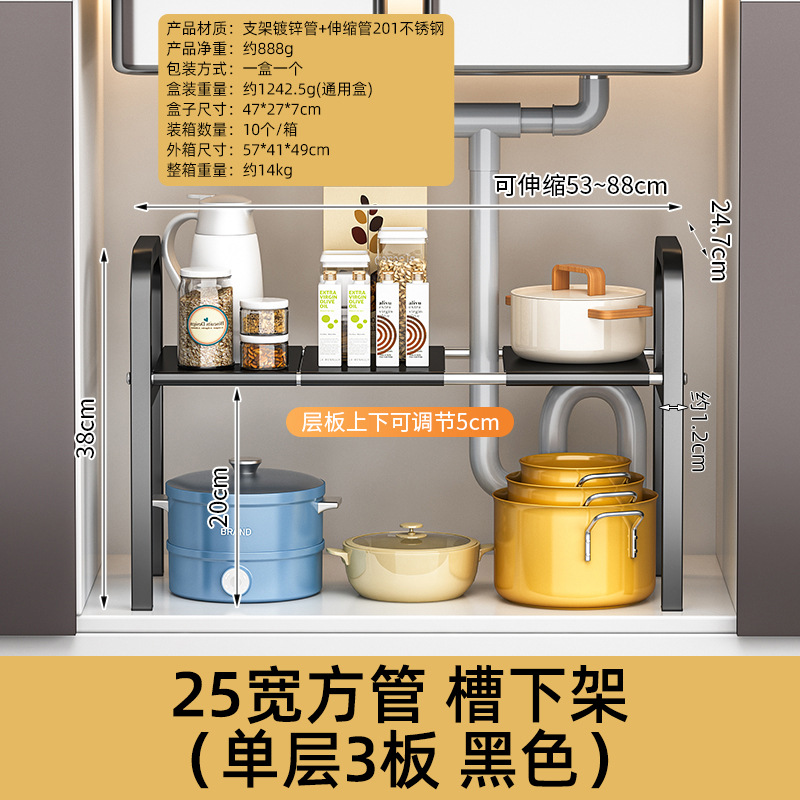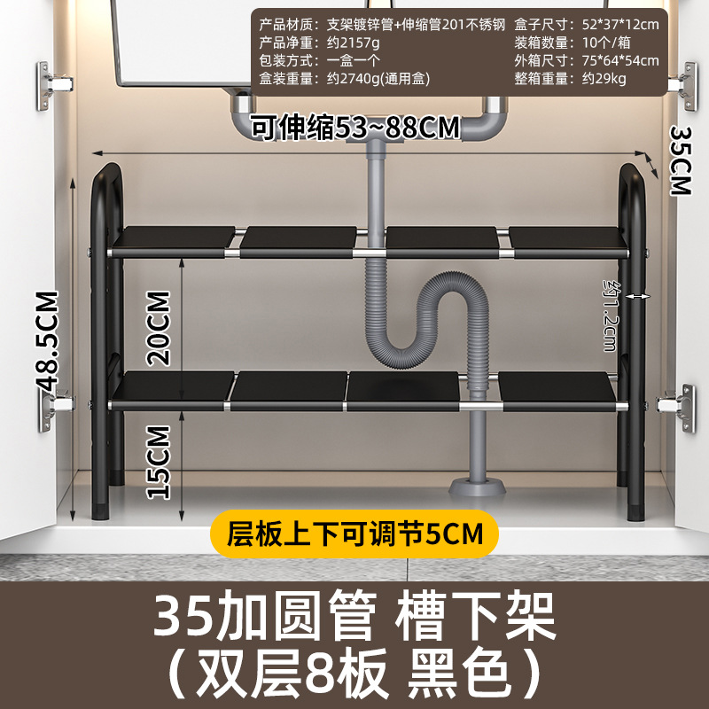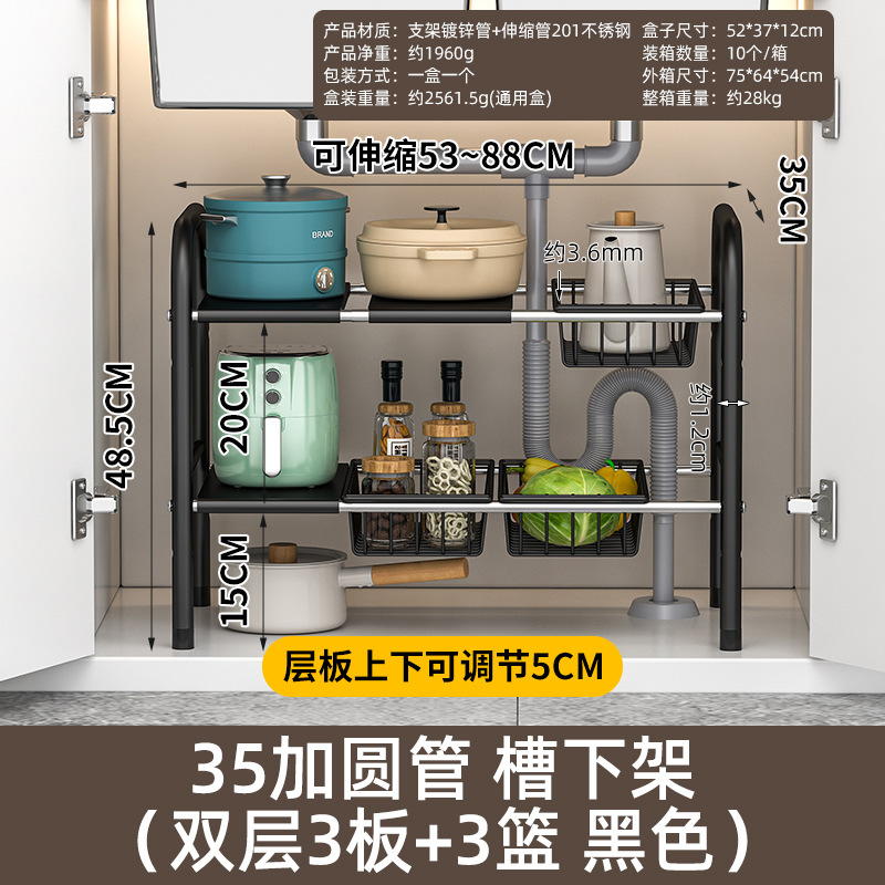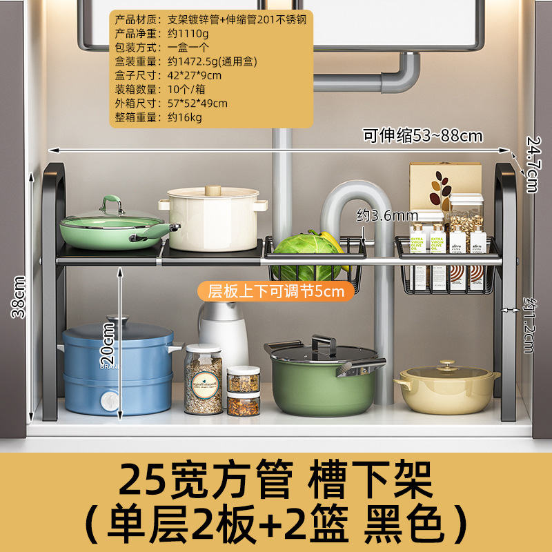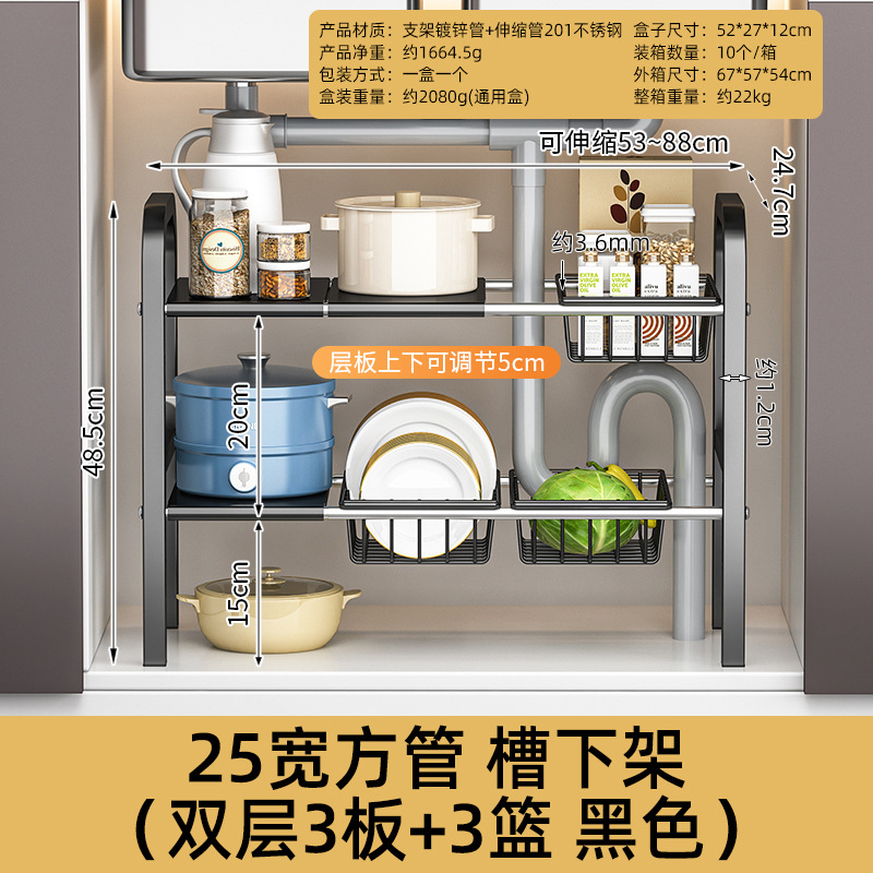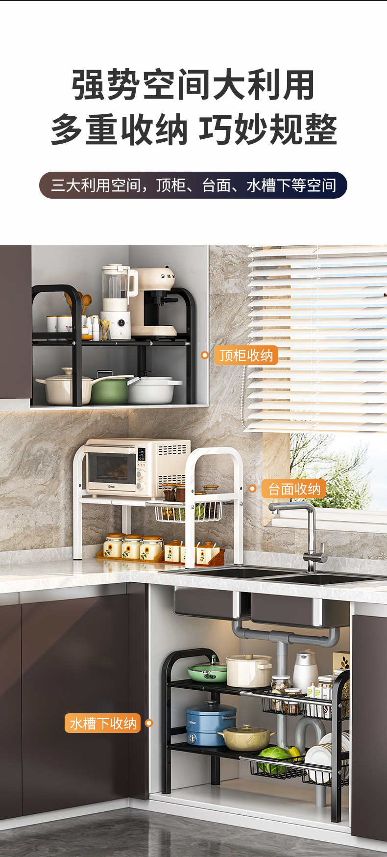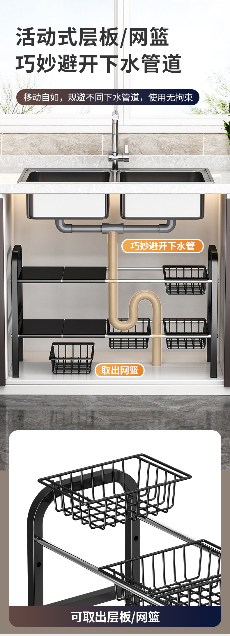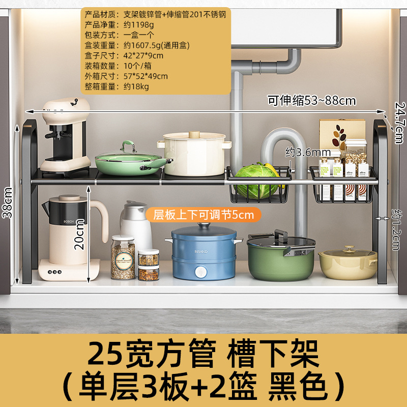주방 확장 가능한 싱크 스토리지 랙 캐비닛 레이어드 랙 주방 캐비닛 스토리지 다기능 냄비 랙 스토리지 선반스토어 가기