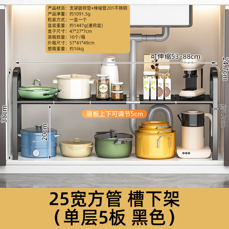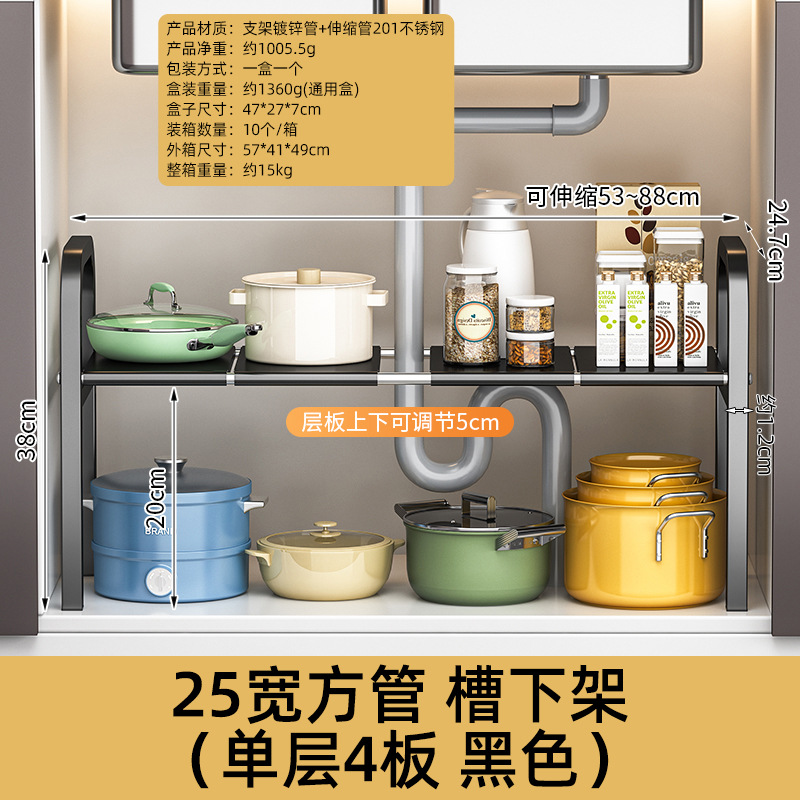 주방 확장 가능한 싱크 스토리지 랙 캐비닛 레이어드 랙 주방 캐비닛 스토리지 다기능 냄비 랙 스토리지 선반