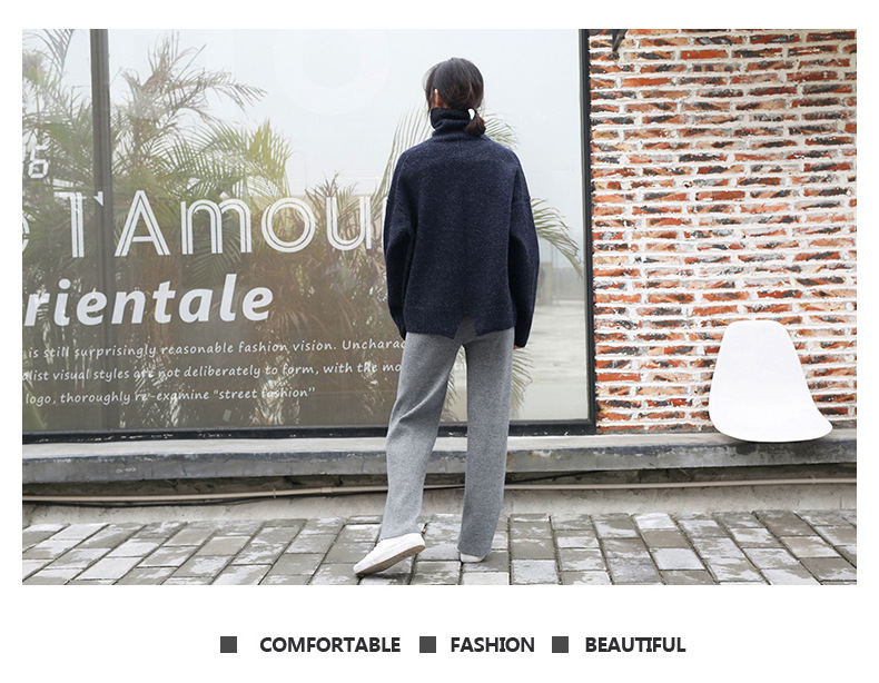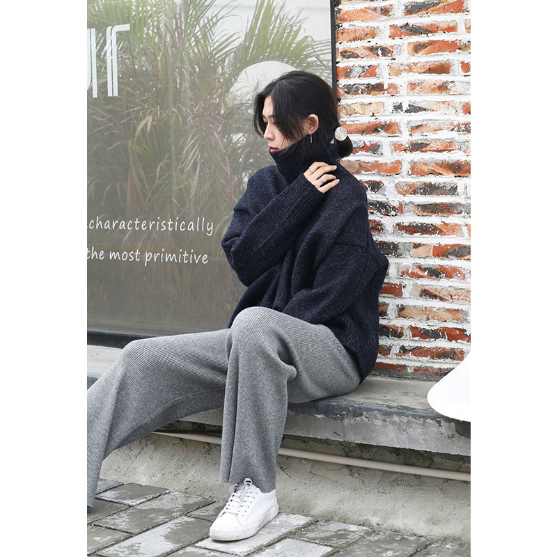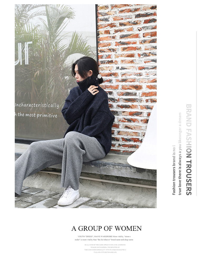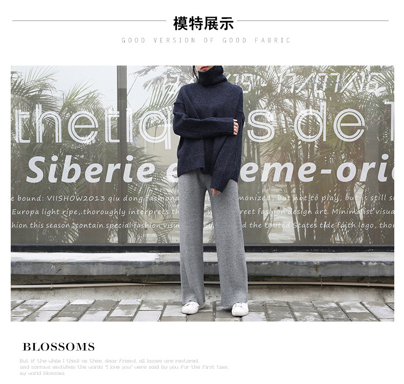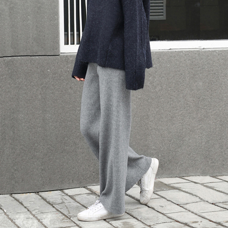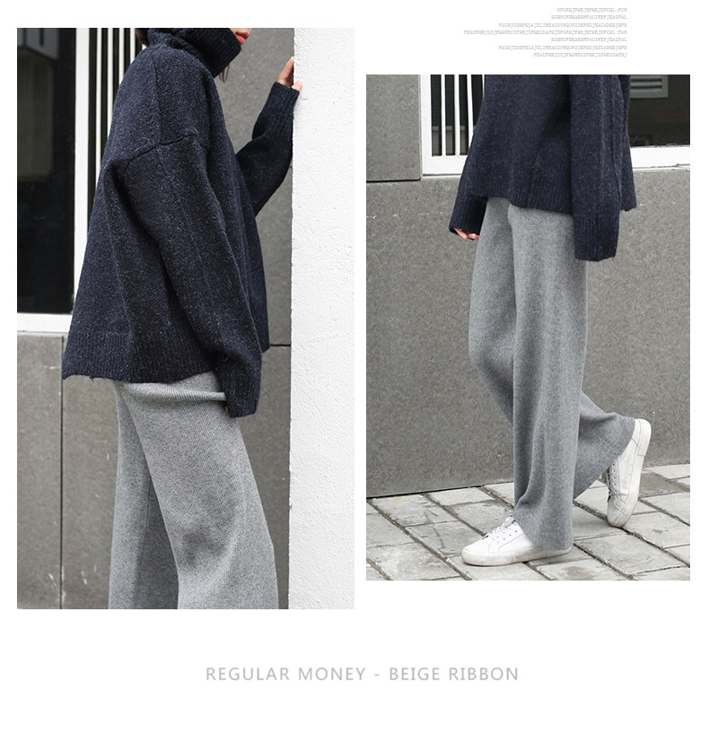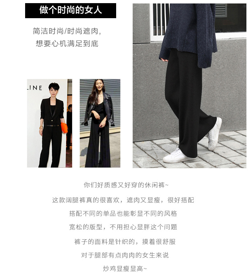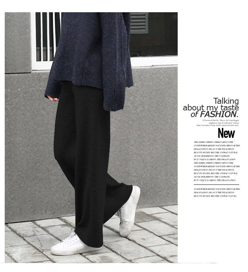 니트 바닥 드레이핑 와이드 레그 팬츠 여성용 2024 가을 및 겨울 새로운 높은 허리 캐주얼 느슨한 슬리밍 스트레이트 롱 팬츠스토어 가기